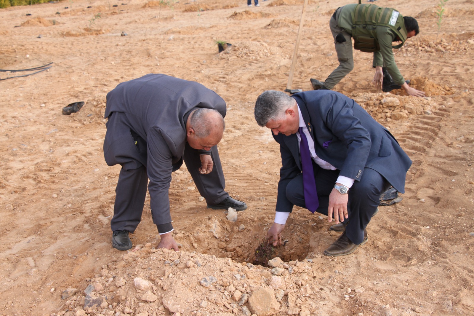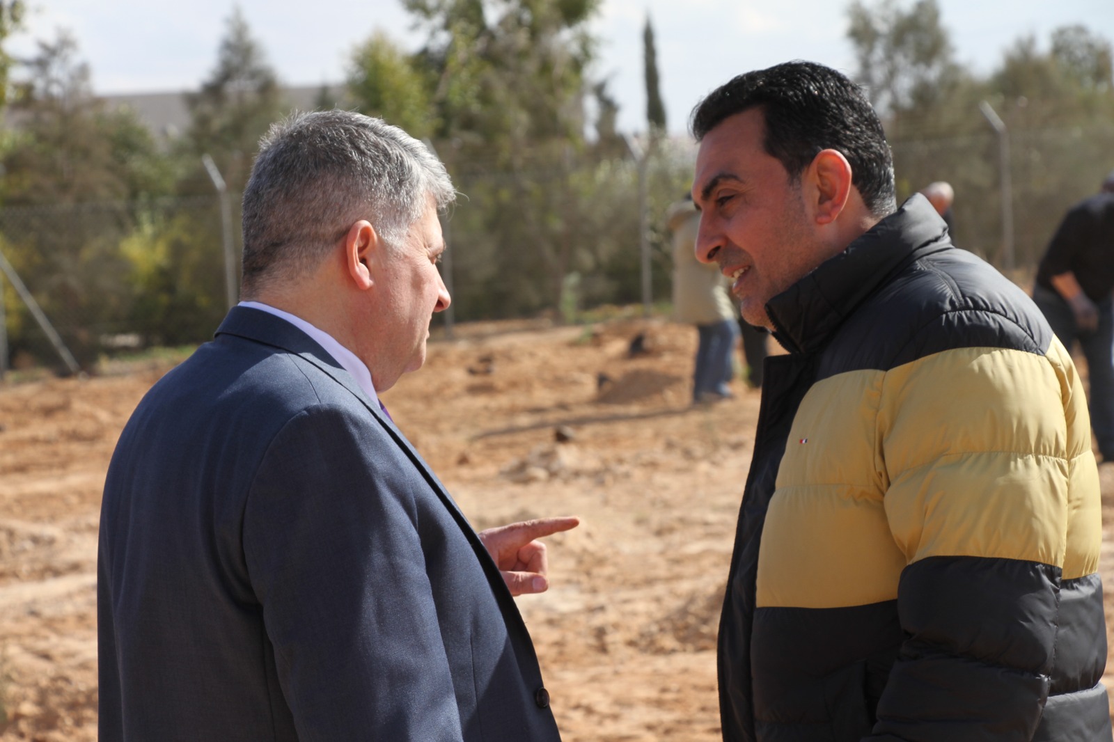 وبعد ذلك توجهت العين الدكتورة ريم ابو دلبوح راعي الإحتفال والمهندس منهل العقلة المدير الإدارية والسيد اسعد العزام رئيس الهيئة الإدارية والحضور إلى موقع الإحتفال حيث تم زراعة 300 غرسة حرجية على كامل المساحة المخصص زراعتها في المرحلة الأولى.