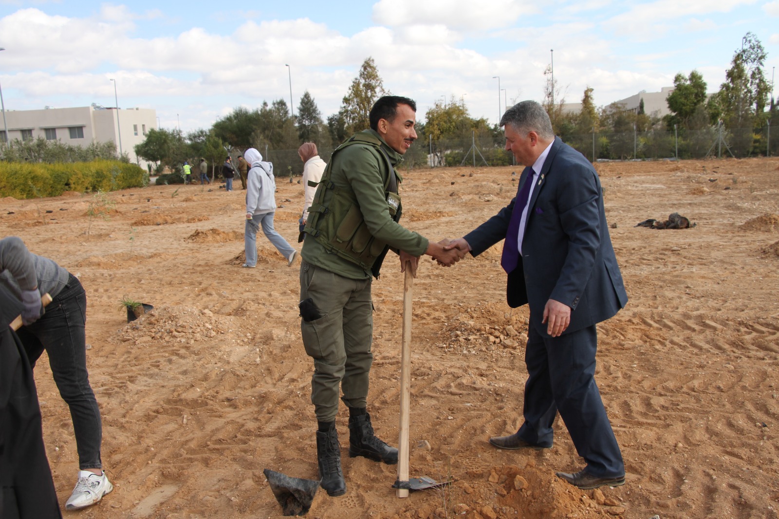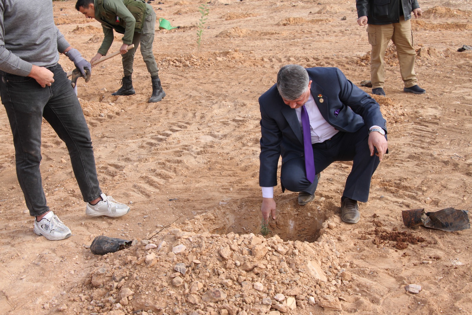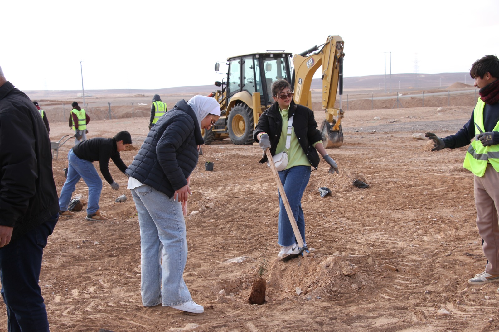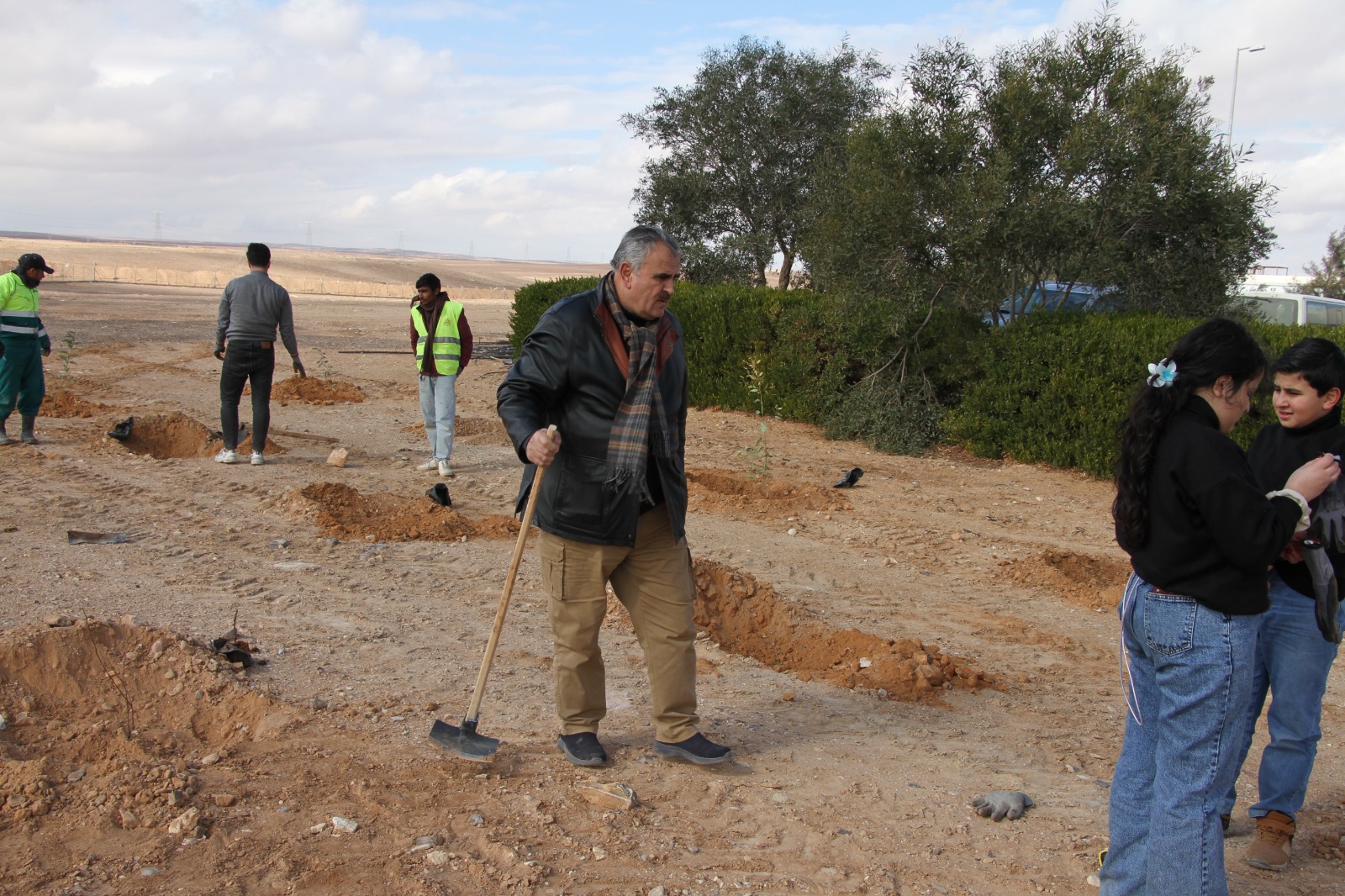 وأضاف العزام: كم نشعر بالفخر في هذا اليوم ونحن نحتفل بعيد الشجرة ونساهم فعلياً في هذا العمل الوطني النابع من شعورنا بالمسؤولية المجتمعية والمشاركة بتنفيذ الإستراتيجية الوطنية "نحو أردن أخضر".هذا التوجه الوطني الأردني الشامل الذي يهدف إلى تعزيز التنمية المستدامة من خلال الإستثمار في الطاقة المتجددة وتحسين البنية التحتية الخضراء،وتوسيع الرقعة النباتية عبر حملات تشجير كبرى،وتعزيز الوعي البيئي والمشاركة المجتمعية،بالإضافة إلى دمج الإقتصاد الأخضر والابتكار البيئي في مختلف القطاعات،بما يتماشى مع رؤى جلالة الملك المفدى-حفظه الله ورعاه- لمواجهة التحديات البيئية وتحقيق مستقبل أكثر استدامة.ويشجع على نشر ثقافة العمل التطوعي تنفيذاً لرؤى صاحب السمو الملكي الأمير الحسين بن عبدالله الثاني ولي العهد المعظم الذي إهتم بهذا المجال وتم تخصيص جائزة سنوية للمؤسسسات والأفراد المتميزين بالعمل التطوعي.