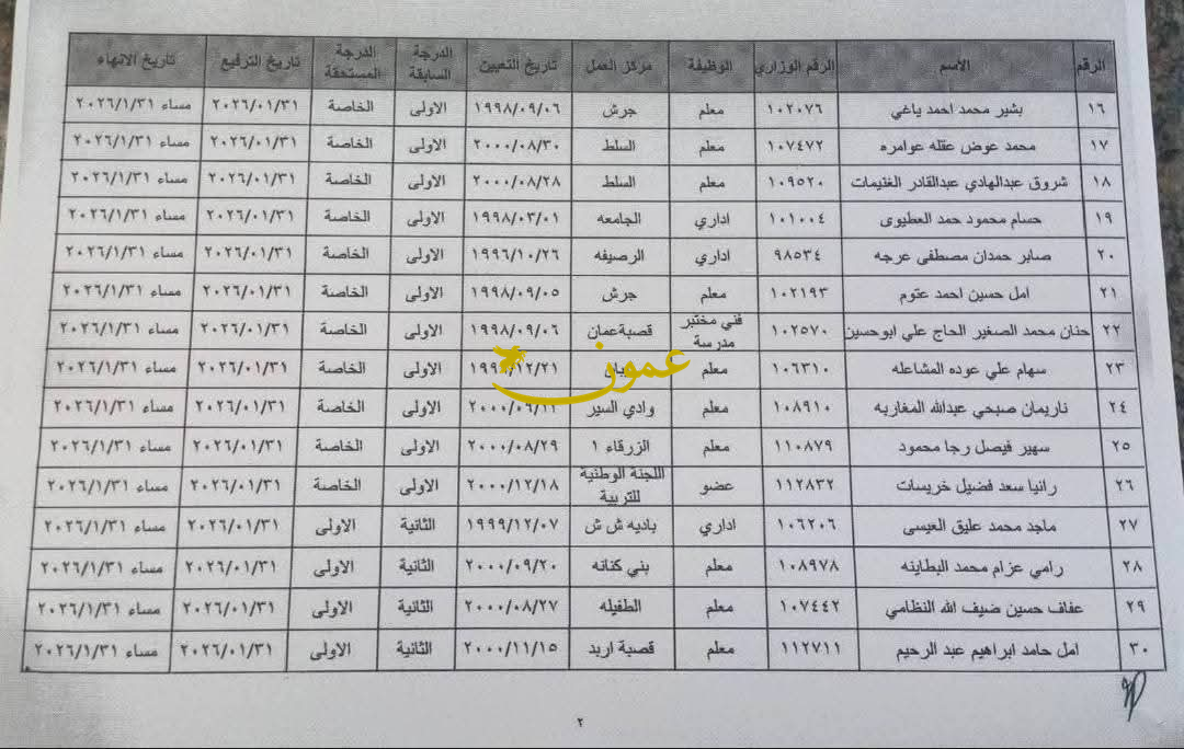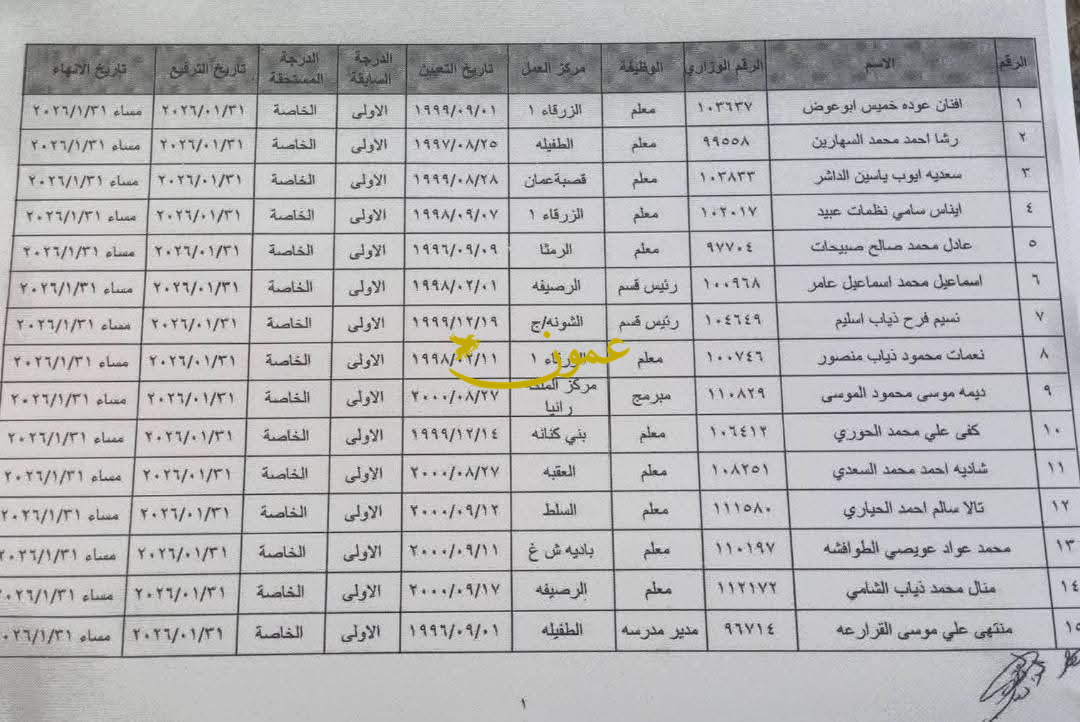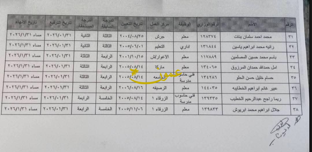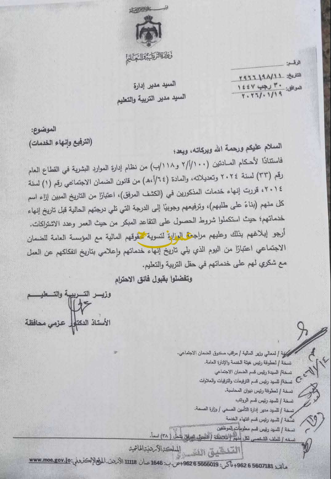 ترفيع وانهاء خدمات 38 موظفا في التربية (اسماء)21-01-2026 06:34 PM