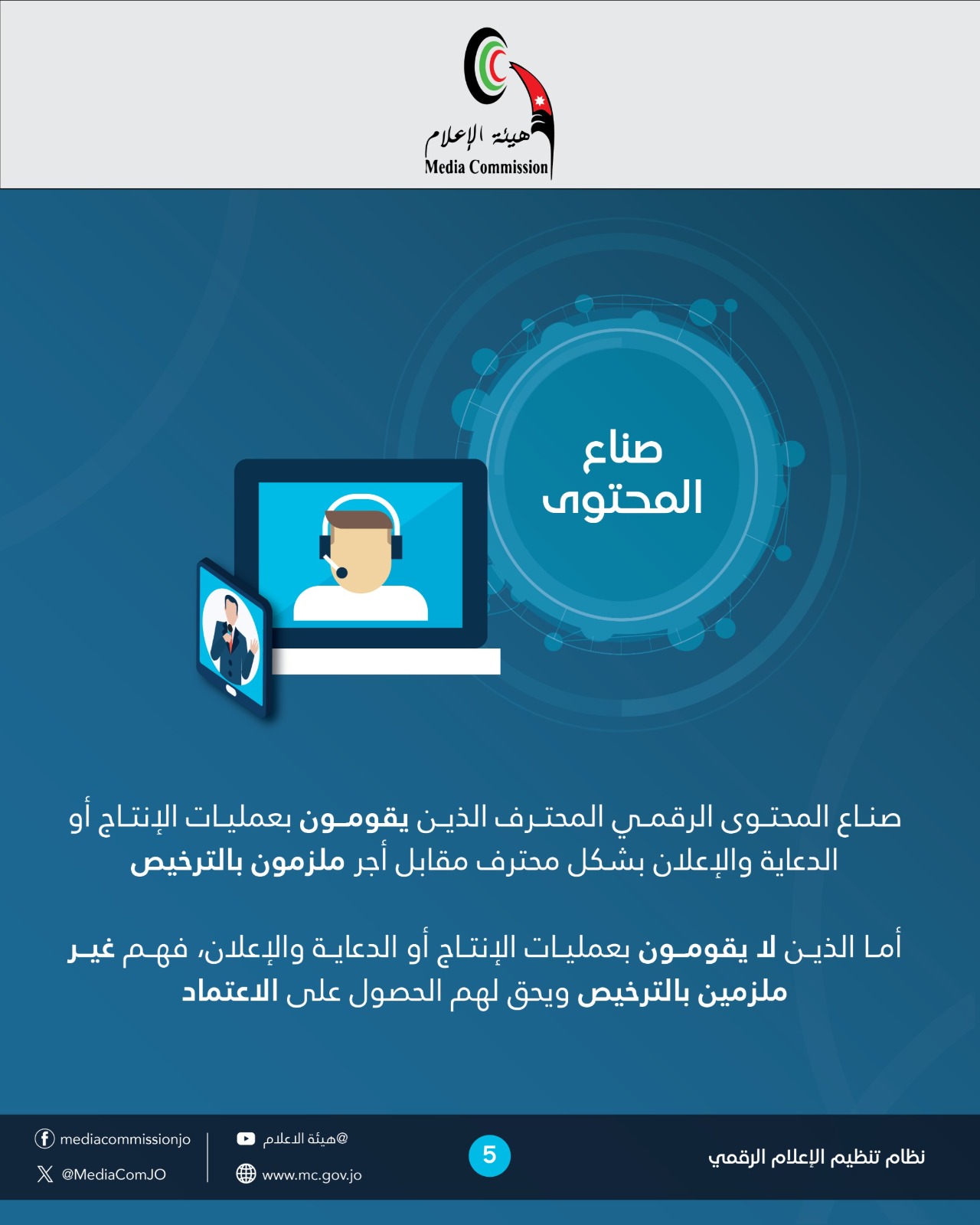 اعتماد صناع المحتوى من غير الملزمين بالترخيص، وتسجيلهم في سجل خاص لدى الهيئة.