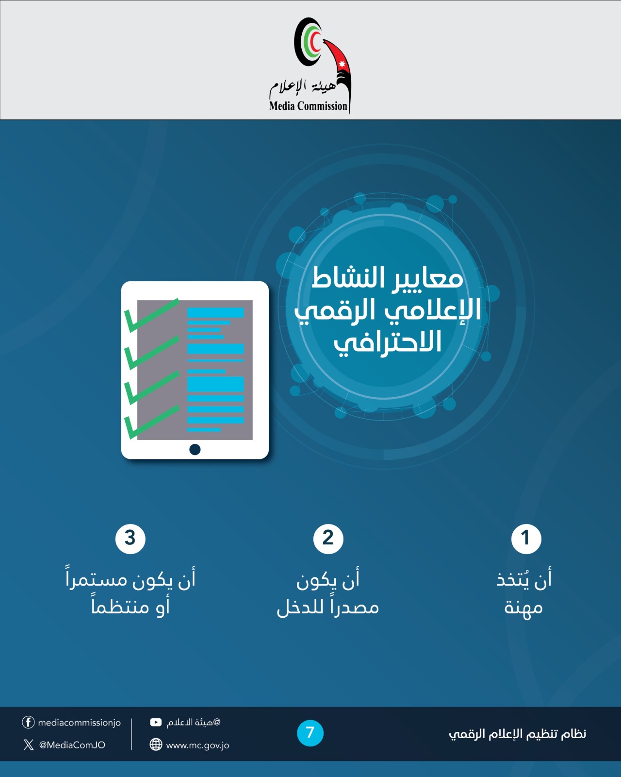 وضع إطار تشريعي لتنظيم الأنشطة الإعلامية والإعلانية على الفضاء الرقمي بما يخدم المصلحة العامة للمجتمع وكافة الجهات ذات العلاقة.