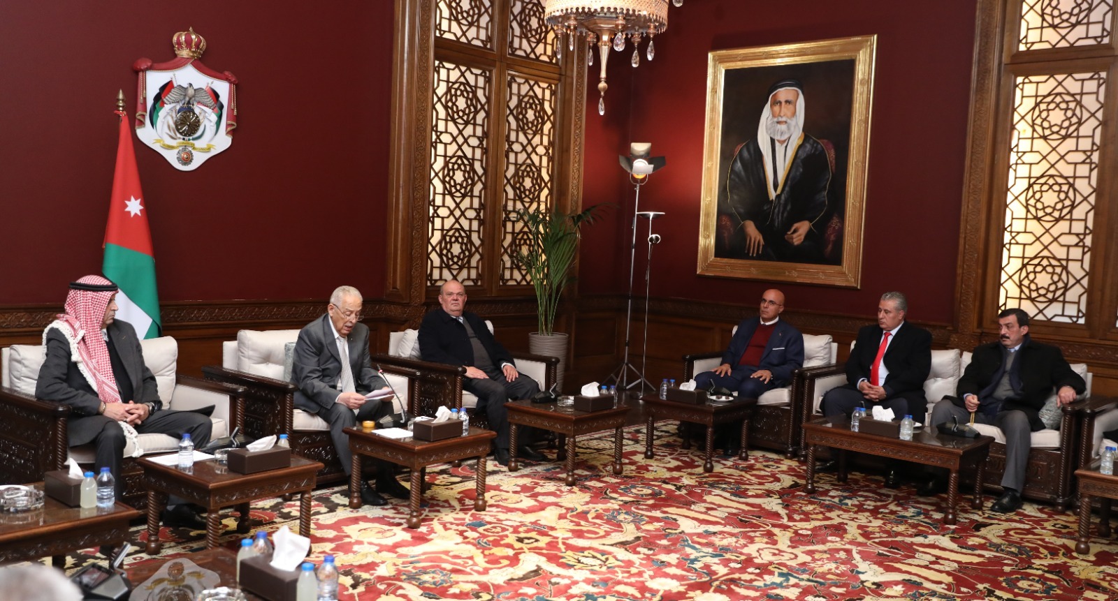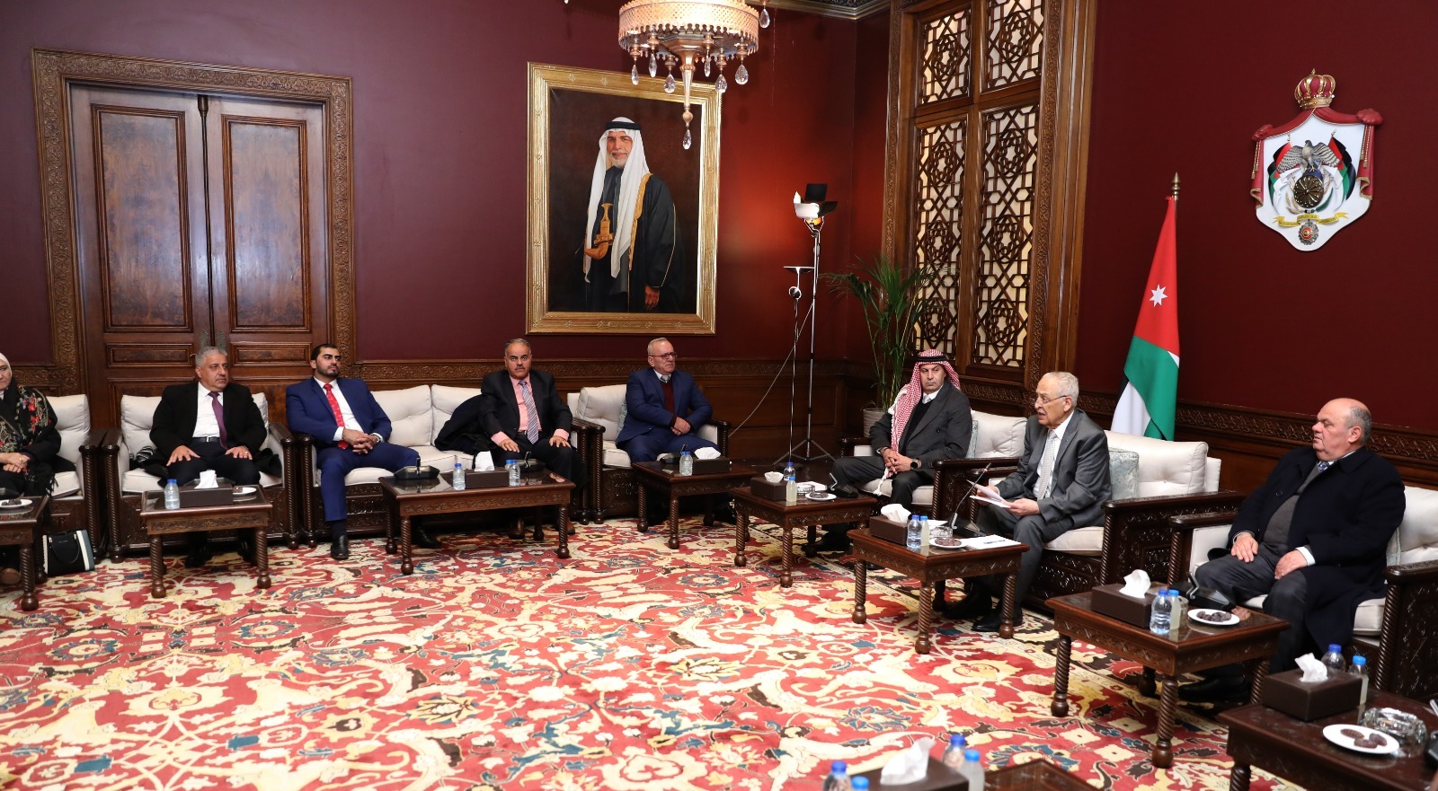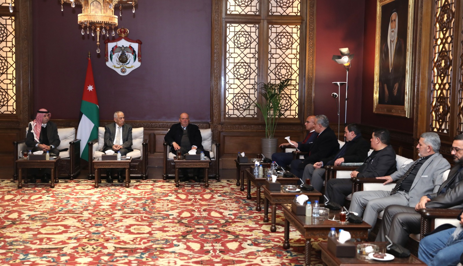 عمون - التقى رئيس الديوان الملكي الهاشمي، يوسف حسن العيسوي، وفدا ثقافيا وشبابيا من منتدى الحصن للتراث والثقافة والفنون وهيئة شباب بني عبيد، اليوم الخميس، في الديوان الملكي الهاشمي.