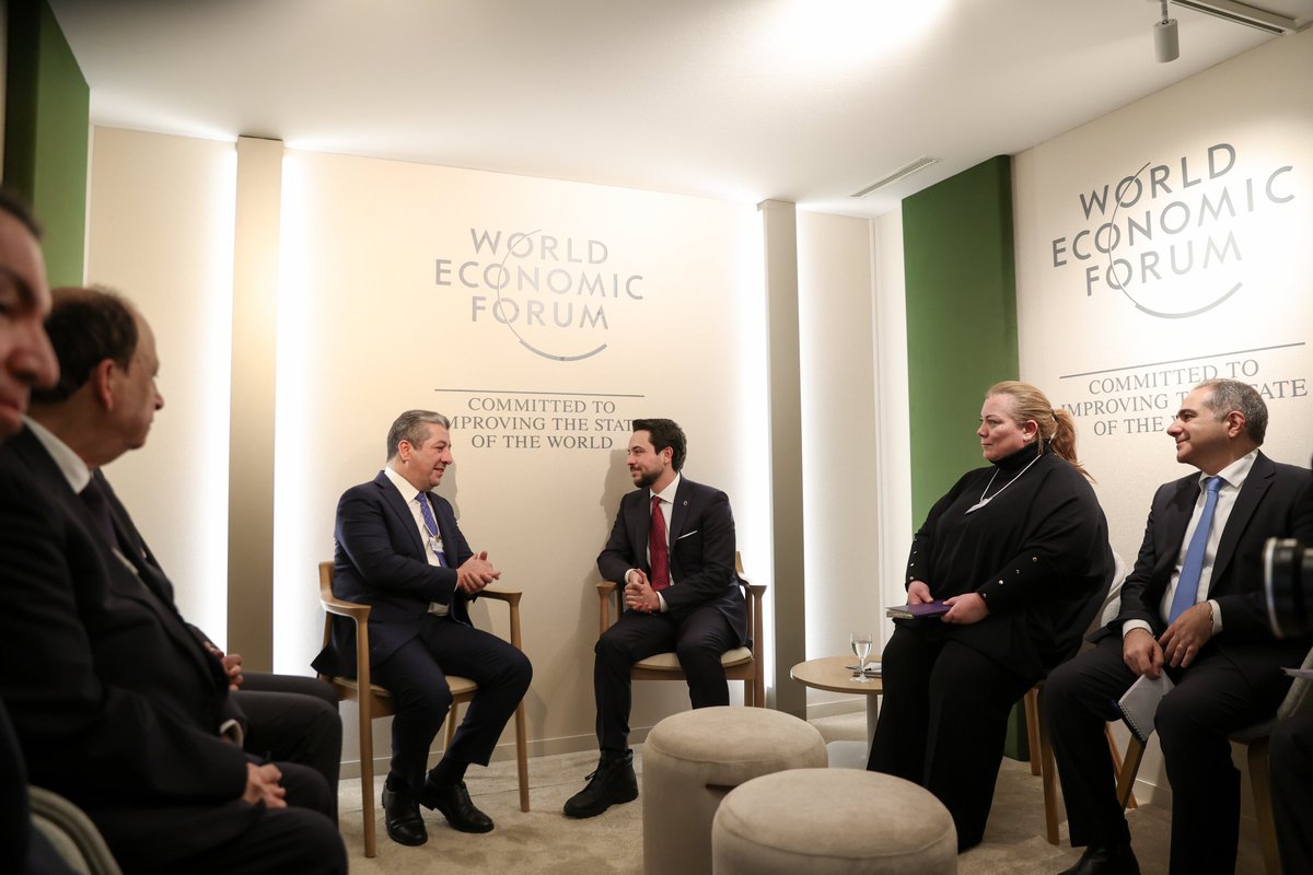 عمون - عقد سمو الأمير الحسين بن عبدالله الثاني ولي العهد، اليوم الخميس، لقاء مع رئيس حكومة إقليم كردستان العراق مسرور بارزاني، على هامش أعمال المنتدى الاقتصادي العالمي في مدينة دافوس السويسرية. |