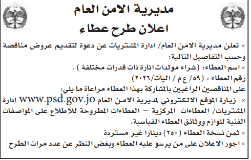 عطاءات صادرة عن مديرية الامن العام
