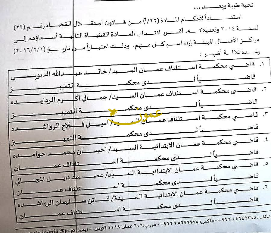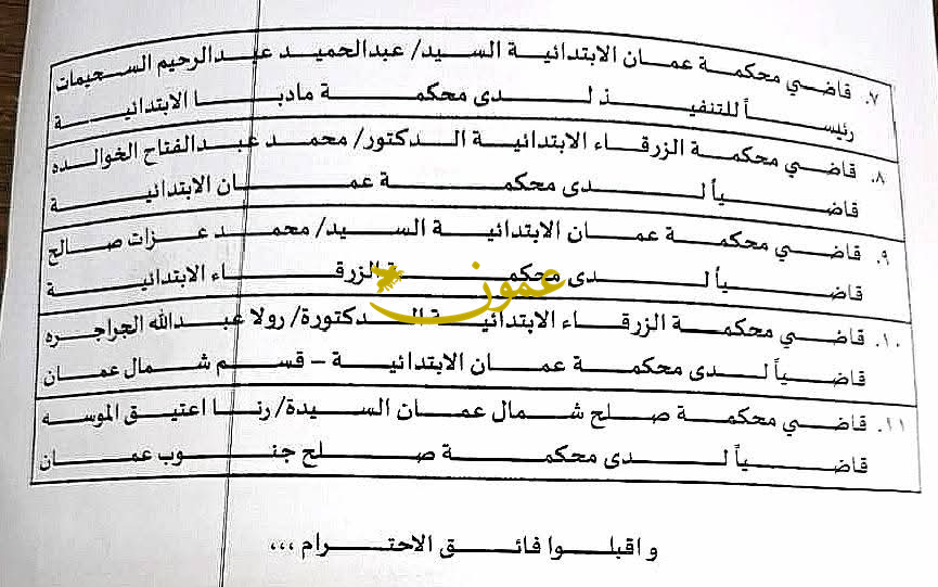 انتداب 11 قاضيا إلى محاكم عمّان والزرقاء ومأدبا (اسماء)