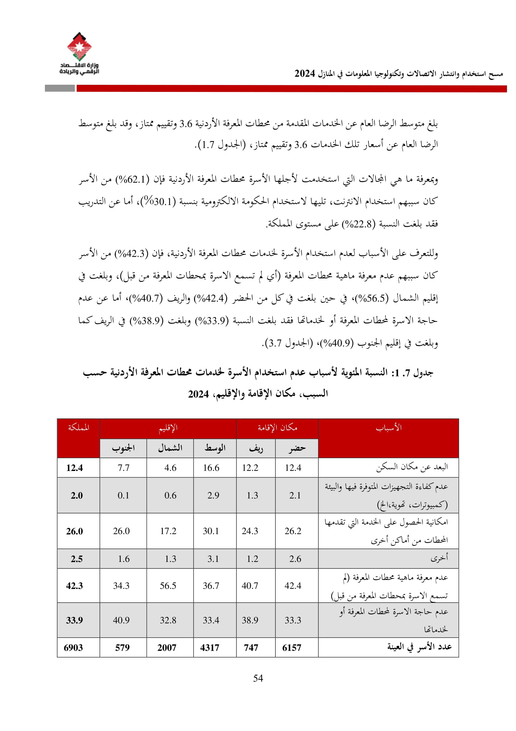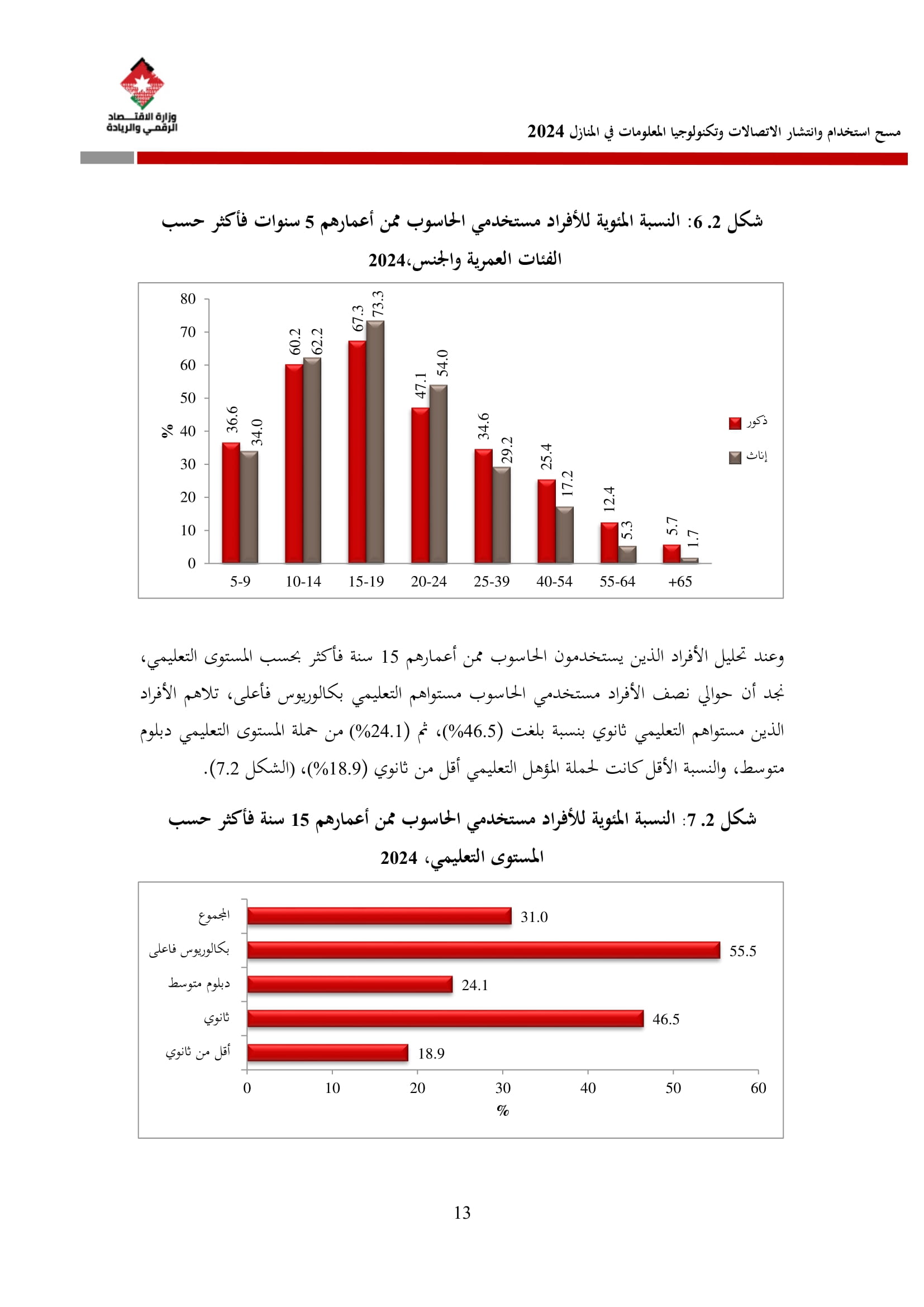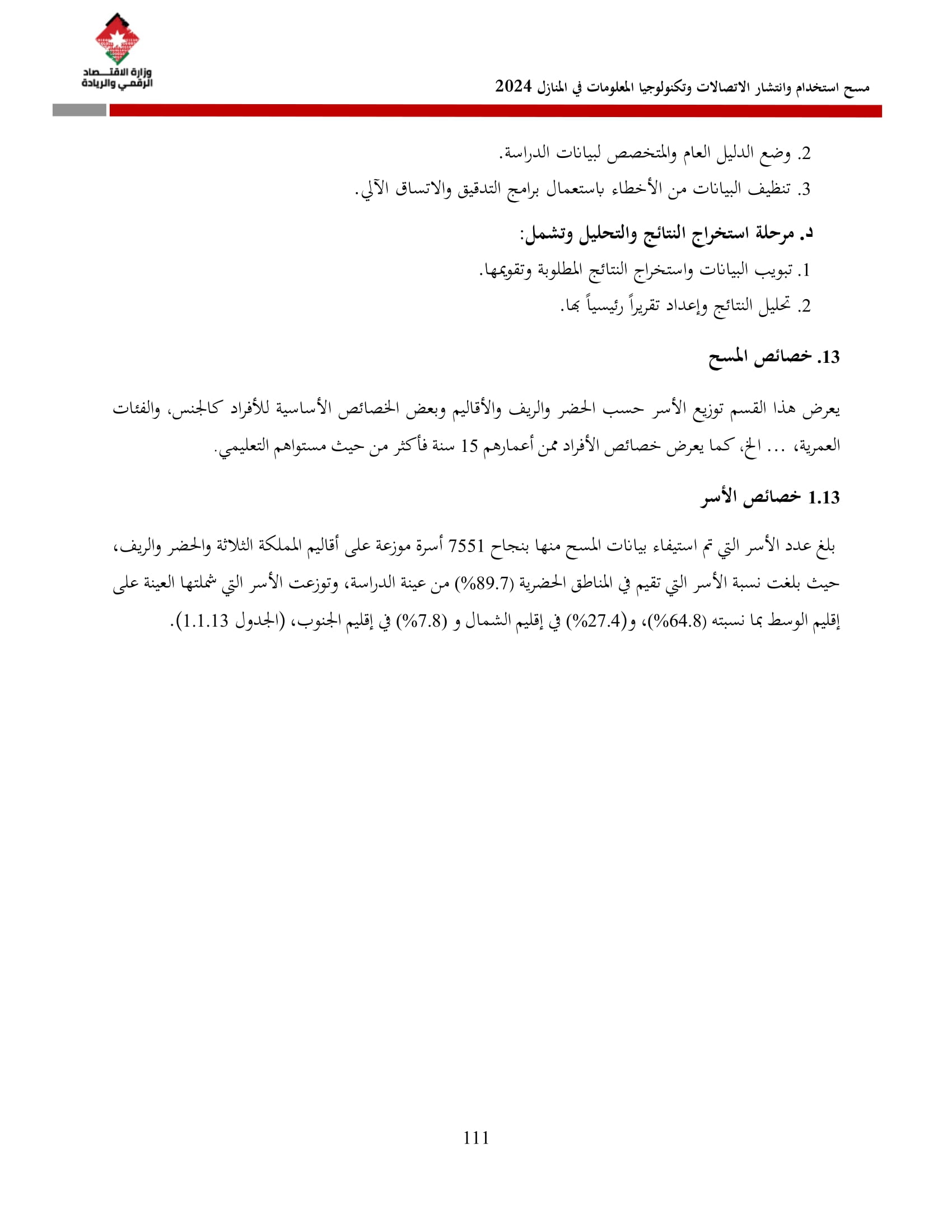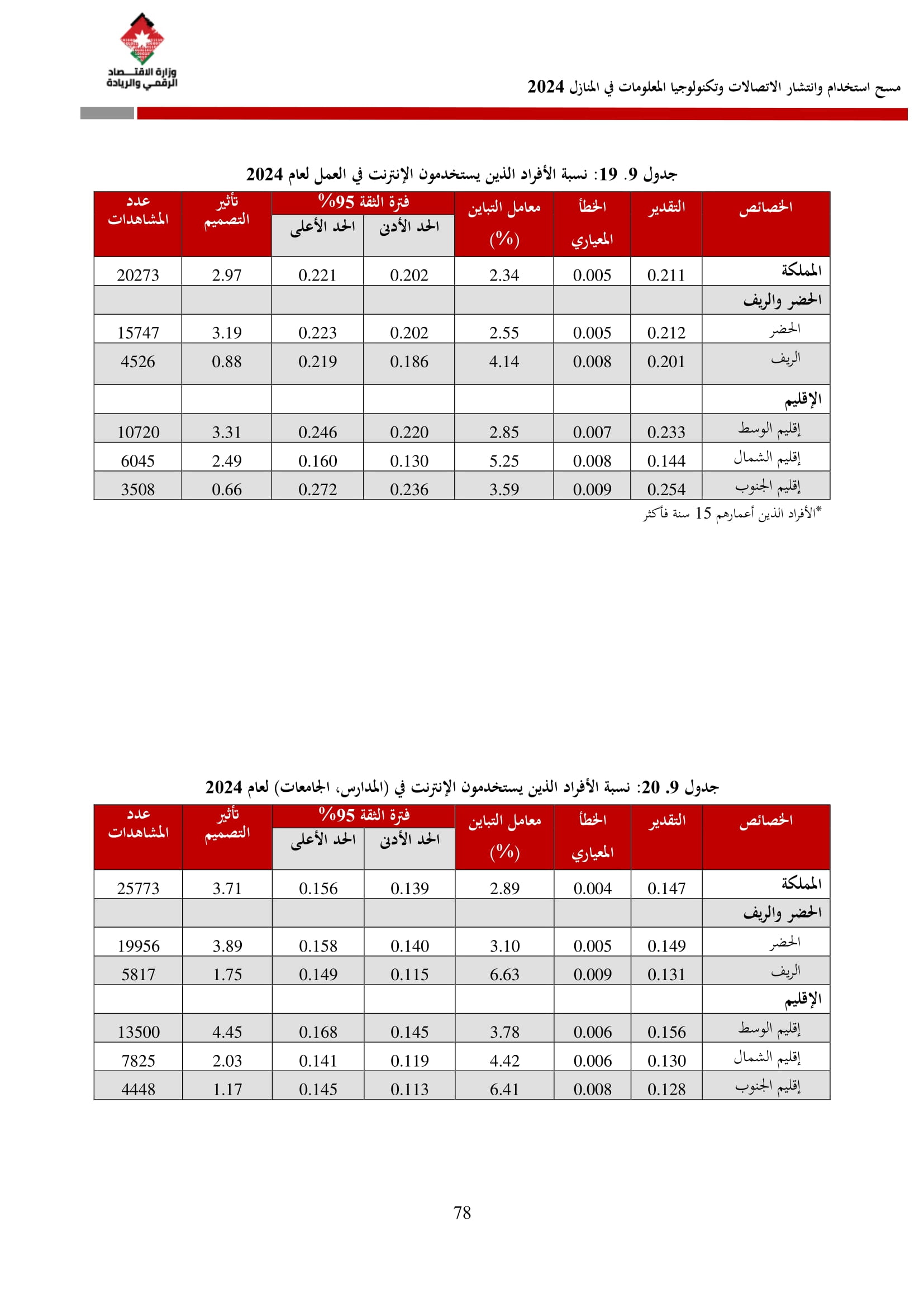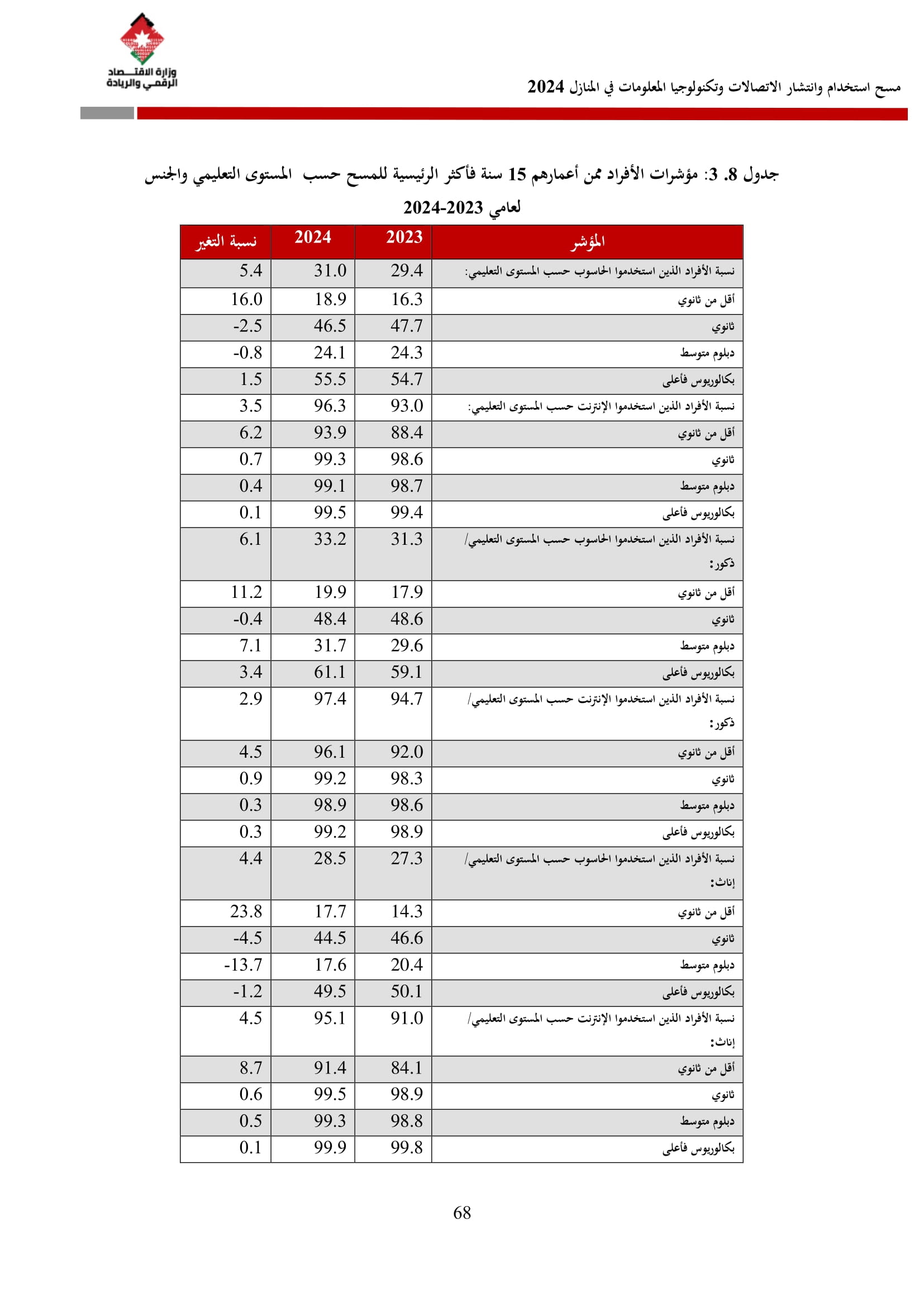 وتسهم النتائج في رسم السياسات والاستراتيجيات التي تعزز الانتشار الرقمي وتزويد المواطنين بالمهارات اللازمة لتحقيق التنمية المستدامة، إضافة إلى ذلك، تُعد هذه المؤشرات مدخلًا رئيسيًا للتقارير الدولية مثل تقارير الاتحاد الدولي للاتصالات، بما يُعزّز مكانة الأردن عالميًا ويعكس جهوده المستمرة في المجال الرقمي.