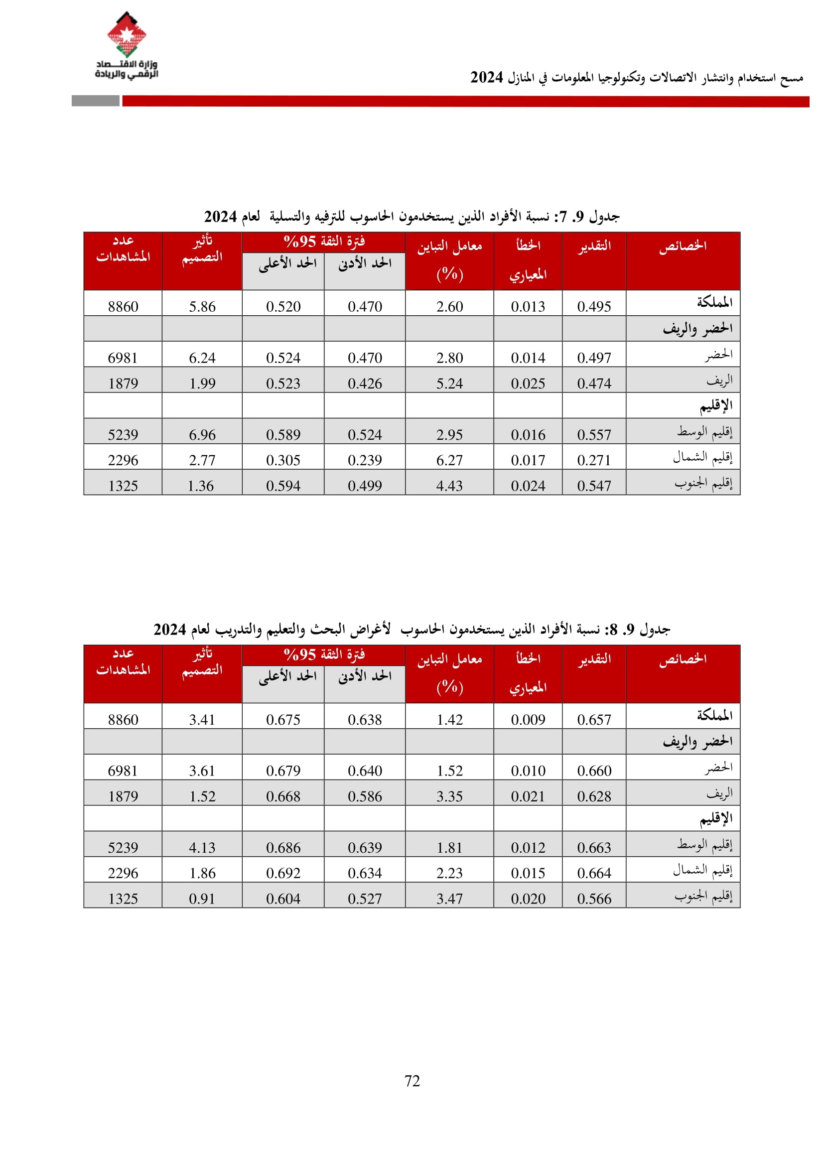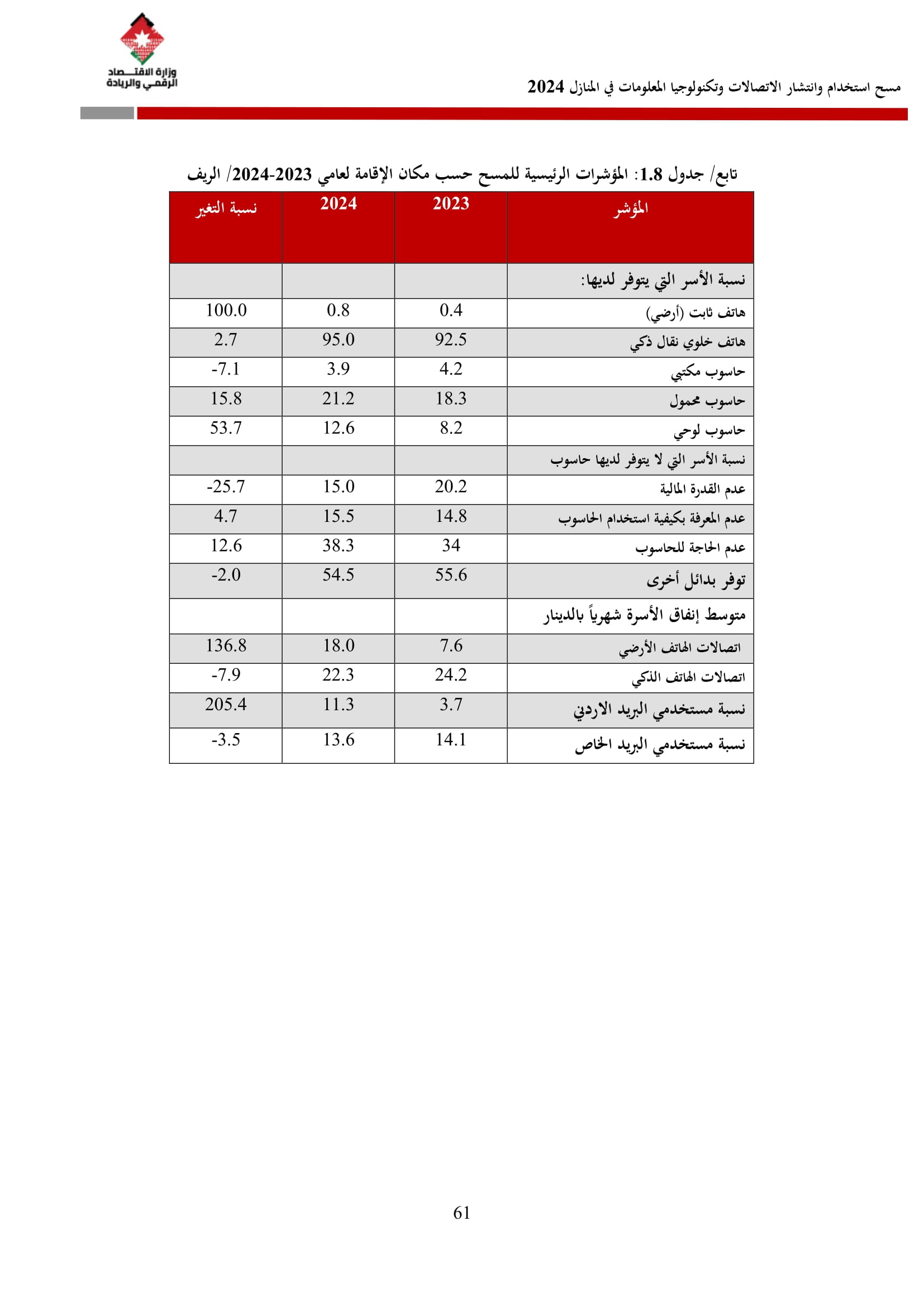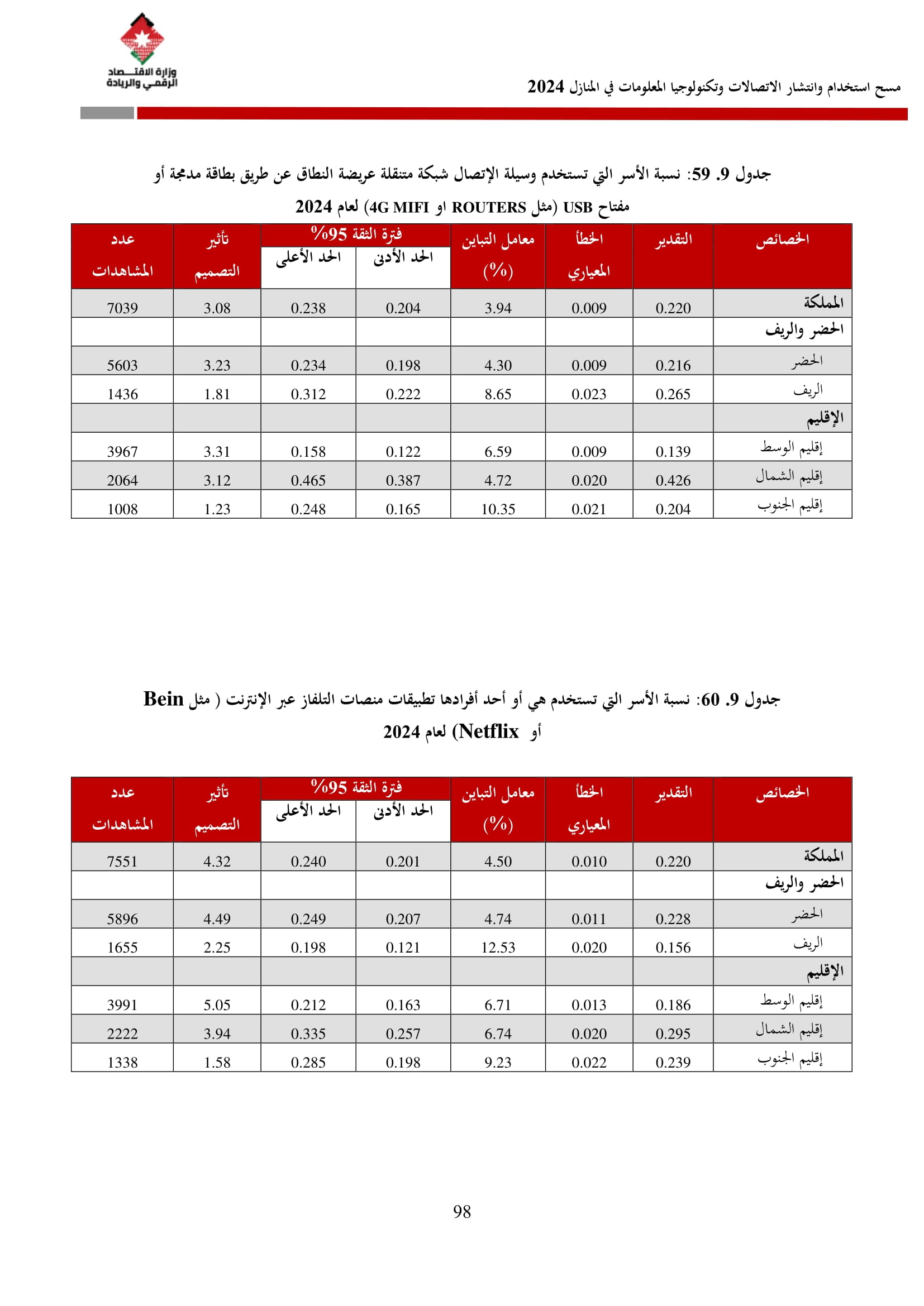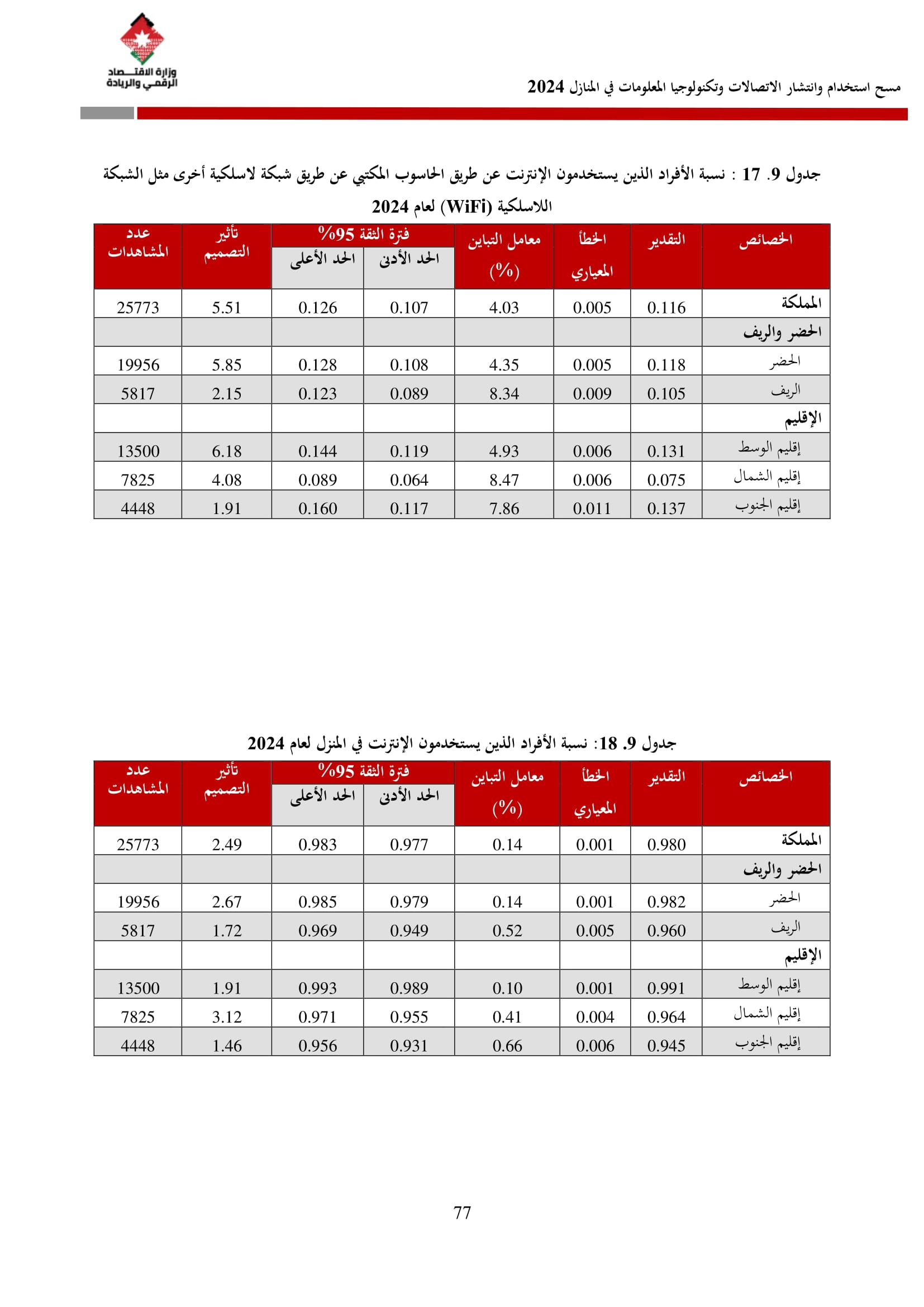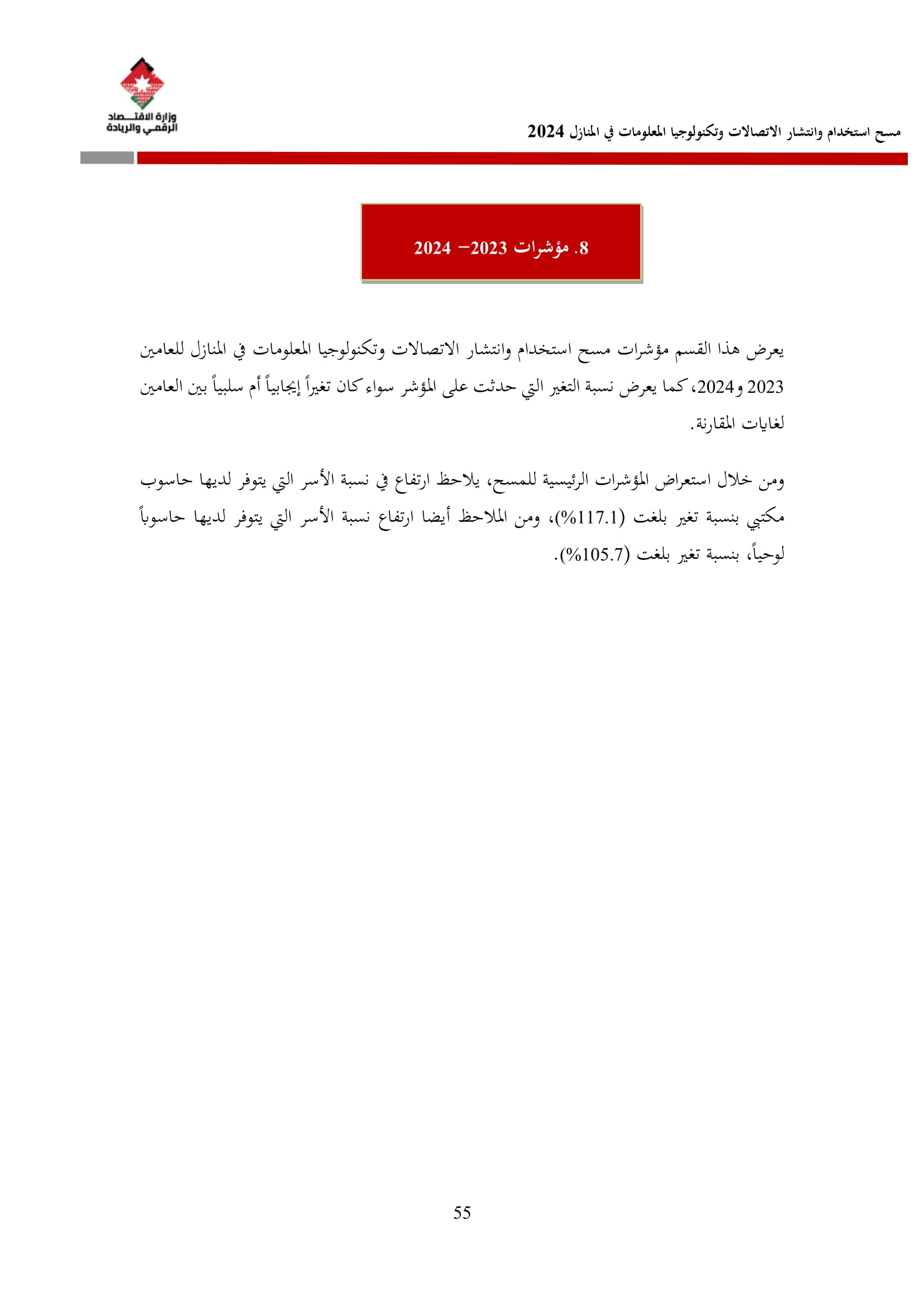 وتسهم النتائج في رسم السياسات والاستراتيجيات التي تعزز الانتشار الرقمي وتزويد المواطنين بالمهارات اللازمة لتحقيق التنمية المستدامة، إضافة إلى ذلك، تُعد هذه المؤشرات مدخلًا رئيسيًا للتقارير الدولية مثل تقارير الاتحاد الدولي للاتصالات، بما يُعزّز مكانة الأردن عالميًا ويعكس جهوده المستمرة في المجال الرقمي.