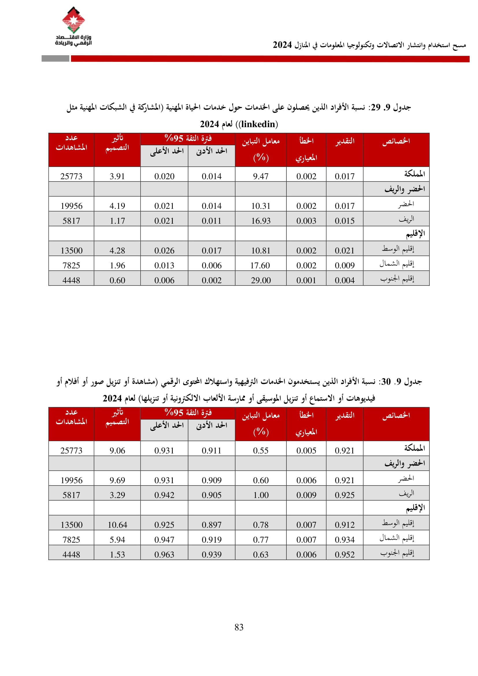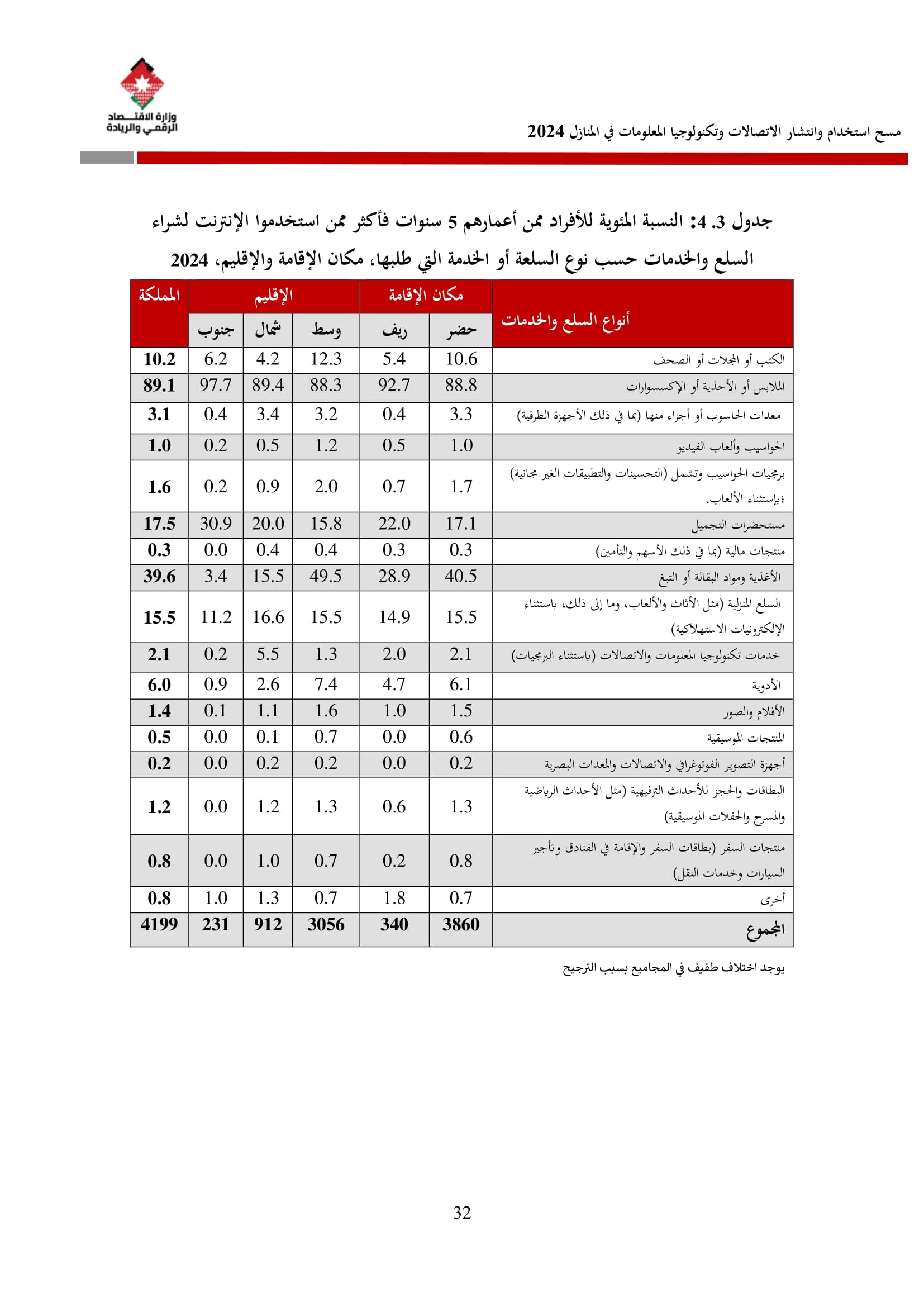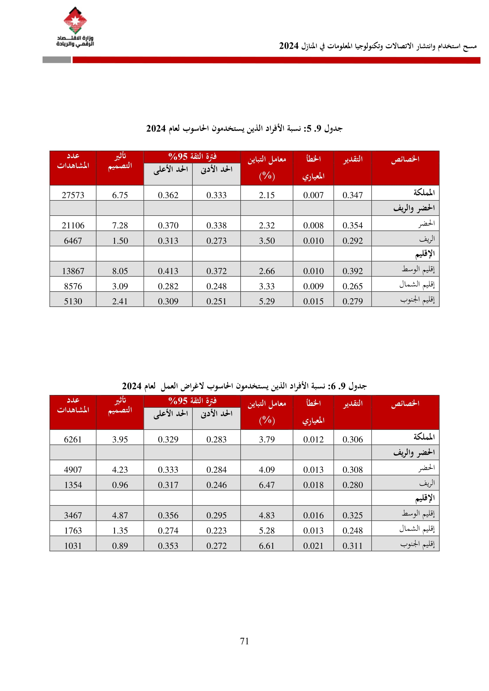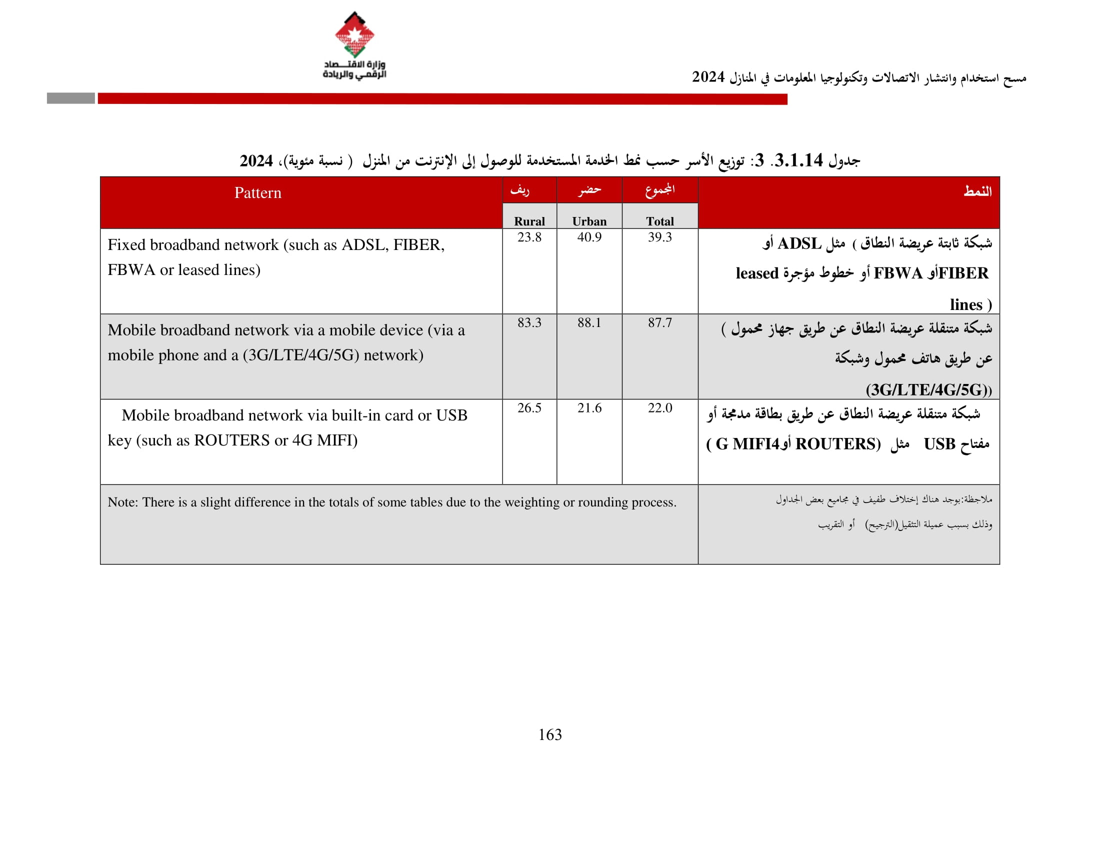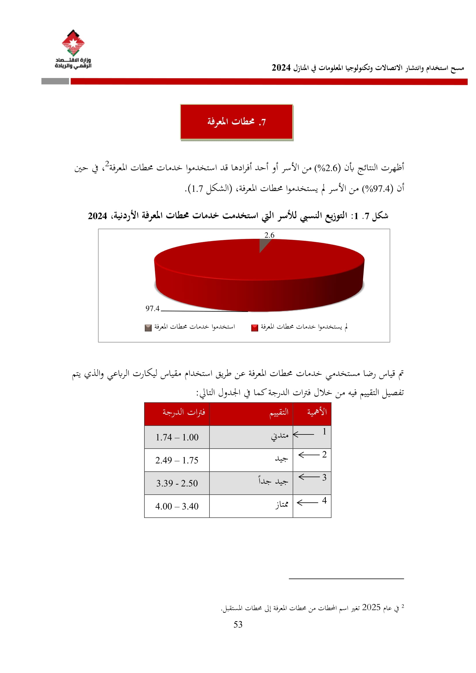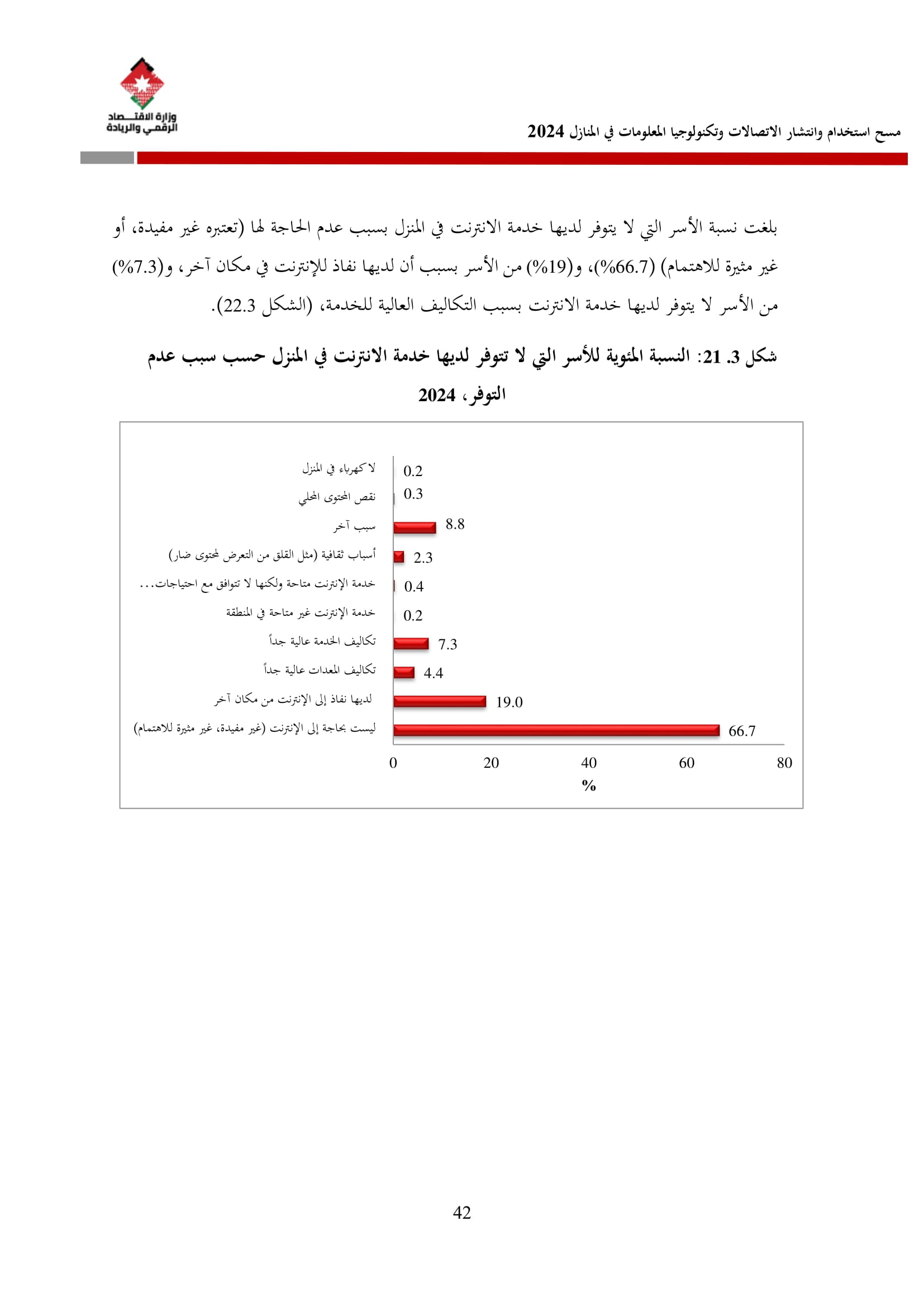 وتسهم النتائج في رسم السياسات والاستراتيجيات التي تعزز الانتشار الرقمي وتزويد المواطنين بالمهارات اللازمة لتحقيق التنمية المستدامة، إضافة إلى ذلك، تُعد هذه المؤشرات مدخلًا رئيسيًا للتقارير الدولية مثل تقارير الاتحاد الدولي للاتصالات، بما يُعزّز مكانة الأردن عالميًا ويعكس جهوده المستمرة في المجال الرقمي.