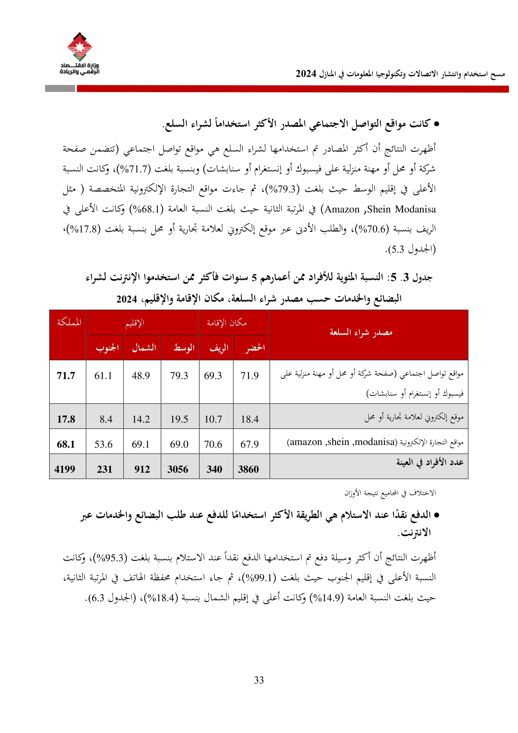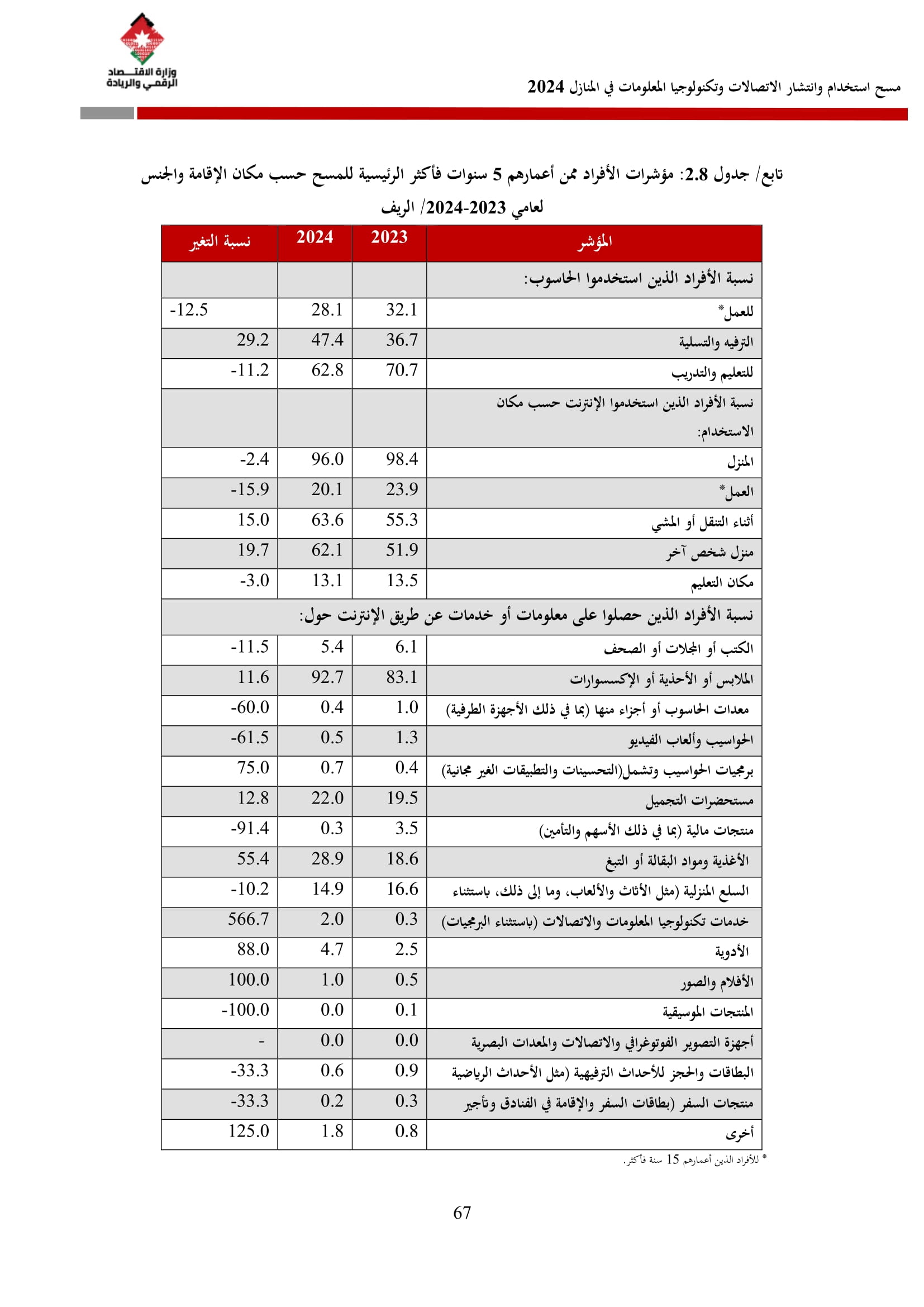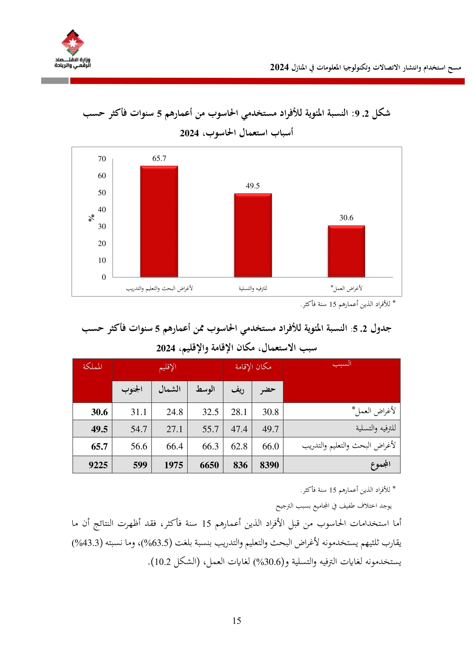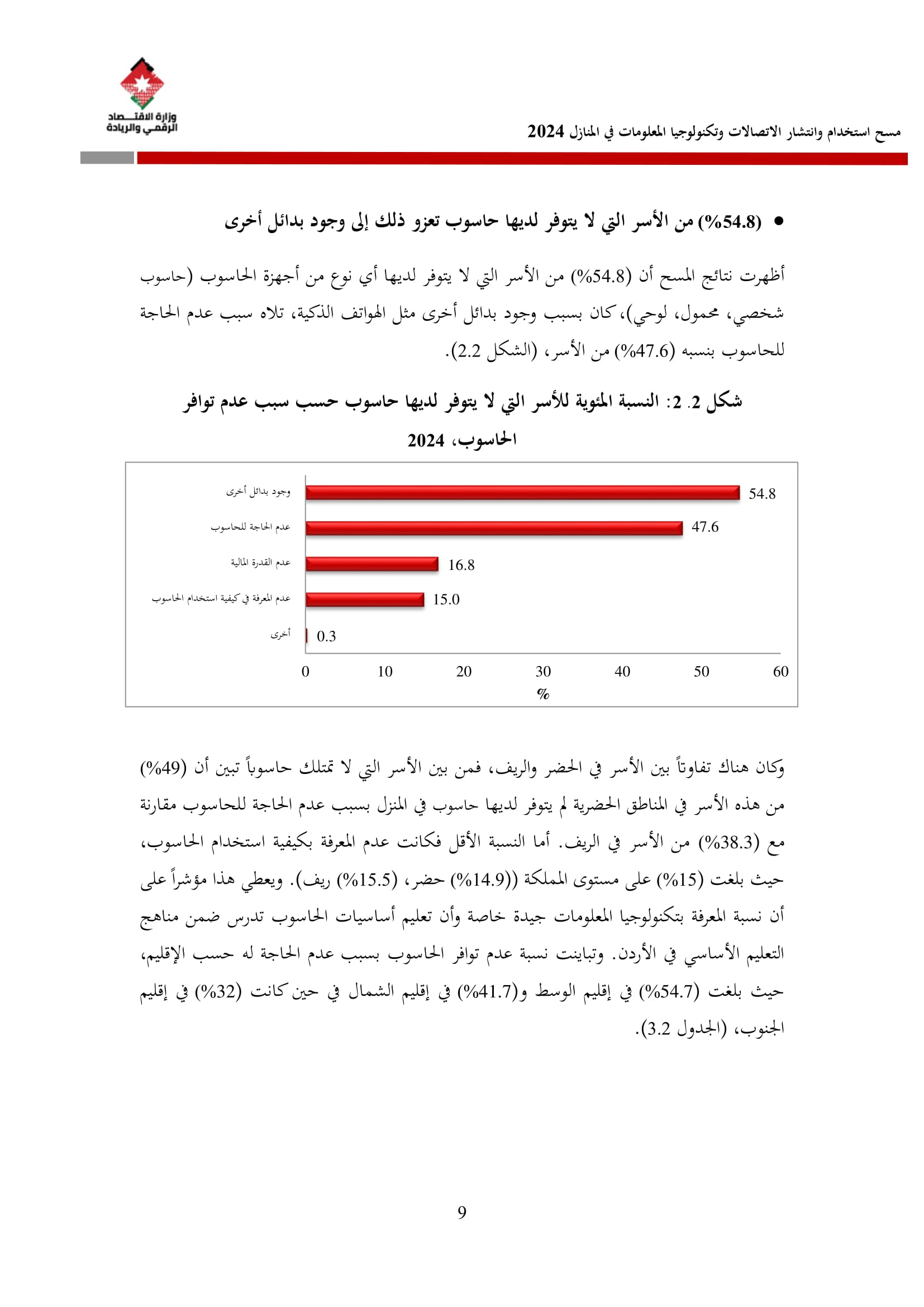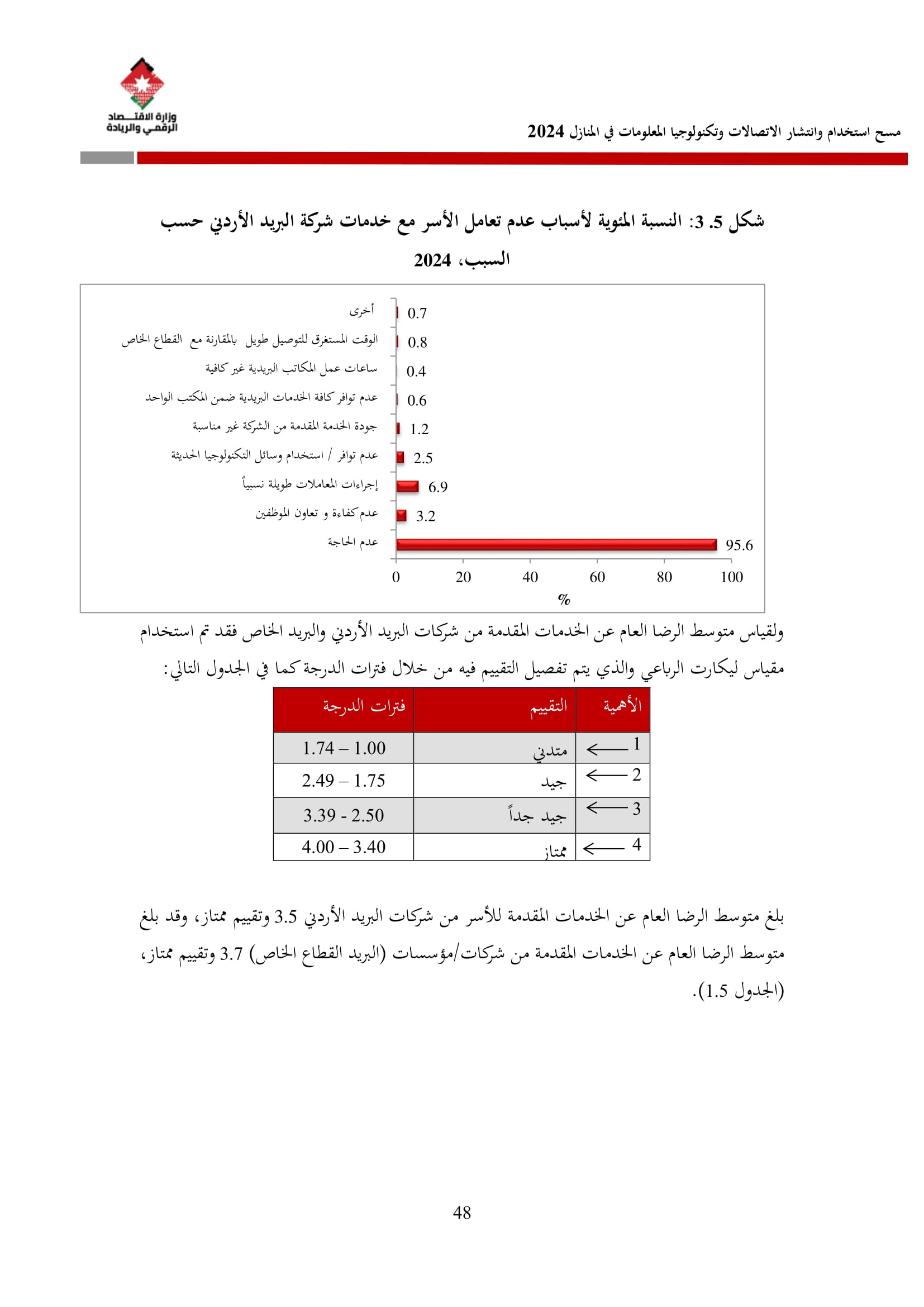 وتسهم النتائج في رسم السياسات والاستراتيجيات التي تعزز الانتشار الرقمي وتزويد المواطنين بالمهارات اللازمة لتحقيق التنمية المستدامة، إضافة إلى ذلك، تُعد هذه المؤشرات مدخلًا رئيسيًا للتقارير الدولية مثل تقارير الاتحاد الدولي للاتصالات، بما يُعزّز مكانة الأردن عالميًا ويعكس جهوده المستمرة في المجال الرقمي.