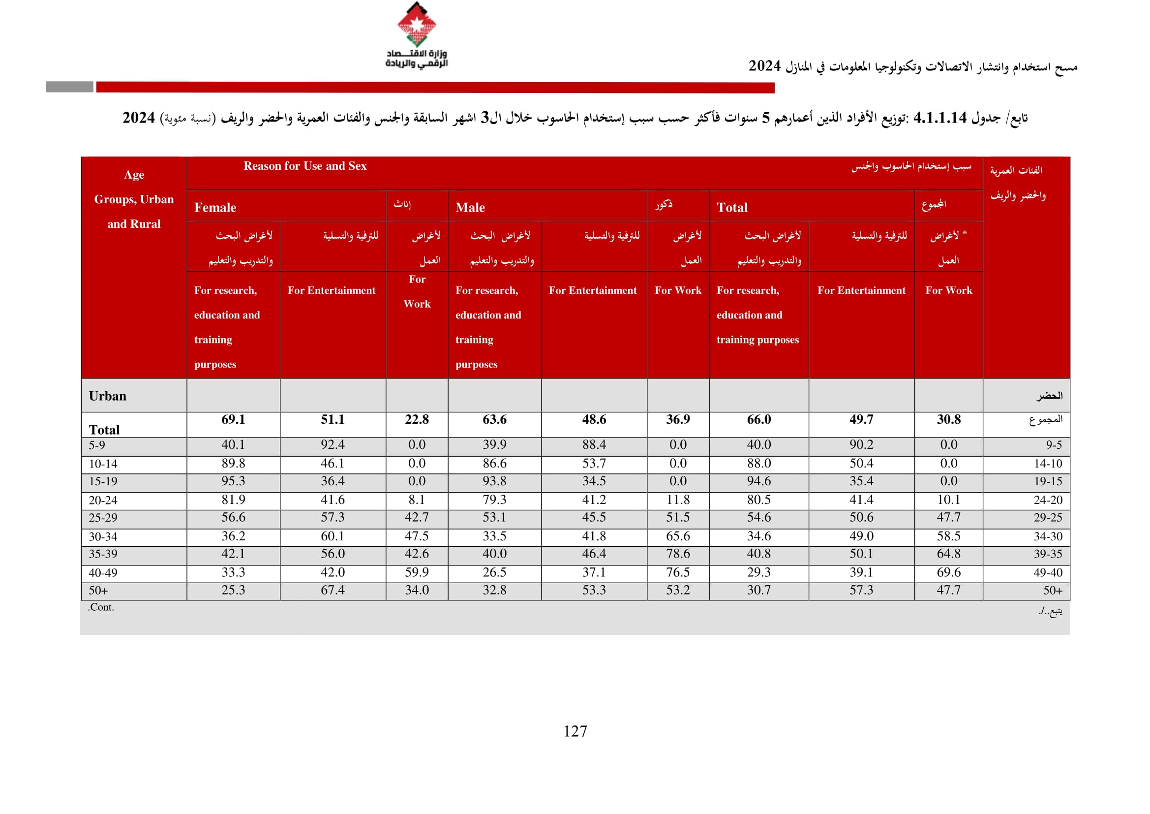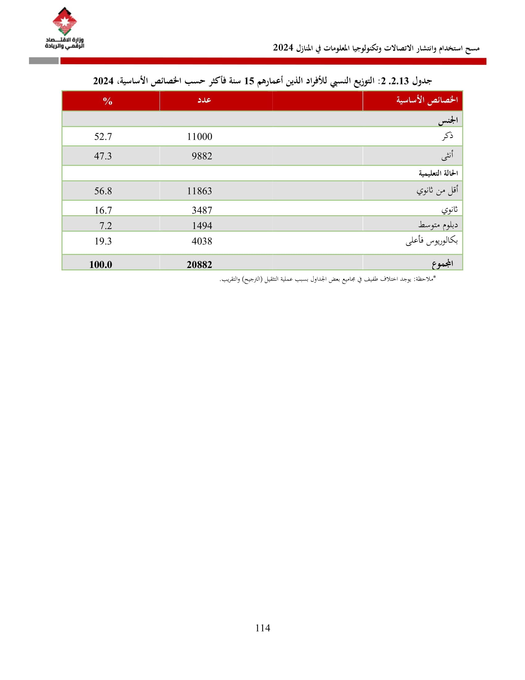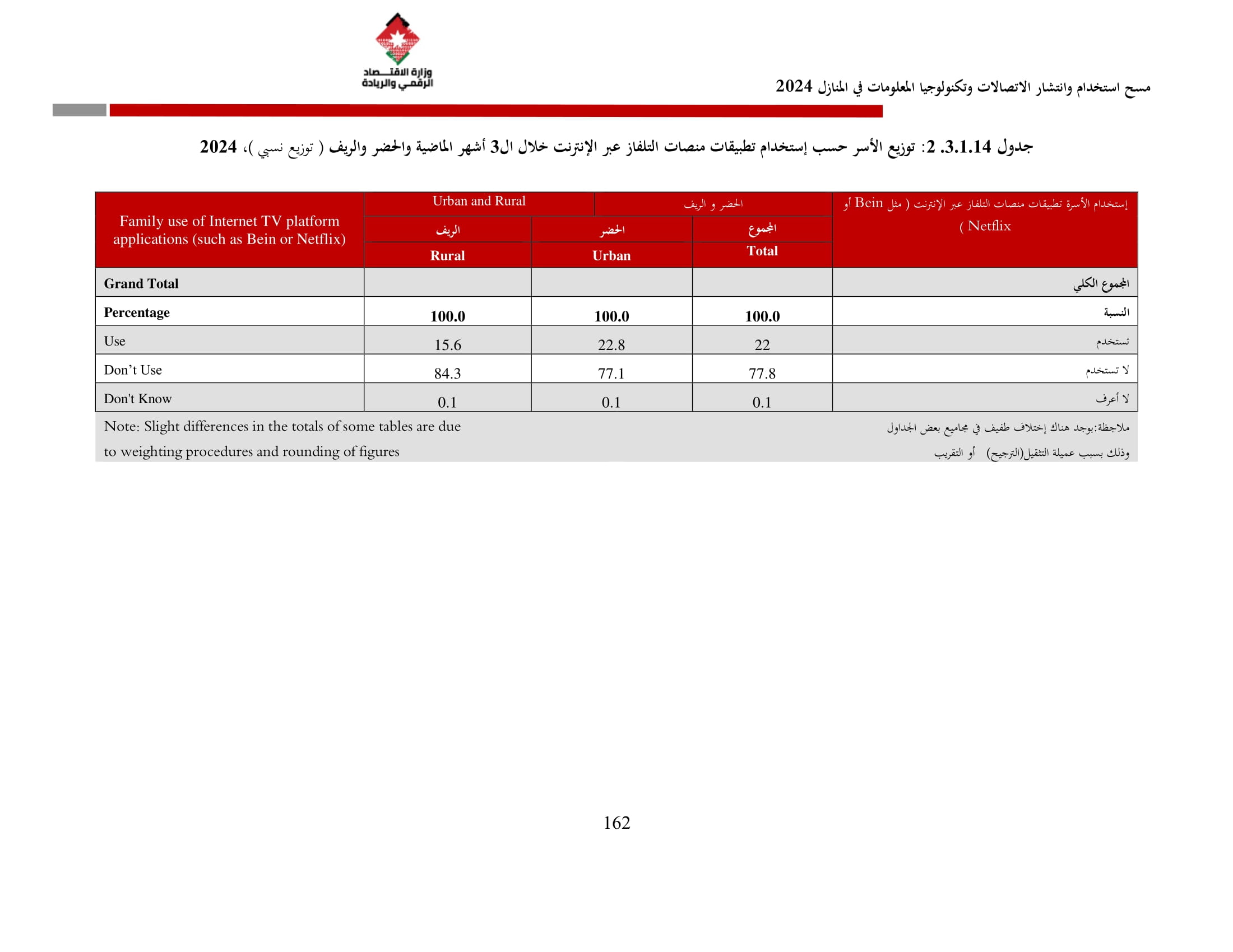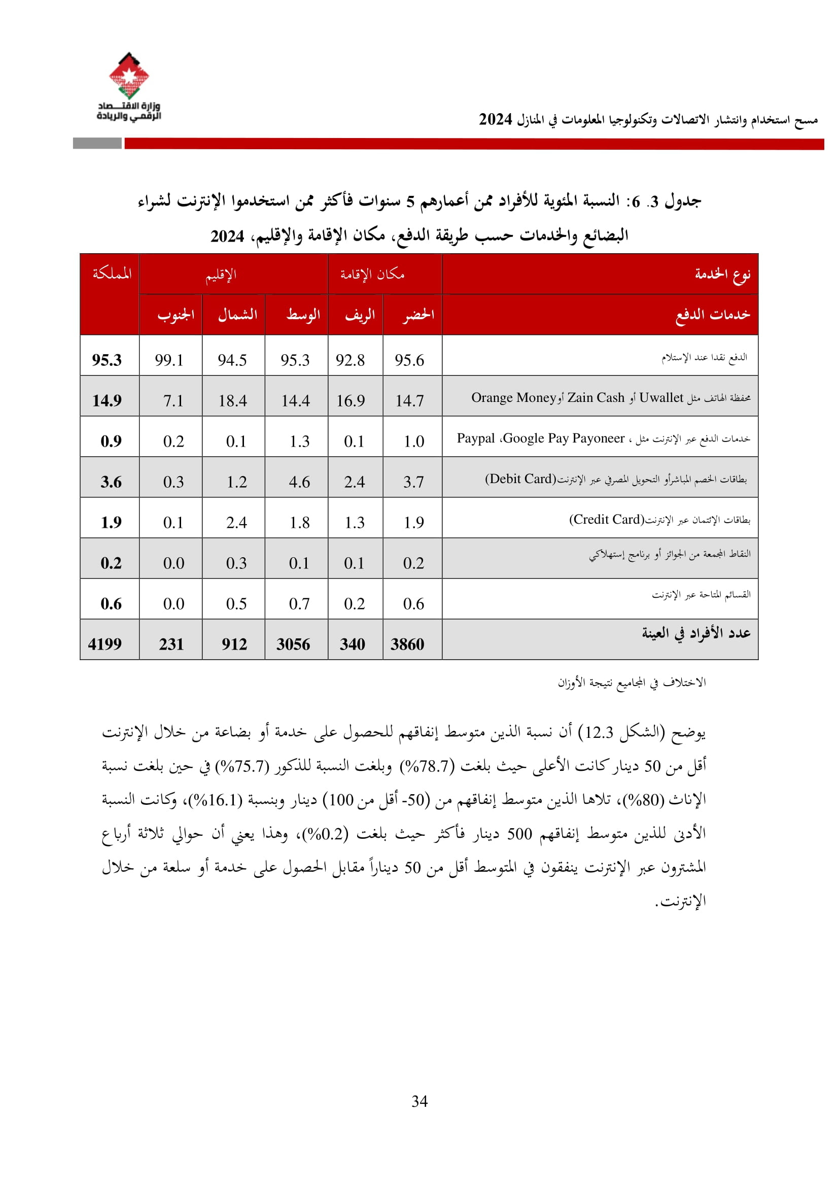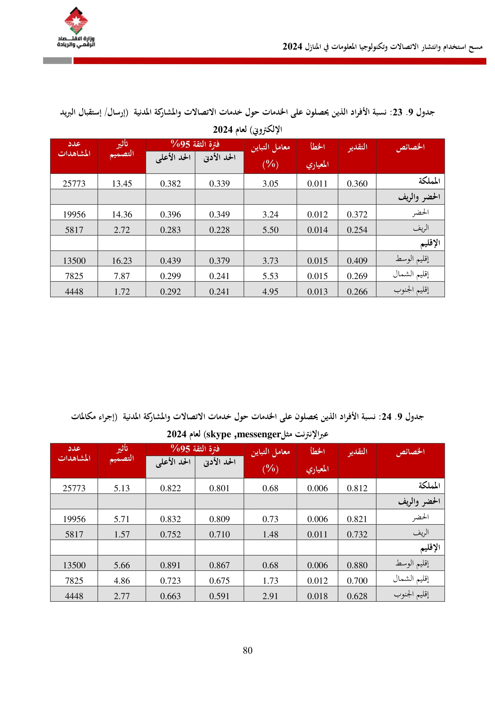وتسهم النتائج في رسم السياسات والاستراتيجيات التي تعزز الانتشار الرقمي وتزويد المواطنين بالمهارات اللازمة لتحقيق التنمية المستدامة، إضافة إلى ذلك، تُعد هذه المؤشرات مدخلًا رئيسيًا للتقارير الدولية مثل تقارير الاتحاد الدولي للاتصالات، بما يُعزّز مكانة الأردن عالميًا ويعكس جهوده المستمرة في المجال الرقمي.