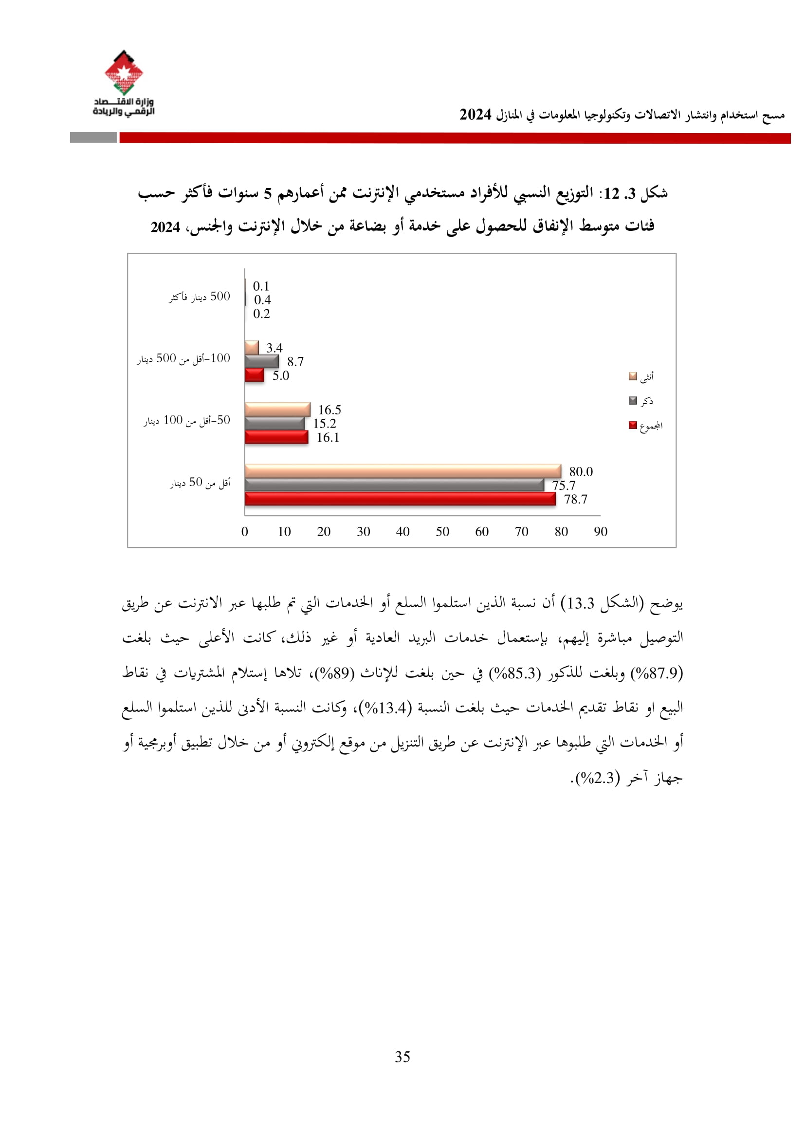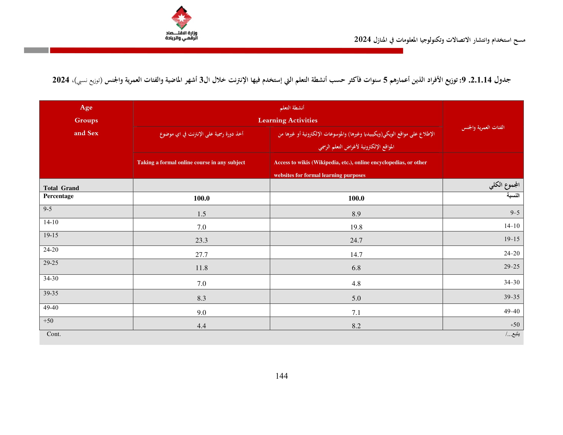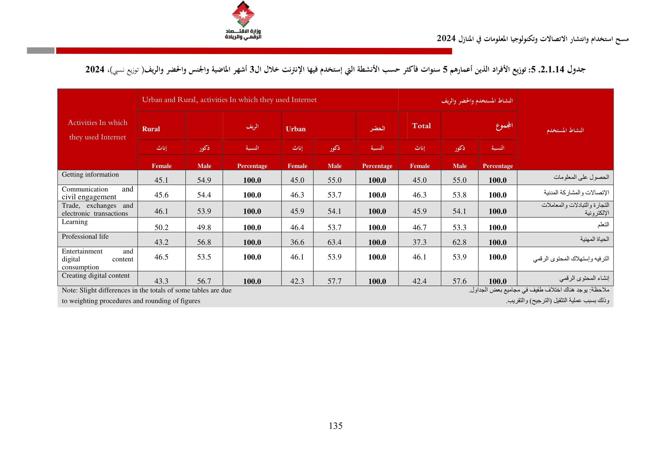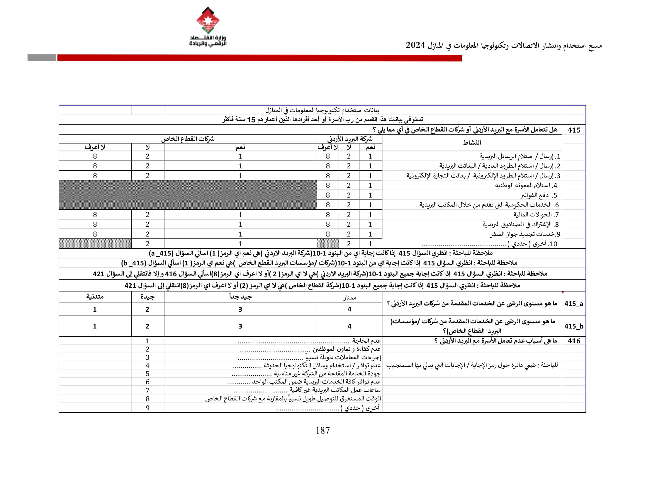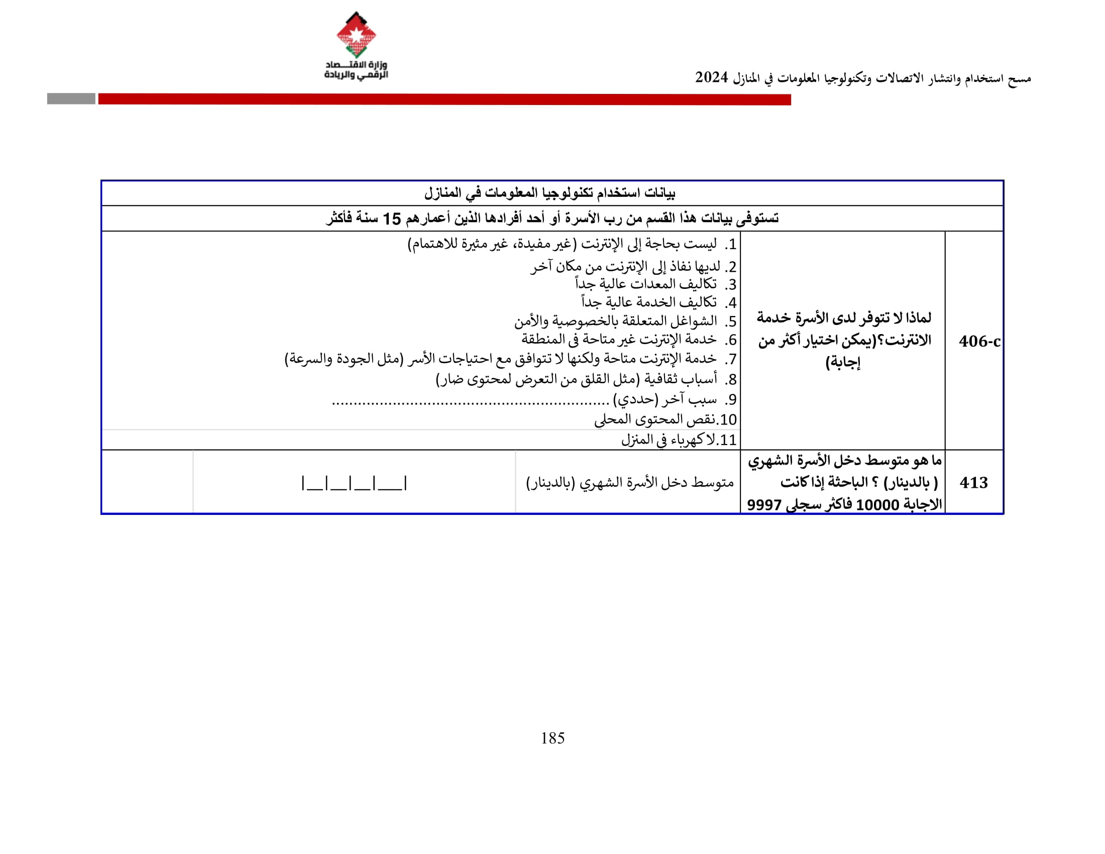 وتسهم النتائج في رسم السياسات والاستراتيجيات التي تعزز الانتشار الرقمي وتزويد المواطنين بالمهارات اللازمة لتحقيق التنمية المستدامة، إضافة إلى ذلك، تُعد هذه المؤشرات مدخلًا رئيسيًا للتقارير الدولية مثل تقارير الاتحاد الدولي للاتصالات، بما يُعزّز مكانة الأردن عالميًا ويعكس جهوده المستمرة في المجال الرقمي.
