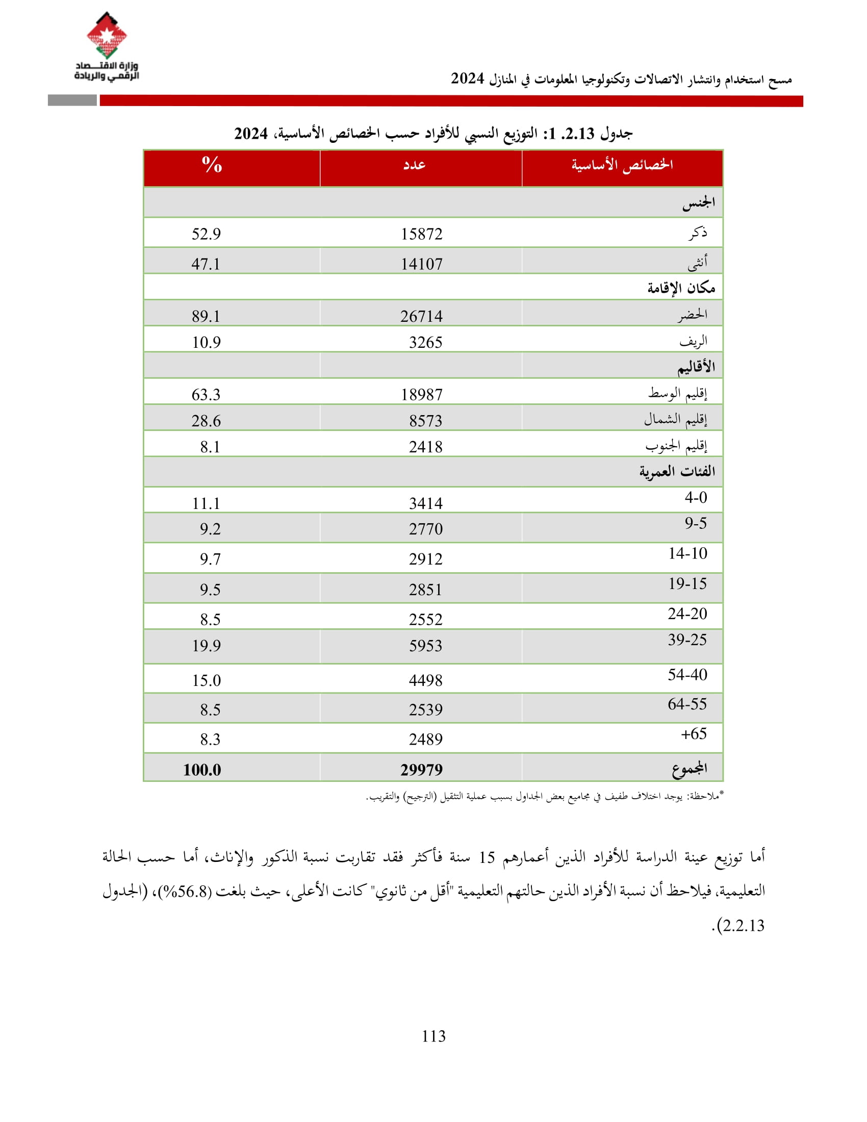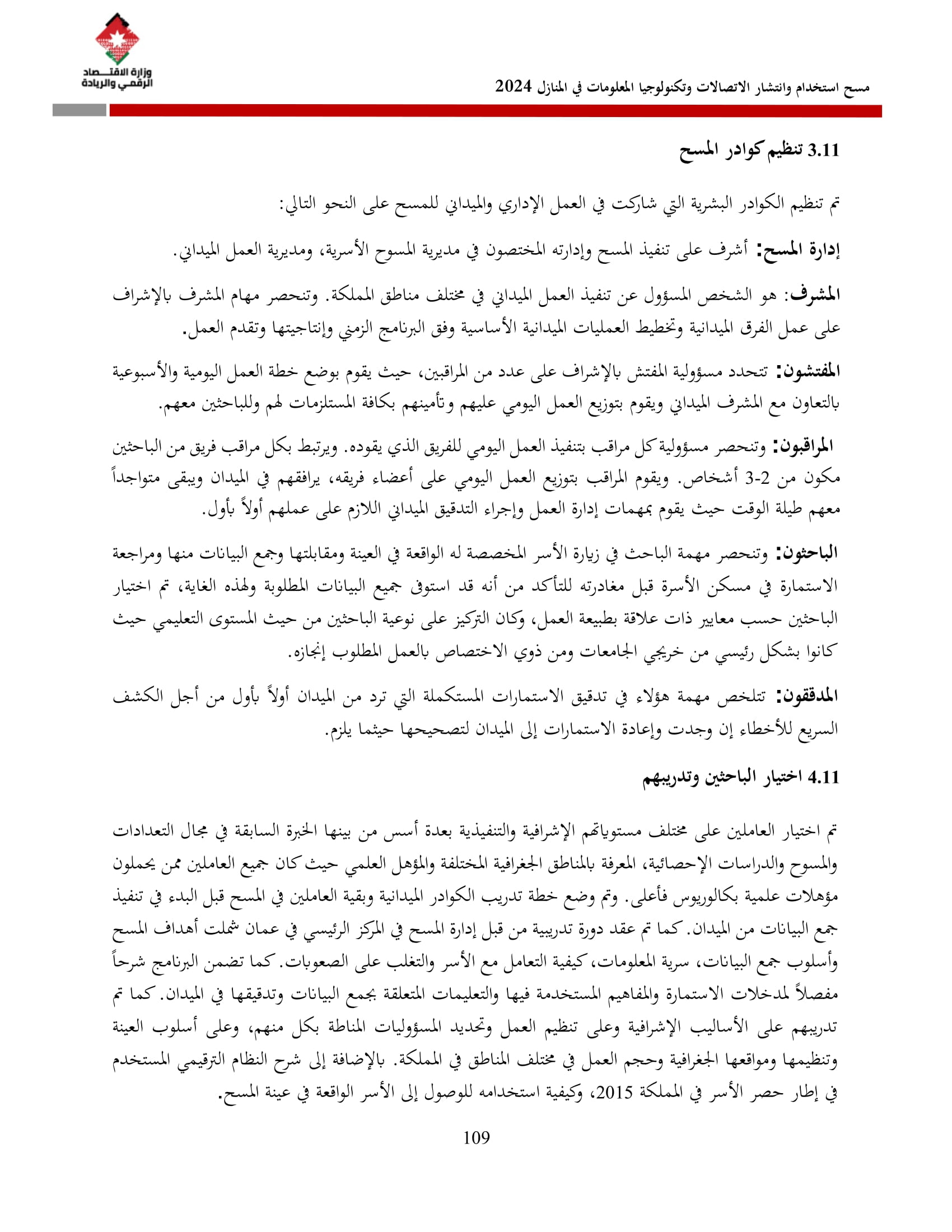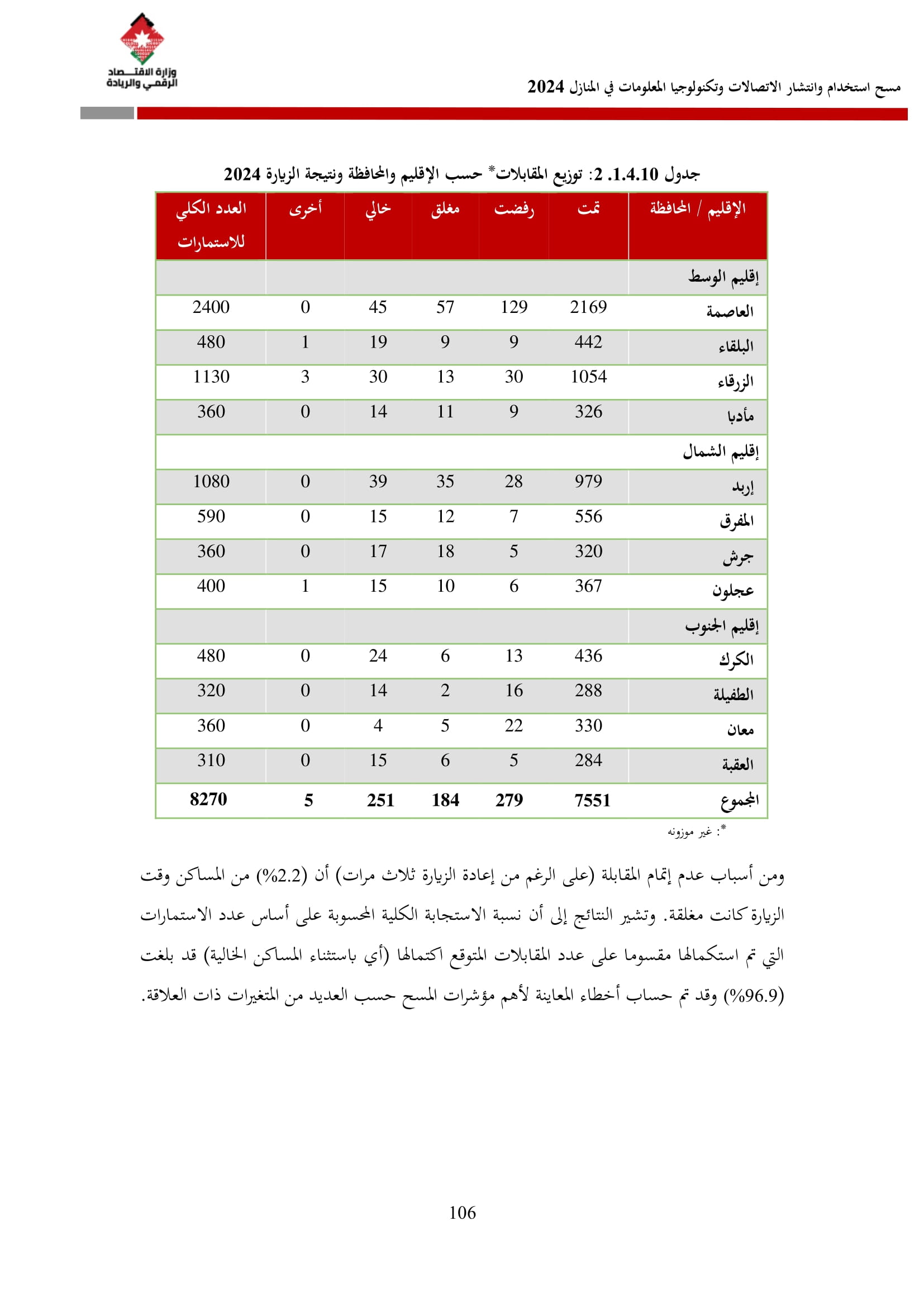 يُذكر أن المسح الذي يُنفذ سنويًا منذ عام 2007 بالتعاون مع دائرة الإحصاءات العامة شمل في نسخته لعام 2024 عينة بلغت 8270 أسرة، جُمعت بما يضمن التمثيل على مستوى المملكة وأقاليمها الثلاثة (شمال، وسط، جنوب) وعلى مستوى المحافظات، وبالاعتماد على إطار التعداد العام للسكان والمساكن لعام 2015.