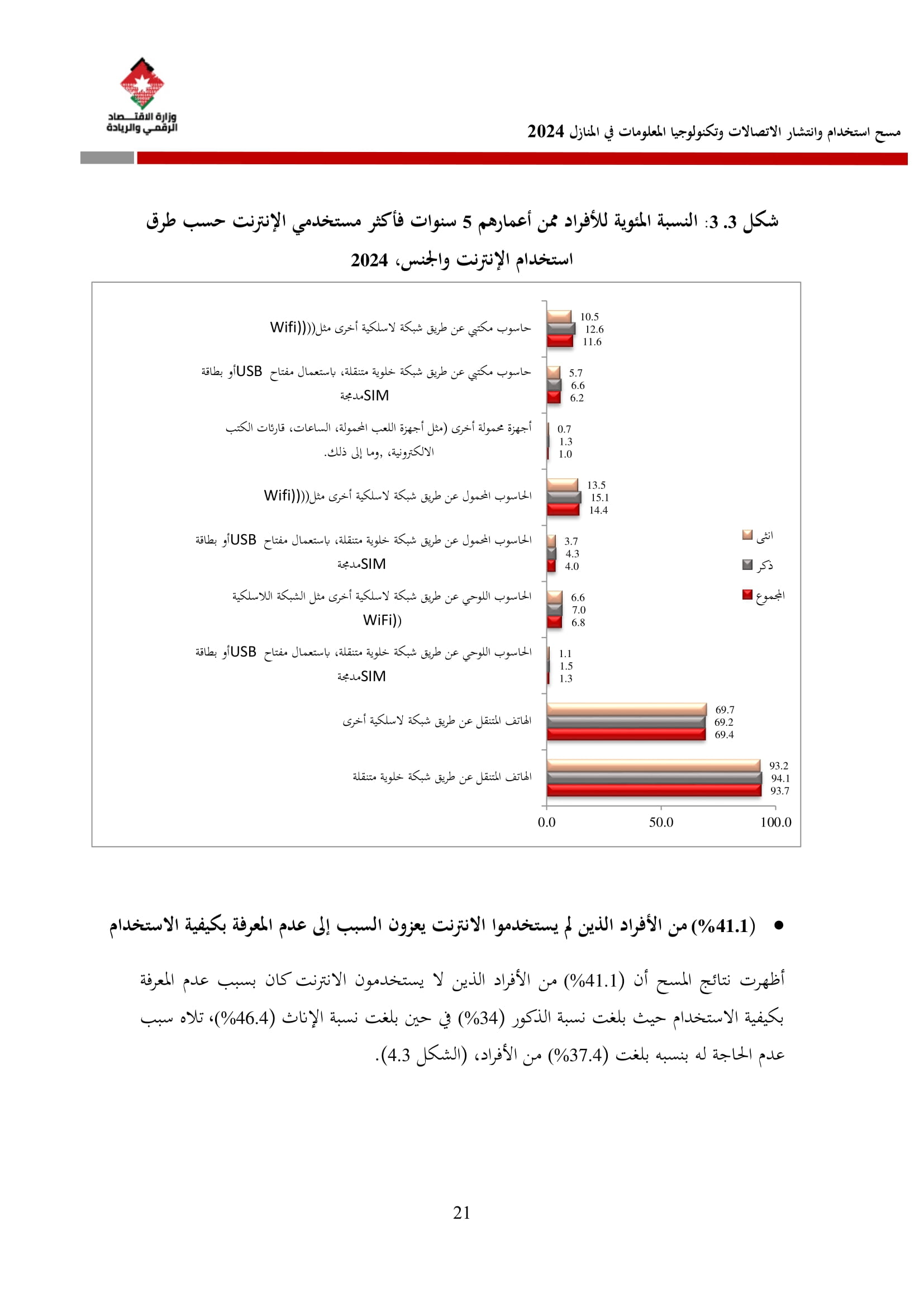 %96.5 من الأسر الأردنية لديها خدمة إنترنت في المنازل