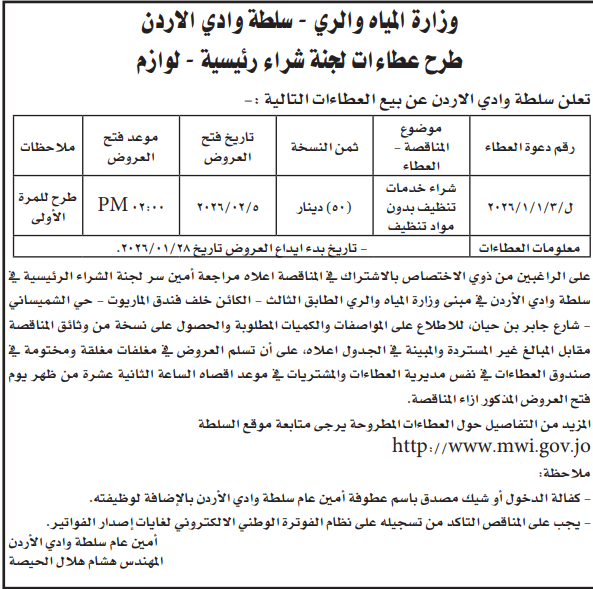 عطاء شراء خدمات التنظيف لوزارة المياه والري