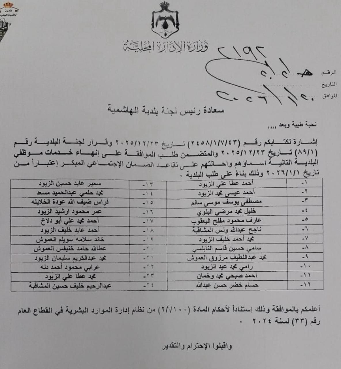 عمون - أكد خبير التأمينات الاجتماعية موسى الصبيحي، عبر صفحته على موقع فيسبوك، أن إحالة أي موظف إلى التقاعد المبكر ليست من صلاحيات وزير الإدارة المحلية ولا من صلاحيات رؤساء البلديات، مشددًا على أن هذه الجهات تملك فقط صلاحية إنهاء خدمات الموظف، دون الحق في إحالته إلى تقاعد الضمان المبكر. |