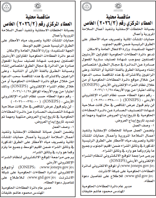 عطاءات صادرة عن دائرة العطاءات الحكومية