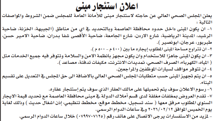 عطاء استئجار مبنى للمجلس الصحي العالي