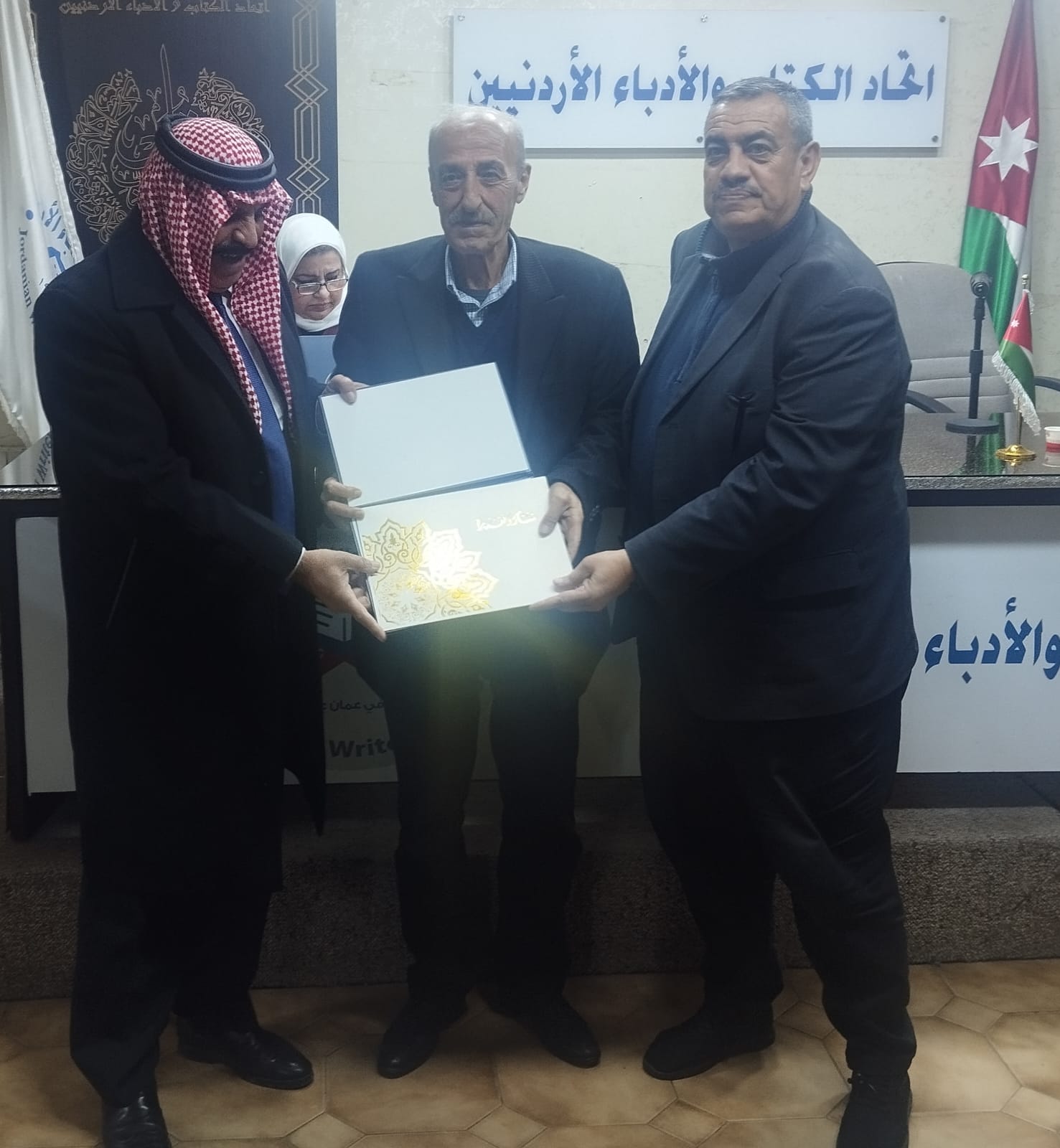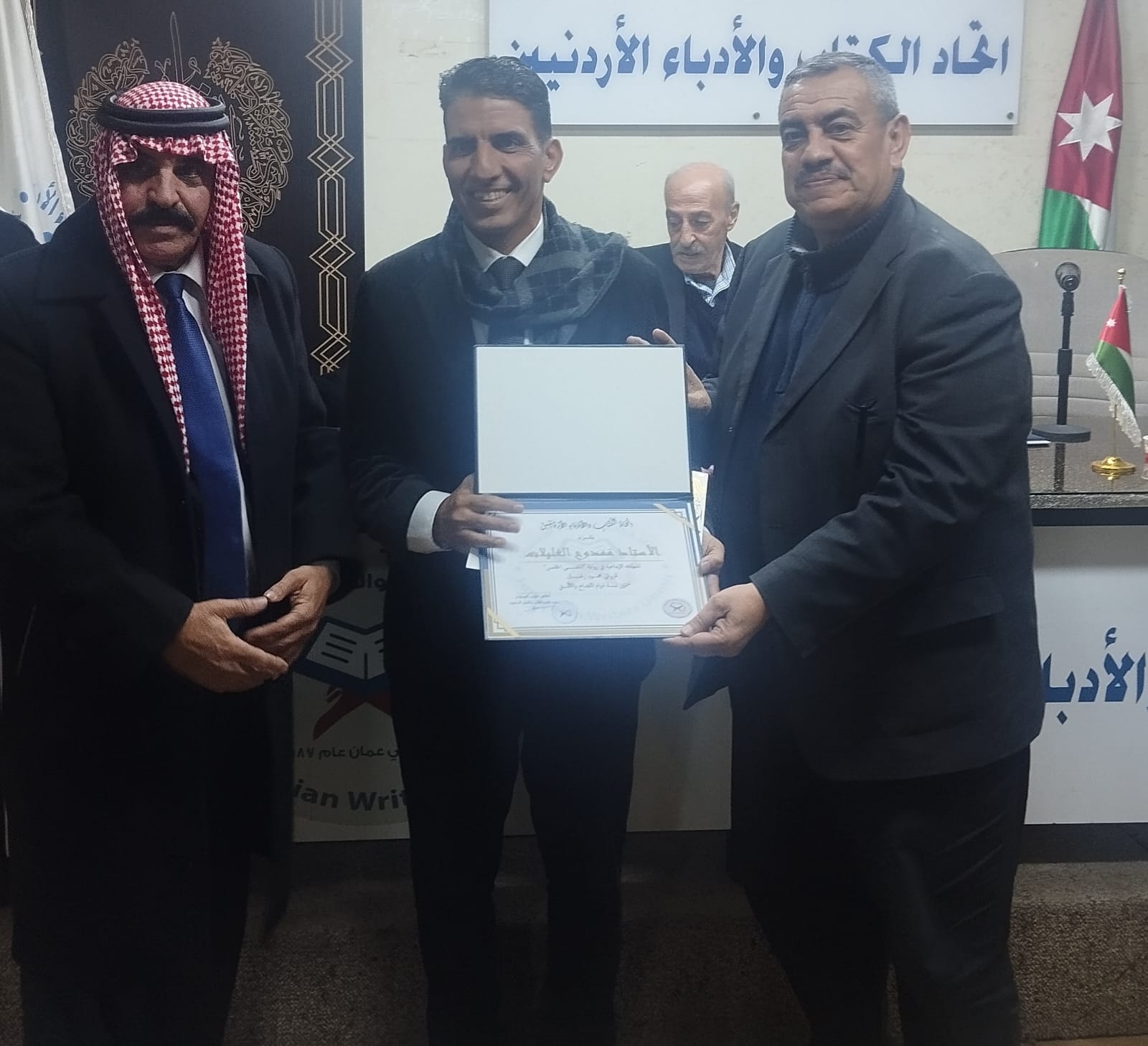 وفي نهاية الحفل تفضل العدوان والمجالي بتسليم الشهادات التكريمية للمشاركين وتم التقاط الصور التذكارية لهذه المناسبة