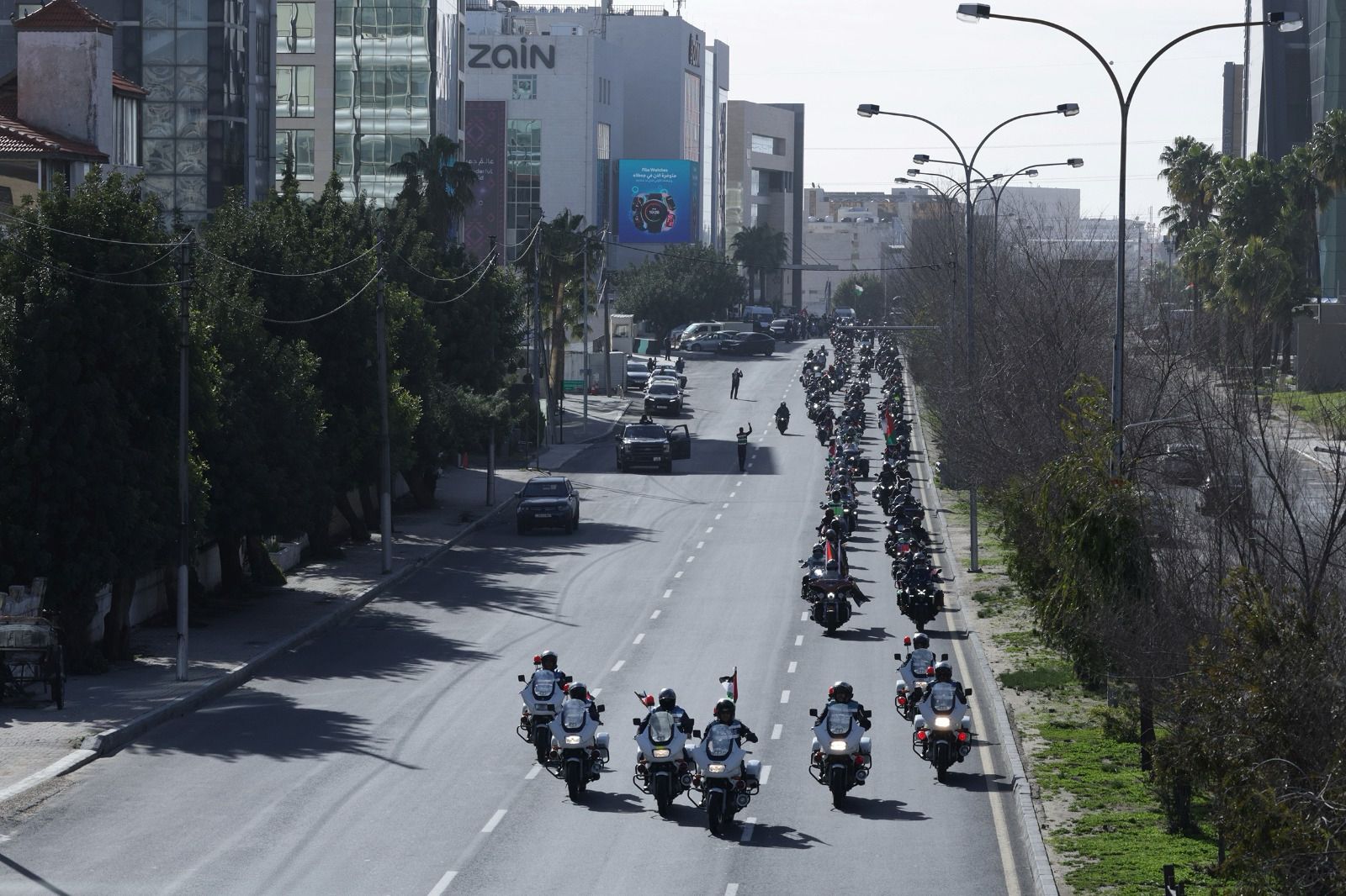 وشارك في المسيرة التي انطلقت صباح اليوم الجمعة مئات الدراجات النارية في موكب احتفالي مهيب تجسدت فيه مشاعر الولاء الفخر والاعتزاز بجلالة الملك، وجابت المسيرة عدداً من شوارع العاصمة عمّان وصولاً إلى الساحة الهاشمية في منطقة وسط البلد، حيث استُكملت الاحتفالات بمعزوفات لموسيقات الأمن العام مع أجمل الألحان الوطنية المميزة التي تغنّت بعيد ميلاد قائد الوطن الميمون.