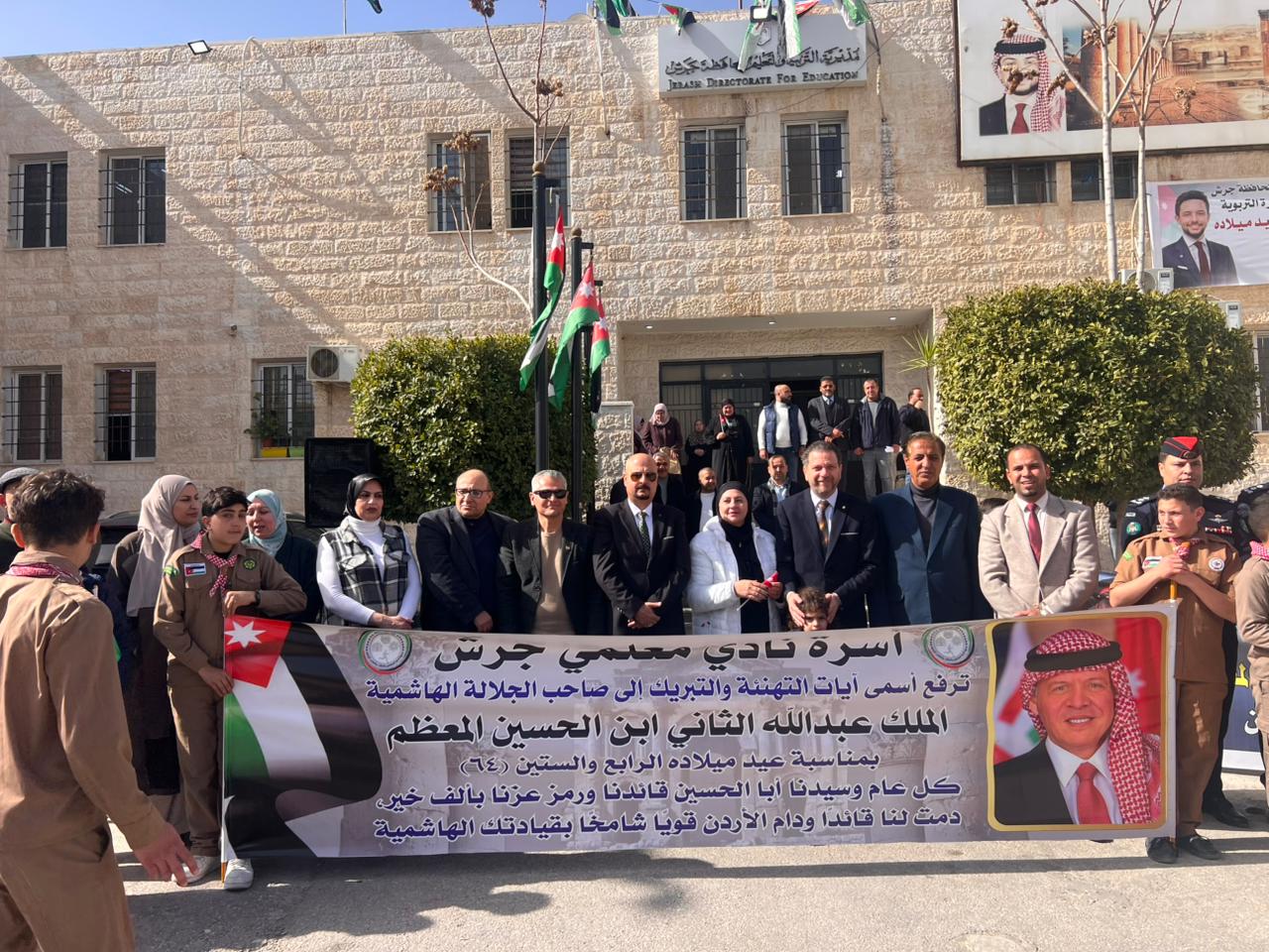 عمون - نظّمت مديرية التربية والتعليم لمحافظة جرش، صباح اليوم الأحد 1 شباط 2026، مسيرة وطنية بمناسبة عيد ميلاد جلالة الملك عبدالله الثاني ابن الحسين المعظم، بمشاركة واسعة من الأسرة التربوية وموظفي المديرية وطلبة الكشافة.