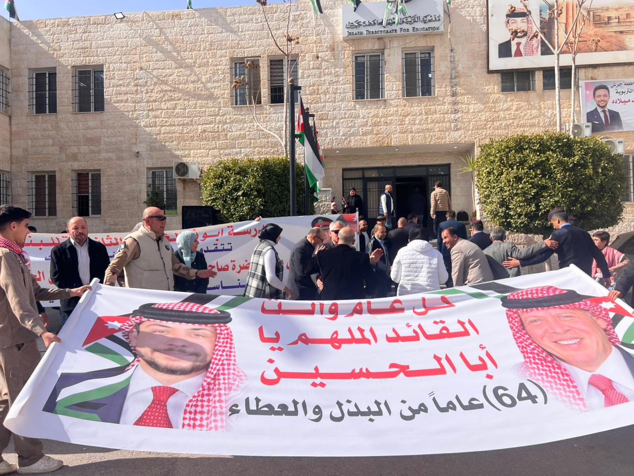 وانطلقت المسيرة من أمام مبنى المديرية باتجاه دوار القيروان، قبل أن تعود إلى ساحة المديرية، حيث رفع المشاركون الأعلام الأردنية وصور جلالة الملك، ورددوا عبارات الولاء والانتماء، تعبيراً عن اعتزازهم بالقيادة الهاشمية.