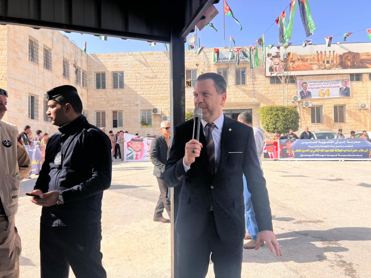من جانبه، أكد نائب محافظ جرش أن عيد ميلاد جلالة الملك يمثل مناسبة وطنية جامعة تجسد وحدة الأردنيين خلف قيادتهم الهاشمية، مثمناً دور الأسرة التربوية في غرس قيم المواطنة الصالحة في نفوس الأجيال