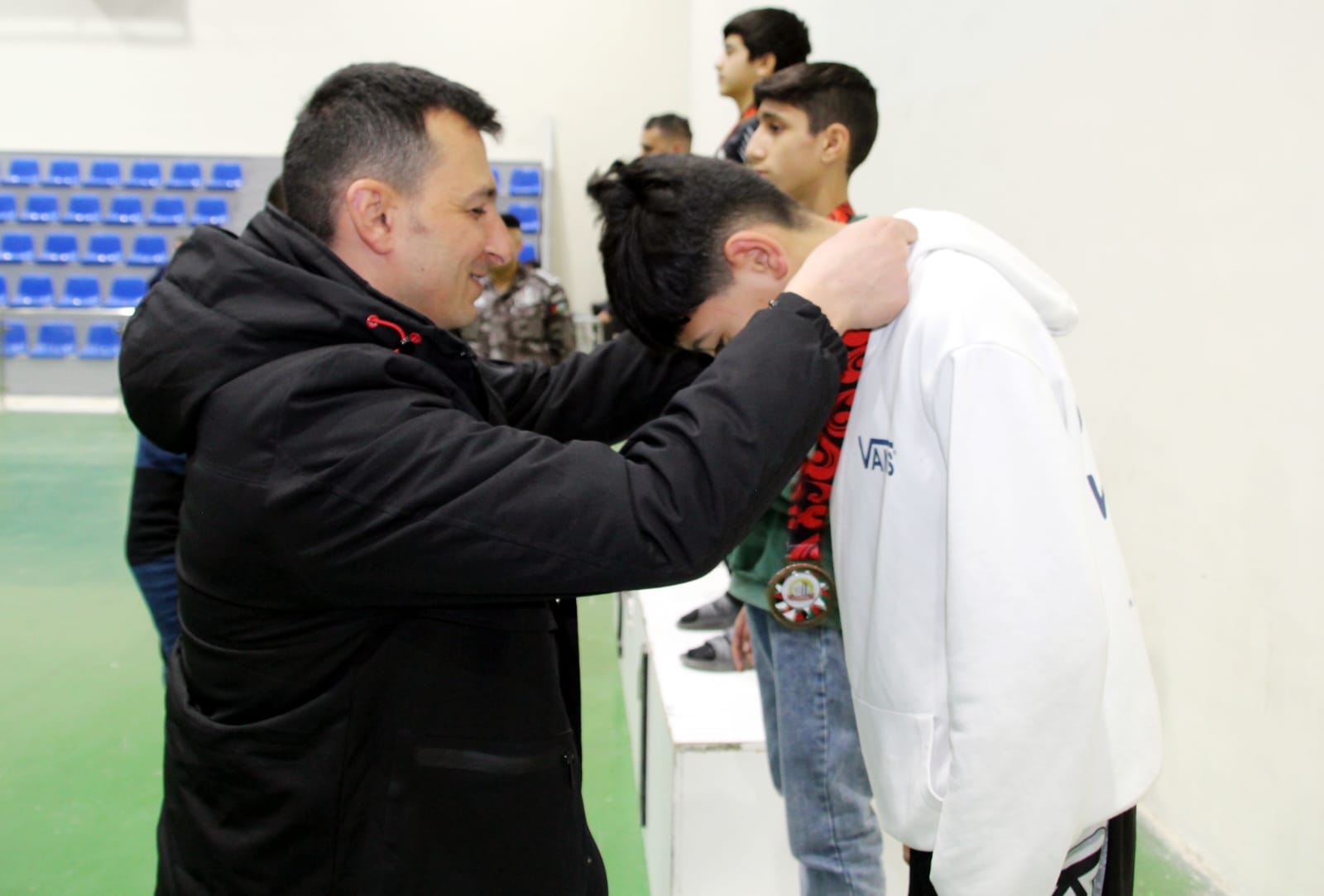 وفي ختام النزالات، جرت مراسم تتويج الأبطال في أجواء احتفالية، من قبل رئيس الاتحاد الأردني لرياضات الكيك بوكسينغ محمد الجريري، وقائد وحدة أمن الملاعب، العقيد فادي أبو خيط، وأعضاء مجلس إدارة الاتحاد.