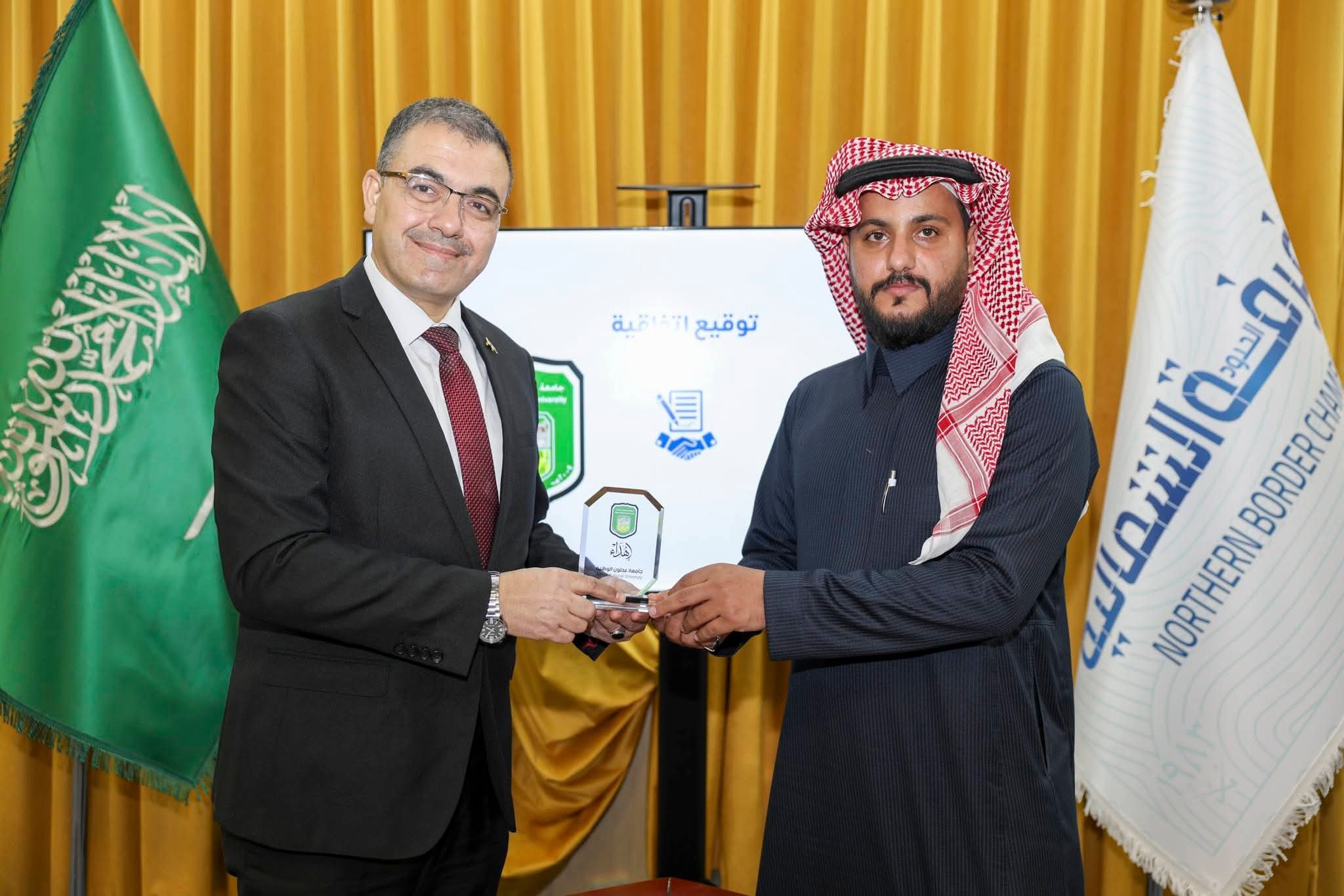 عمون - وقّع عطوفة رئيس جامعة عجلون الوطنية، الأستاذ الدكتور فراس الهناندة، مذكرة تفاهم مع غرفة التجارة الشمالية في المملكة العربية السعودية، وذلك خلال الزيارة الرسمية التي قام بها وفد الجامعة إلى المنطقة الشمالية، في إطار تعزيز التعاون المؤسسي وربط التعليم العالي باحتياجات التنمية الاقتصادية وسوق العمل.