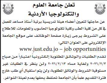 جامعة العلوم والتكنولوجيا بحاجة لتعيين اعضاء هيئة تدريسية