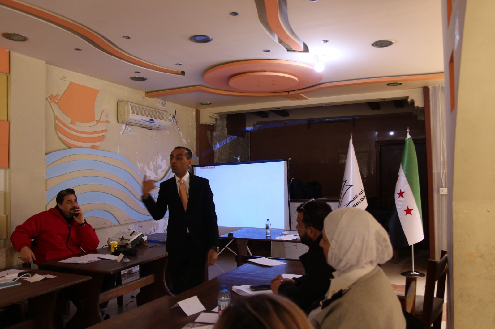 عمون - أنهى الزميل خالد القضاة وبتكليف من الاتحاد الدولي للصحفيين وبتنظيم من اتحاد الصحفيين السوريين تدريب مجموعة من الصحفيين في مدينتي دمشق واللاذقية على مبادئ ومتطلبات السلامة المهنية للتغطية الميدانية في البيئات المعادية للعمل الإعلامي.
