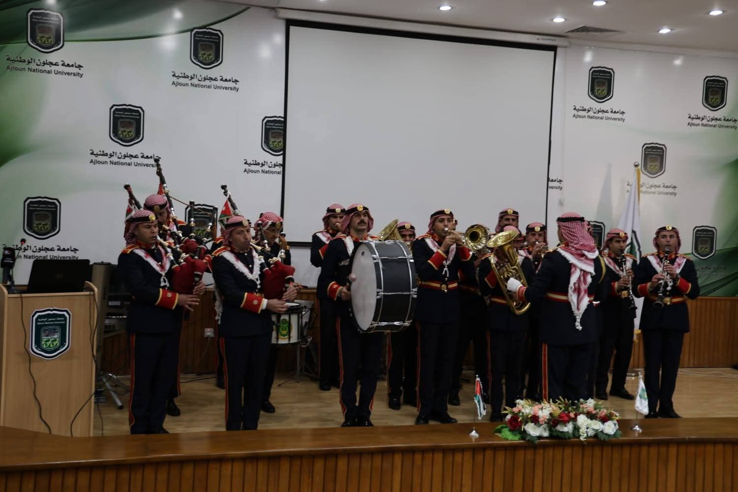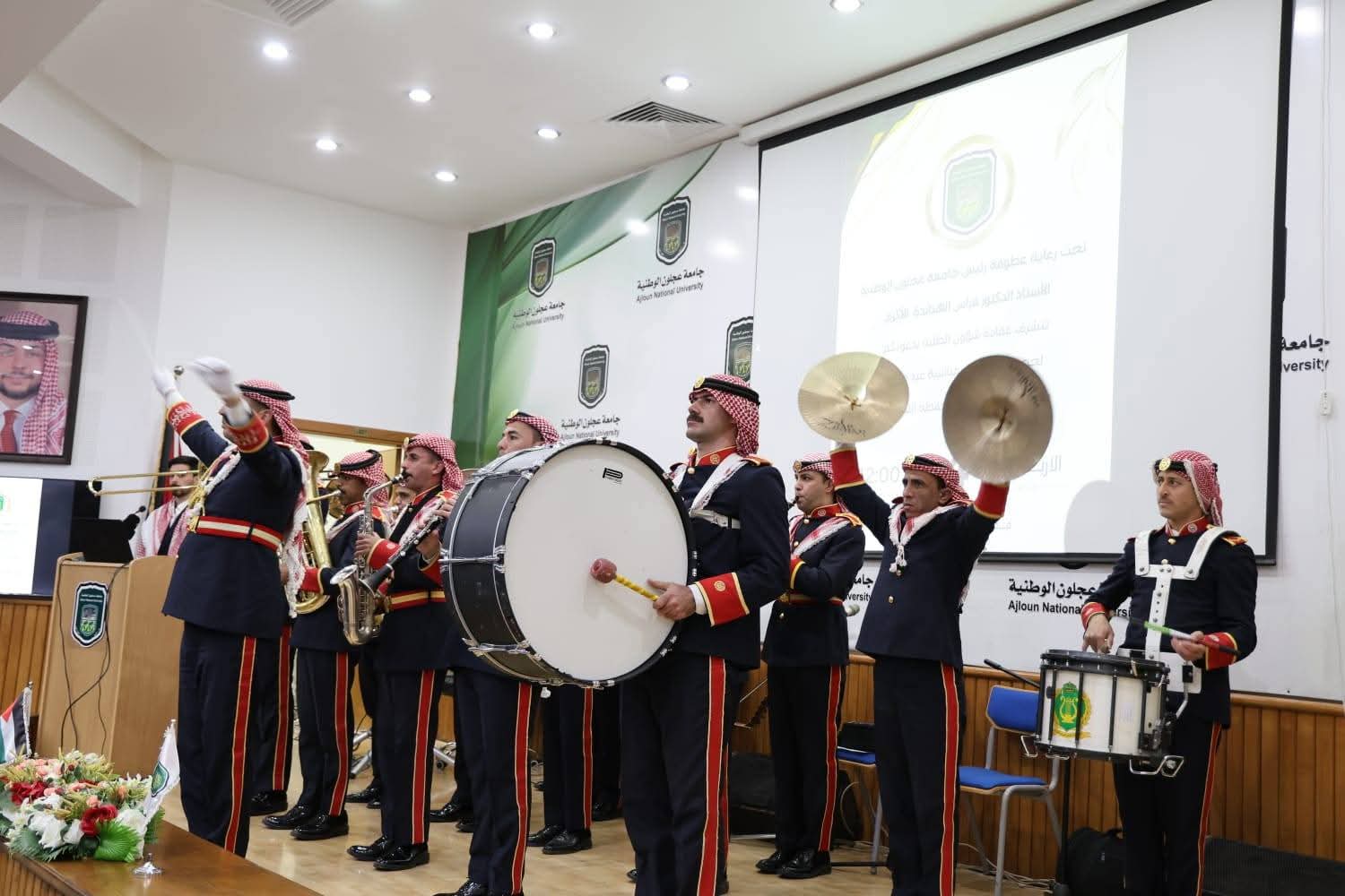 وتخلل الحفل فقرة وطنية قدّمتها موسيقات القوات المسلحة الأردنية، تفاعل معها الحضور، تلتها فقرة غنائية وطنية عبّرت عن الفرح والاعتزاز بهذه المناسبة، وشاركت فيها أسرة الجامعة في أجواء جسّدت وحدة المشاعر وصدق الانتماء.