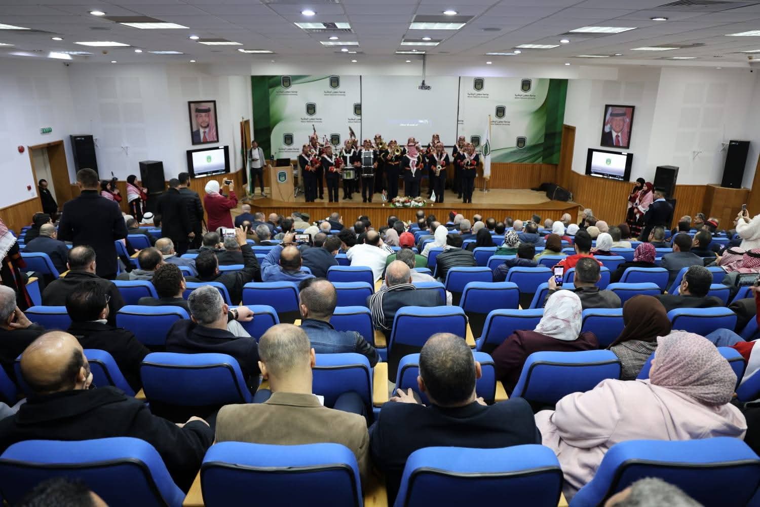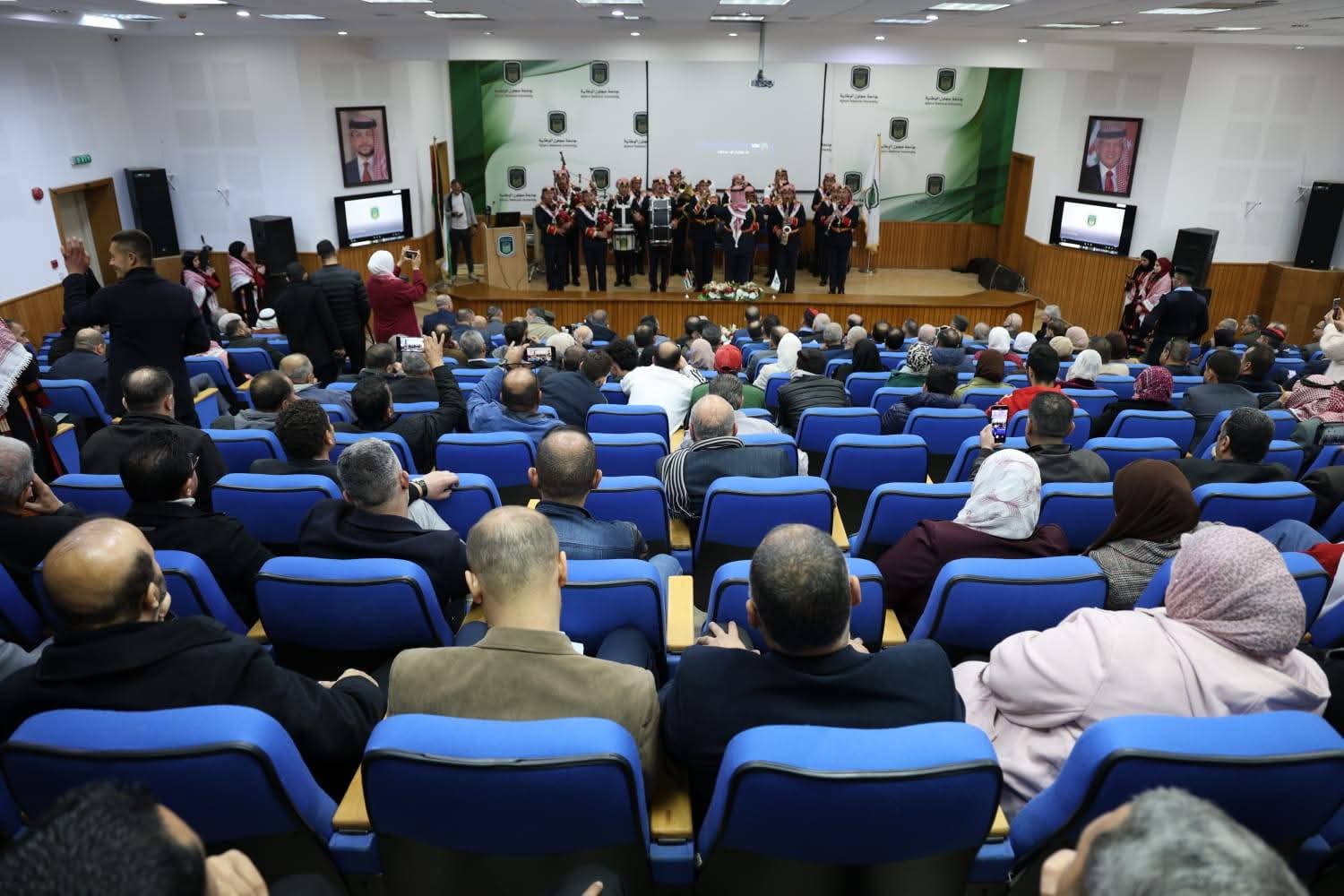 وانطلقت فعاليات الاحتفال بمسيرة وطنية مهيبة من مبنى رئاسة الجامعة، تقدّمتها موسيقات القوات المسلحة الأردنية، وصولًا إلى مدرج عز الدين أسامة، في مشهد جسّد روح الانتماء والولاء، وعكس رمزية المناسبة وعظمتها.