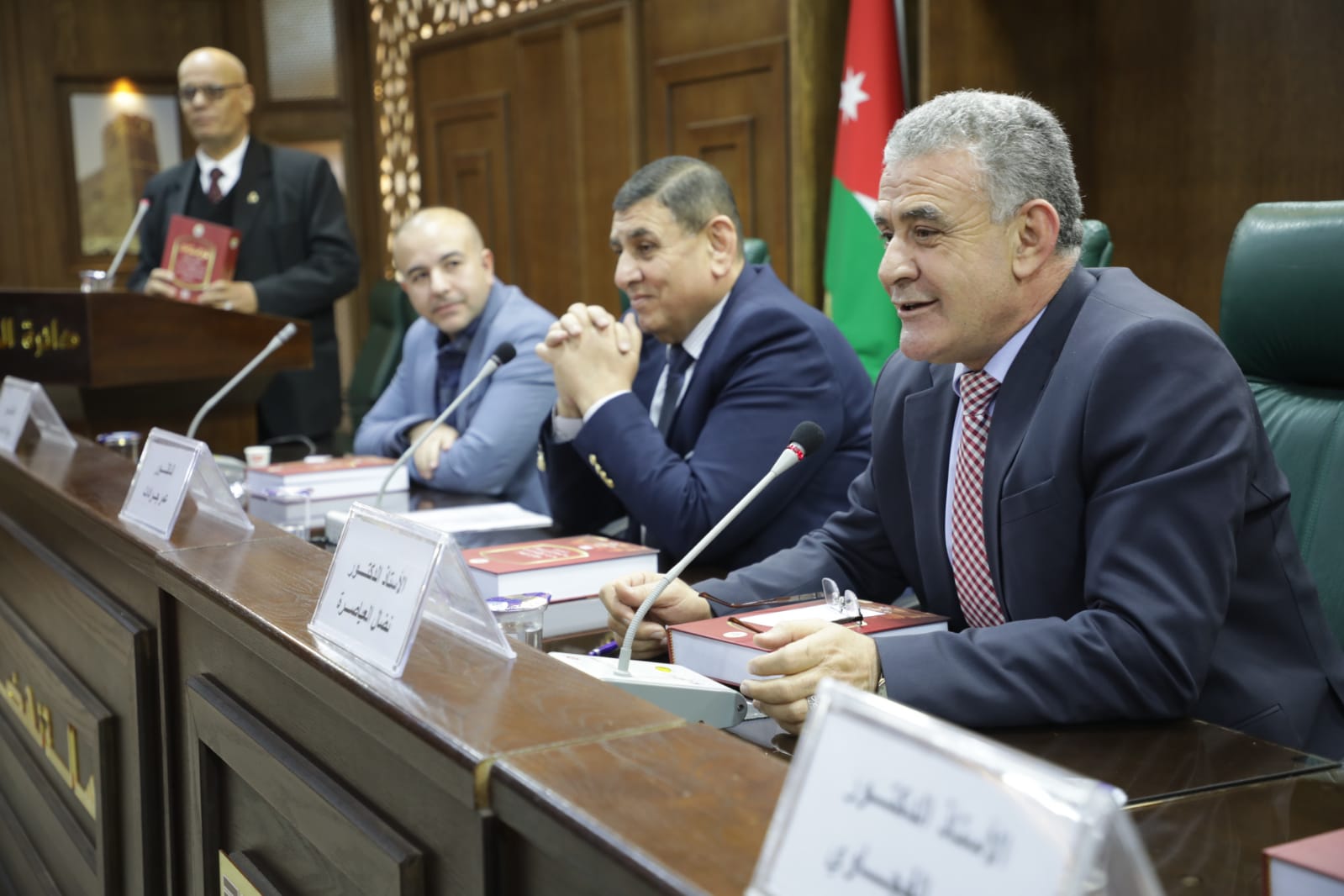 وأشار الأستاذ الدكتور عمر الفجاوي، أستاذ اللغة العربية في الجامعة الأردنية إلى دور دائرة المكتبة الوطنية في الحفاظ على اللغة العربية، مسلطاً الضوء على المضامين اللغوية للكتاب، ومثمناً دقة تحكيم البحوث المنشورة، ومشيداً بجهود اللجنة العلمية ولجنة إعداد الكتاب.