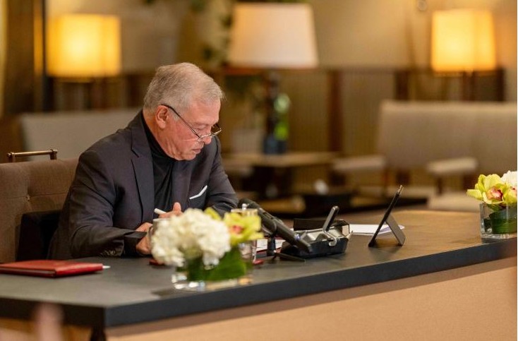 لا يعطيك اجابة مباشرة لسؤالك لكنه مباشر إن استمعت لقول يشفي غليلك فتفهم من بين السطور موقفه المستقبلي ومدى رضاه او غضبه من فعل. الانطباع اقوى من الحقيقة كما يقال لكن خرجنا بانطباع وحقيقة ان الملك مرتاح وخطواته الواثقة نحو خدمة بلده جعلته يقول (الأردن يضع مصلحته ومصلحة مواطنيه فوق كل اعتبار).. يضع نظارته وينظر لما بين يديه من ورق كنا نتمنى لو سرقناه ، وحينما يسأله سائل عن حكومته لا يسهب في الكلام فيقول لنائب رئيس الوزراء ايمن الصفدي الحاضر للقاء : اجب ! لكنه كان الاوضح في الحديث عن توجيهاته ورغباته و اوامره. في كل مرة التقينا جلالته كان متشددًا في التوجيه ان لا نقترب من الاشقاء حتى ايام ما فتحت علينا ابواق الافتراء بدعم دولة بعينها ، كان يحرص ان يتعامل الاعلام الوطني معها بروح ايجابية وتجاوز اللحظة .. وبالمناسبة افرحنا جلالته حينما خصص جزءًا من كلامه للاشادة البالغة في الشقيقة الكبرى المملكة السعودية واتصالاته مع رئيس دولة الامارات وزيارته لمصر والتعاون الاخوي مع قطر وتفاصيل العلاقة مع العرب التواصل اليومي وشبهه مع السعودية خاصة جهود ونشاط سمو الامير الحسين مع ولي العهد السعودي .. ولا يخفى على المهتمين كم حاول البعض اللعب على شاطيء الوصاية وتبريد العلاقات الا ان عمق الاخوة كان اقوى من كل قوى الظلام. لا نخفي سرًا ان محاولات لقاء يجمع بين الملك ورئيس الوزراء الاسرائيلي كلها باءت بالفشل رغم كل الضغوطات والاغراءات فالملك العروبي تجلّت هاشميته بالموقف المتقدم من غزة ودعم الفلسطينيين.