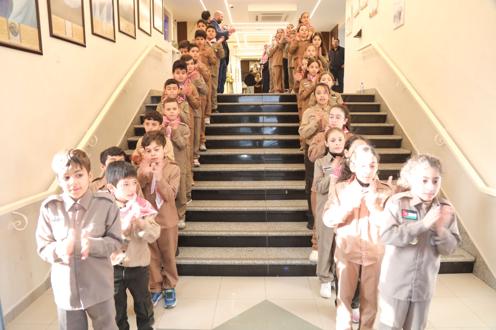 عمون - شاركت دائرة المكتبة الوطنية اليوم الخميس 5/2/2026 بمعرض صور وثائقية لعيد ميلاد جلالة الملك وأبرز انجازاته في احتفال المدارس العمرية بيوم الوفاء الوطني لقائد الوطن الذي أُقيم بمناسبة عيد ميلاد جلالة الملك عبد الله الثاني ابن الحسين، برعاية الدكتوربركات عوجان وبحضور مدير عام المكتبة الوطنية الاستاذ فراس الضرابعه عدد من الشخصيات الرسمية والتربوية. |