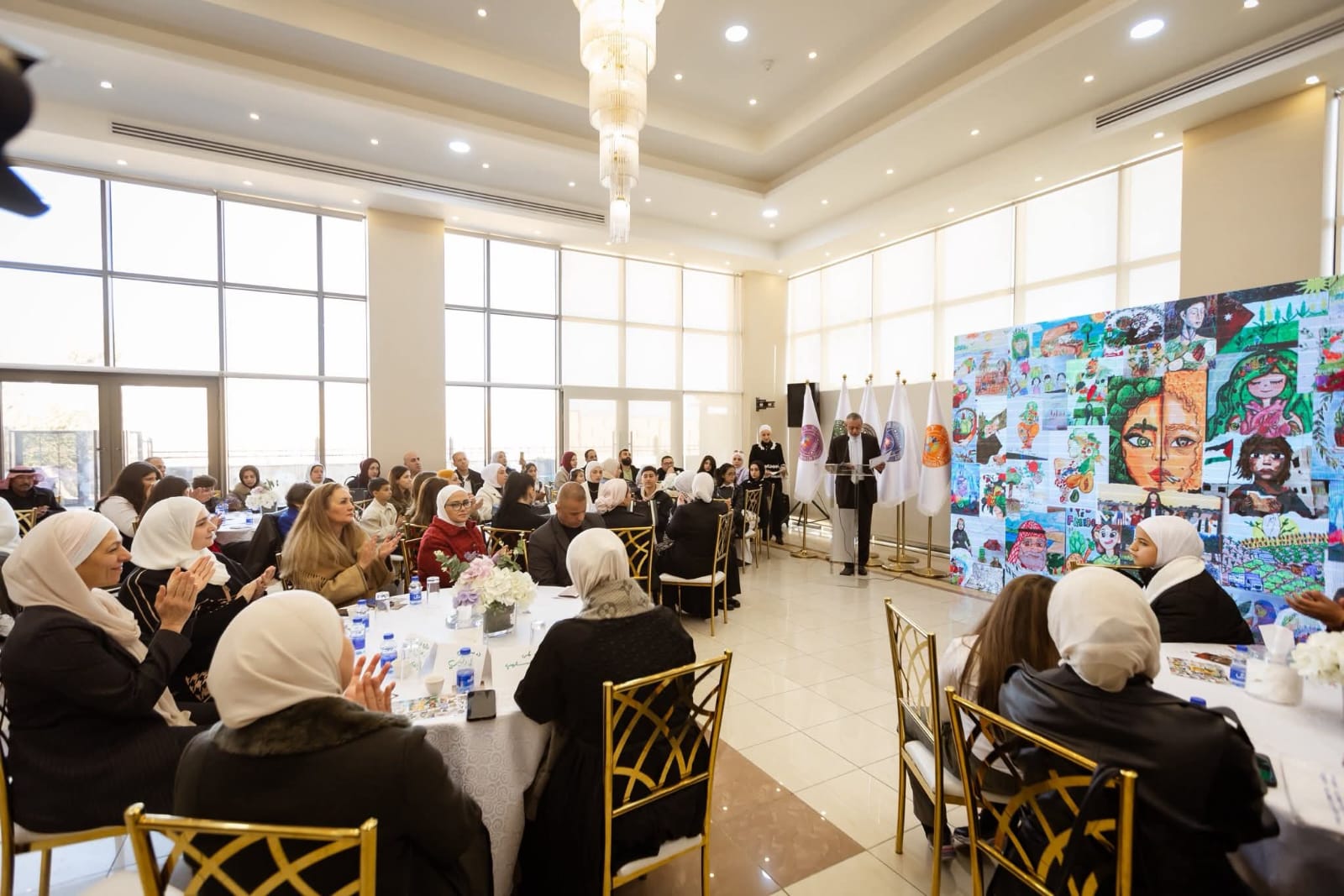 عمون - تحت رعاية سموّ الأميرة بسمة بنت علي بن نايف، كرمت جمعية نادي خريجي الكلية العلمية الإسلامية الفنانة التشكيلية الكبيرة هيلدا الحياري -احدى طالباتها- وذلك خلال فعالية ومسابقة فنية للرسم نظمها النادي في مقره. |