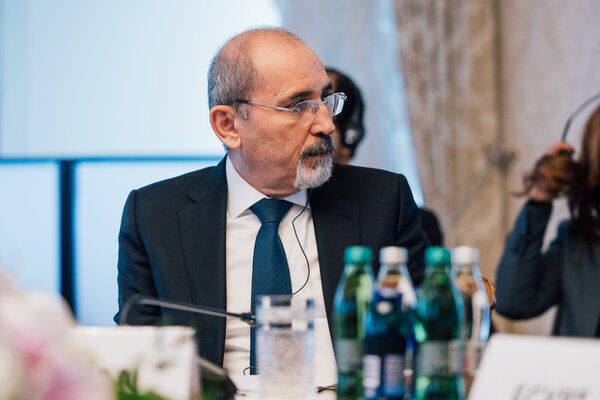 عمون - عقد نائب رئيس الوزراء ووزير الخارجية وشؤون المغتربين أيمن الصفدي ووزير خارجية المملكة العربية السعودية سمو الأمير فيصل بن فرحان آل سعود ووزير الخارجية والهجرة وشؤون المصريين بالخارج د. بدر عبد العاطي ووزير الخارجية البحريني الدكتور عبد اللطيف بن راشد الزياني ووزير الدولة للشؤون الخارجية في دولة قطر سلطان المريخي جلسةً حواريةً موسّعةً مع نائب رئيس الوزراء ووزيرة الخارجية السلوفينية تانيا فايون، في عاصمة جمهورية سلوفينيا ليوبليانا.