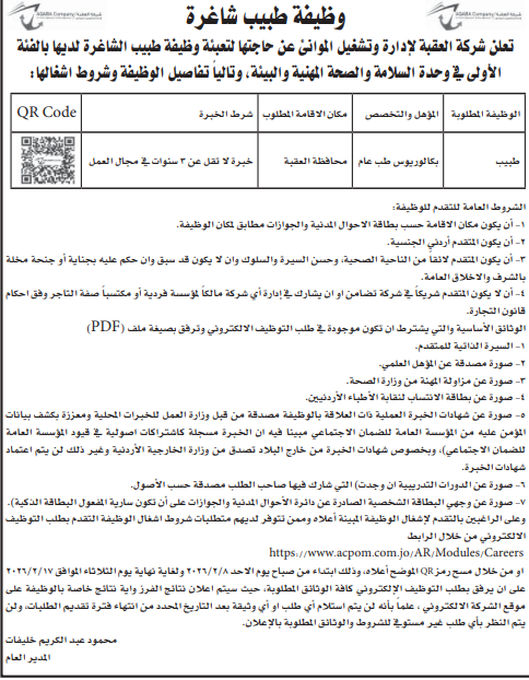 وظيفة شاغرة لدى شركة العقبة لادارة وتشغيل الموانئ