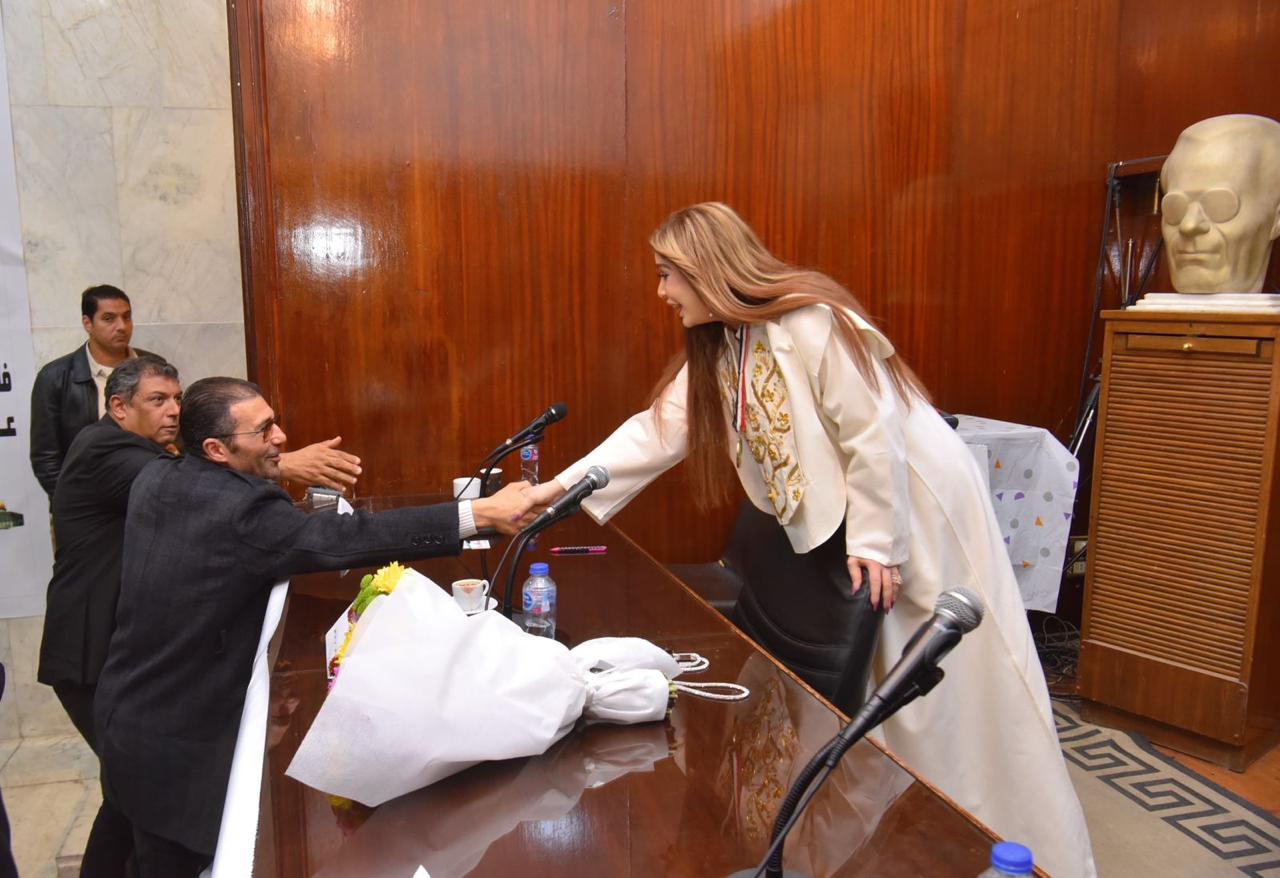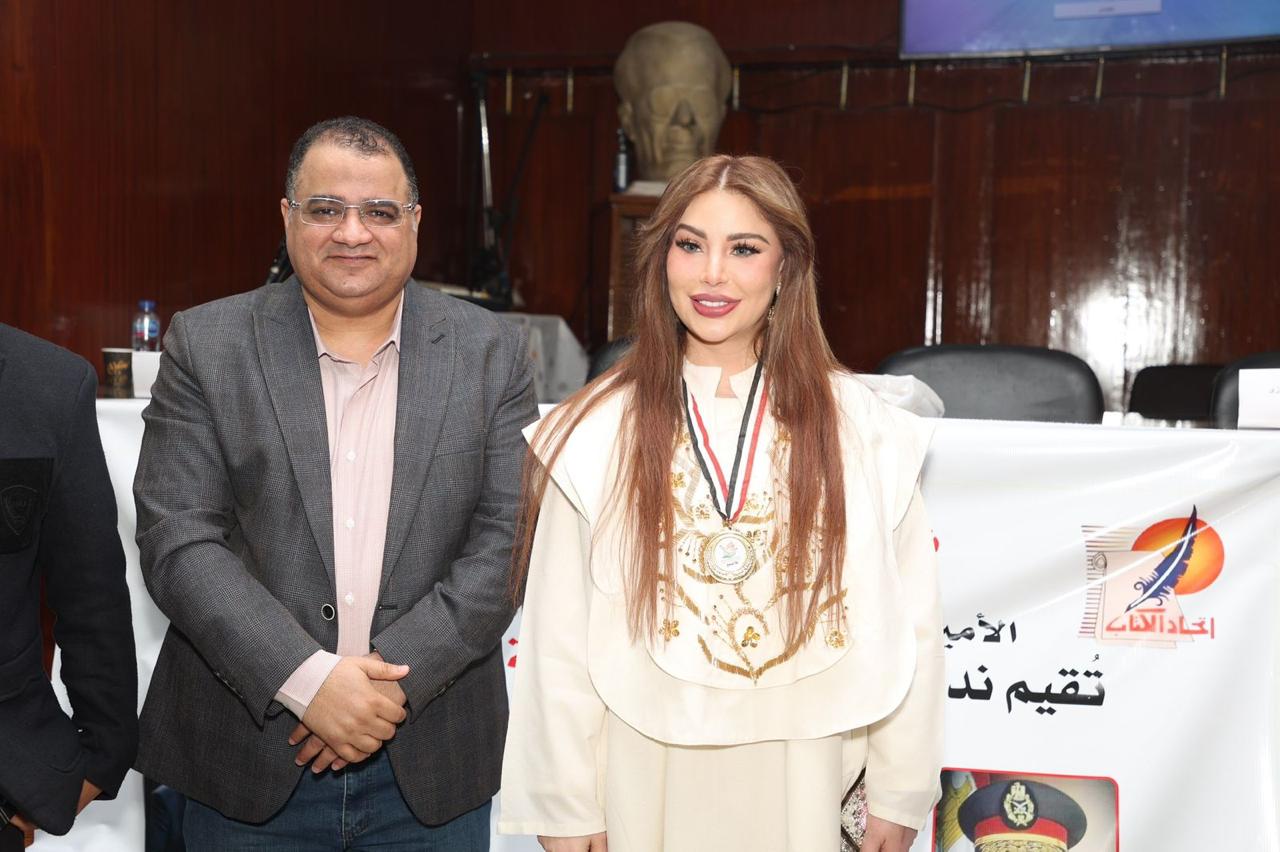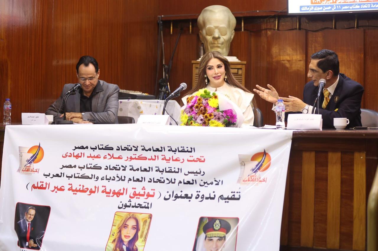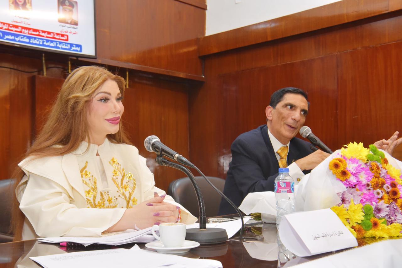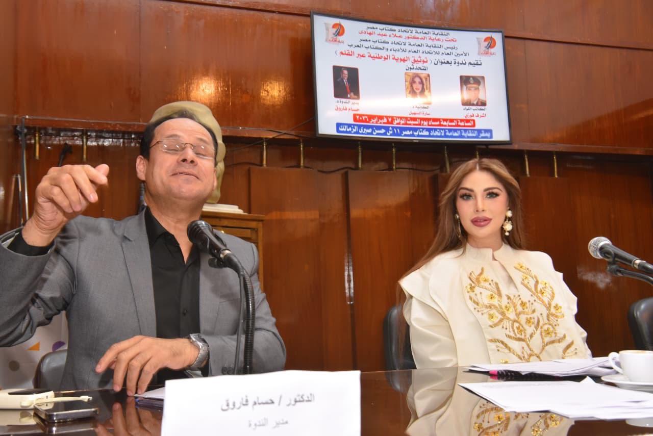 سارة طالب السهيل واللواء اشرف فوزي في "توثيق الهوية الوطنية عبر القلم"