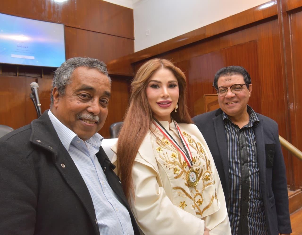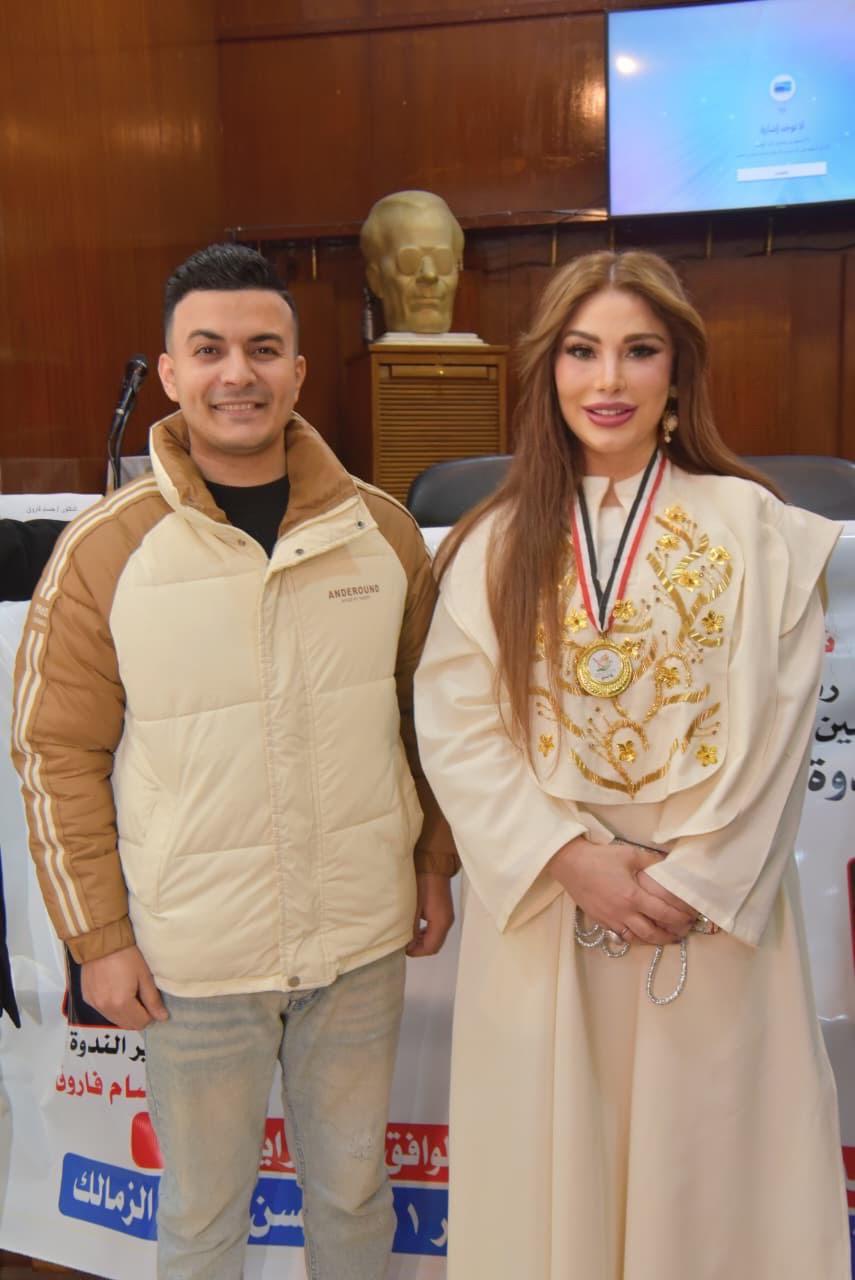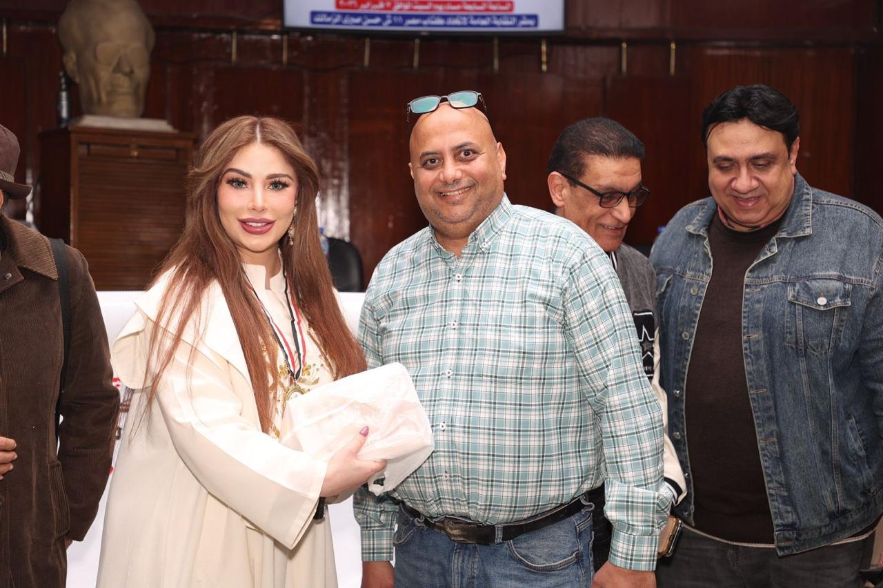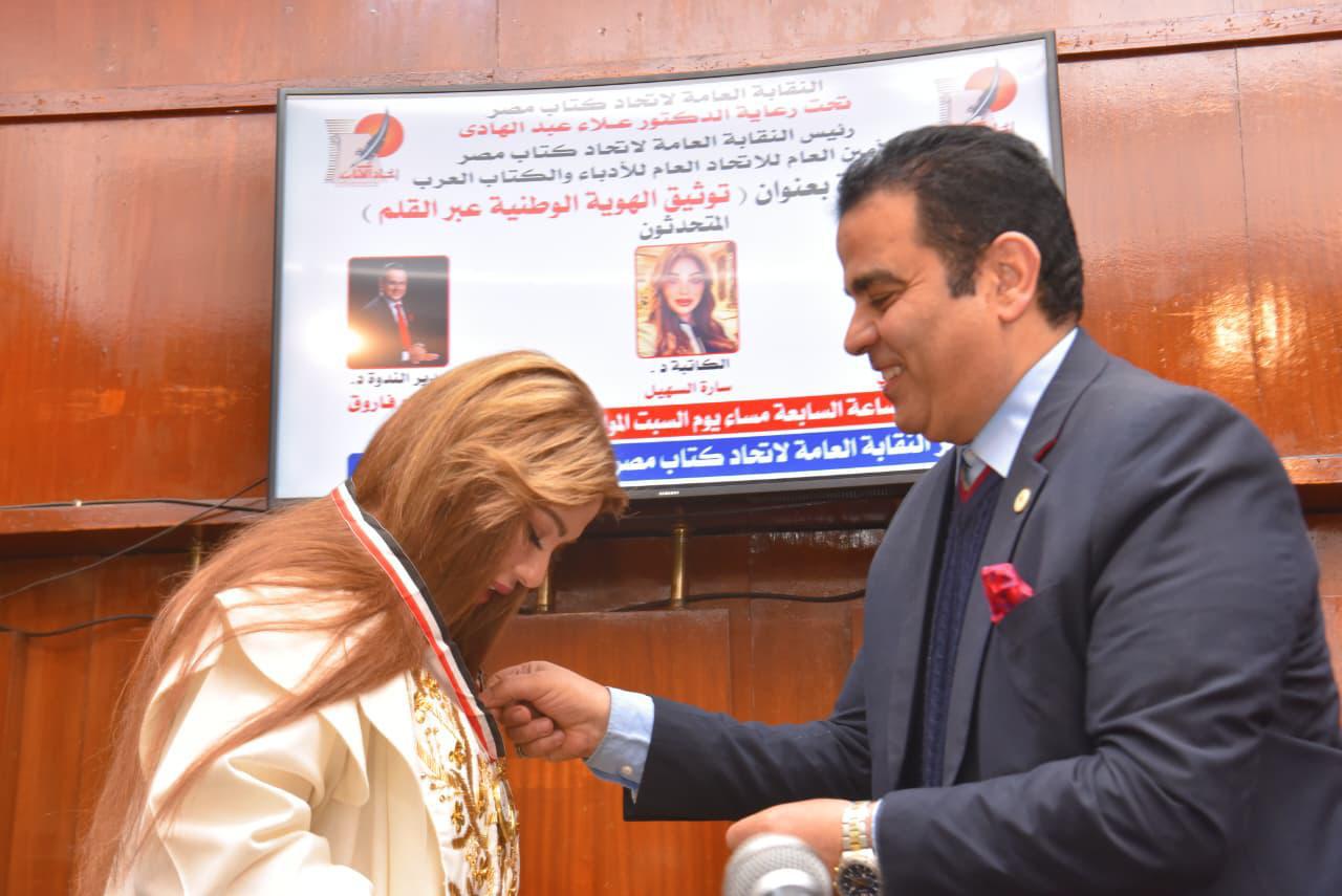 سارة طالب السهيل واللواء اشرف فوزي في "توثيق الهوية الوطنية عبر القلم"