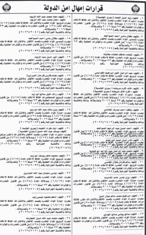 أمن الدولة تمهل متهمين 10 أيام لتسليم أنفسهم (أسماء)11-02-2026 09:10 AM