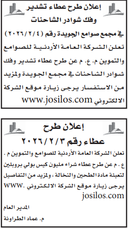 عطاءات صادرة عن الشركة العامة الاردنية للصوامع والتموين