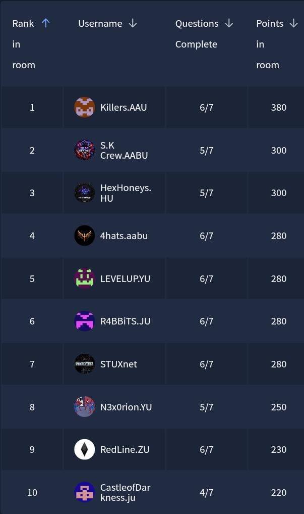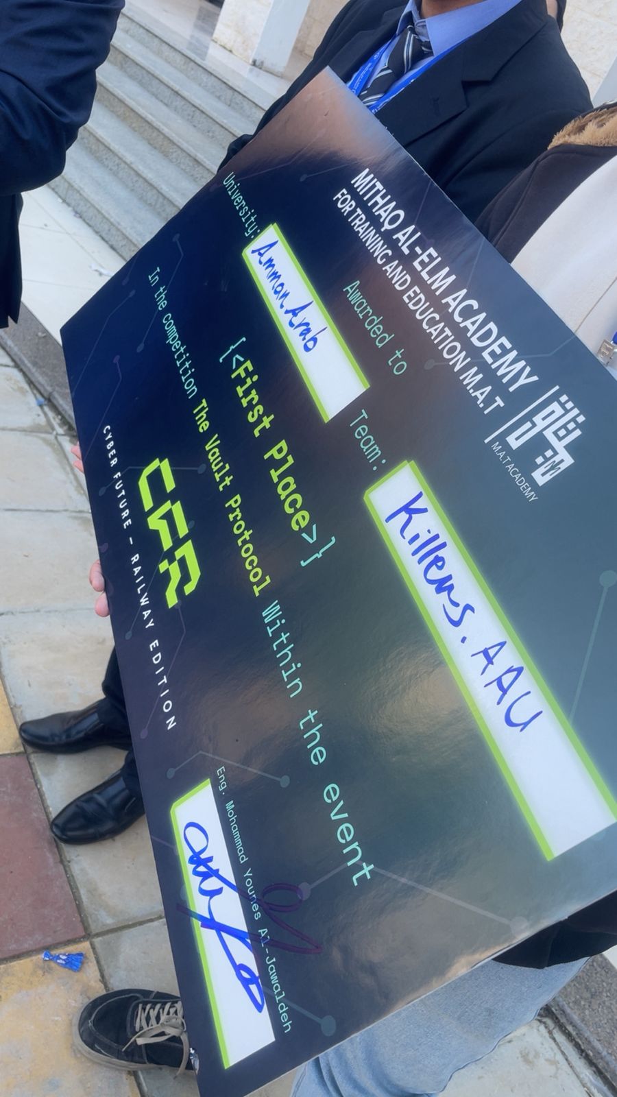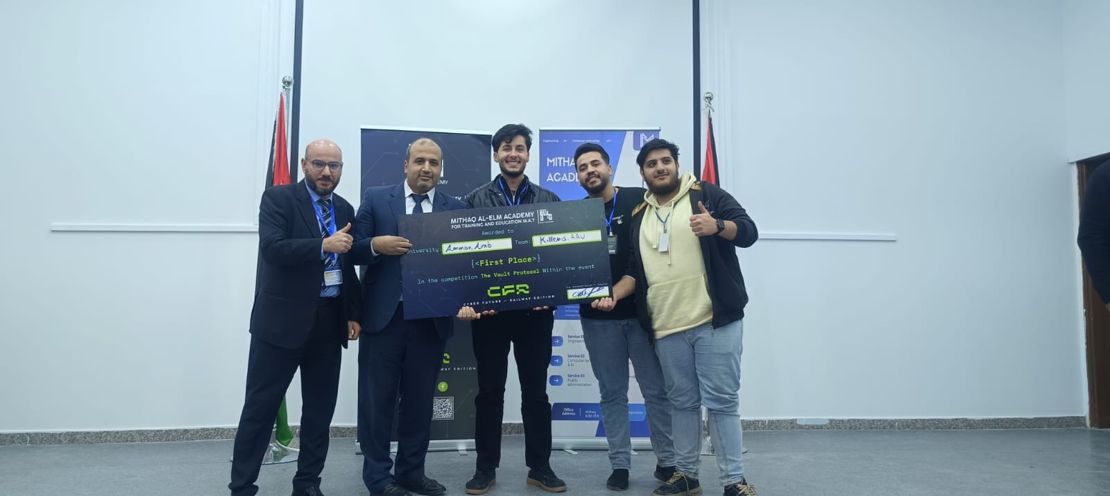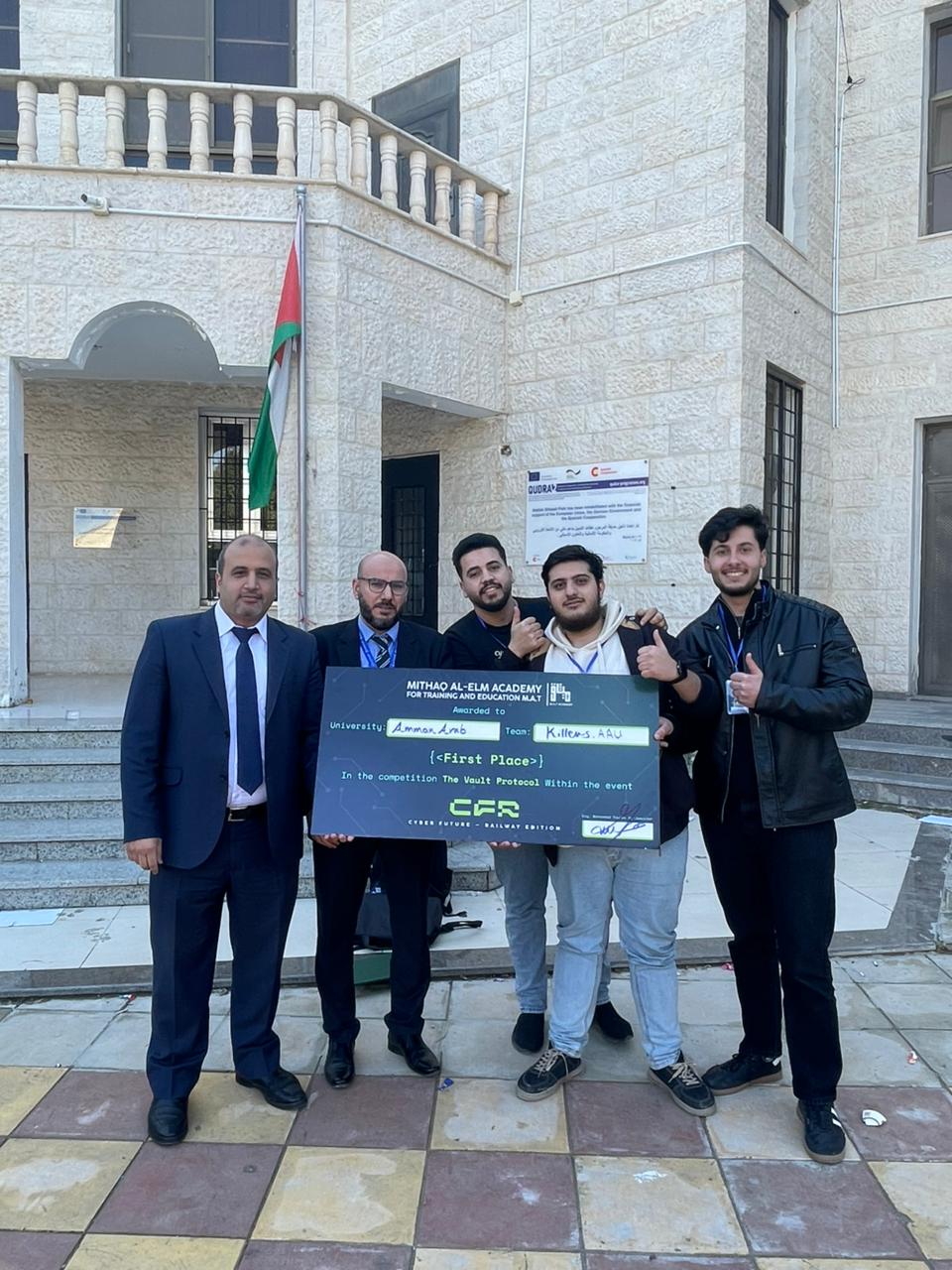 حيث حصل فريق (Killer.AAU) على المركز الأول والذي ضمّ الطلبة: عامر غيث، ومحمد العجارمة، وإبراهيم أبو دية، وعبد الرحمن القيسي من تخصص الأمن السيبراني في كلية تكنولوجيا المعلومات، وذلك بإشراف الدكتور كمال عليان مساعد عميد كلية تكنولوجيا المعلومات، والدكتور بلال خاطر عضو هيئة التدريس في قسم الأمن السيبراني، فيما حلّ فريق جامعة آل البيت في المركز الثاني، وجاء فريق الجامعة الهاشمية في المركز الثالث.