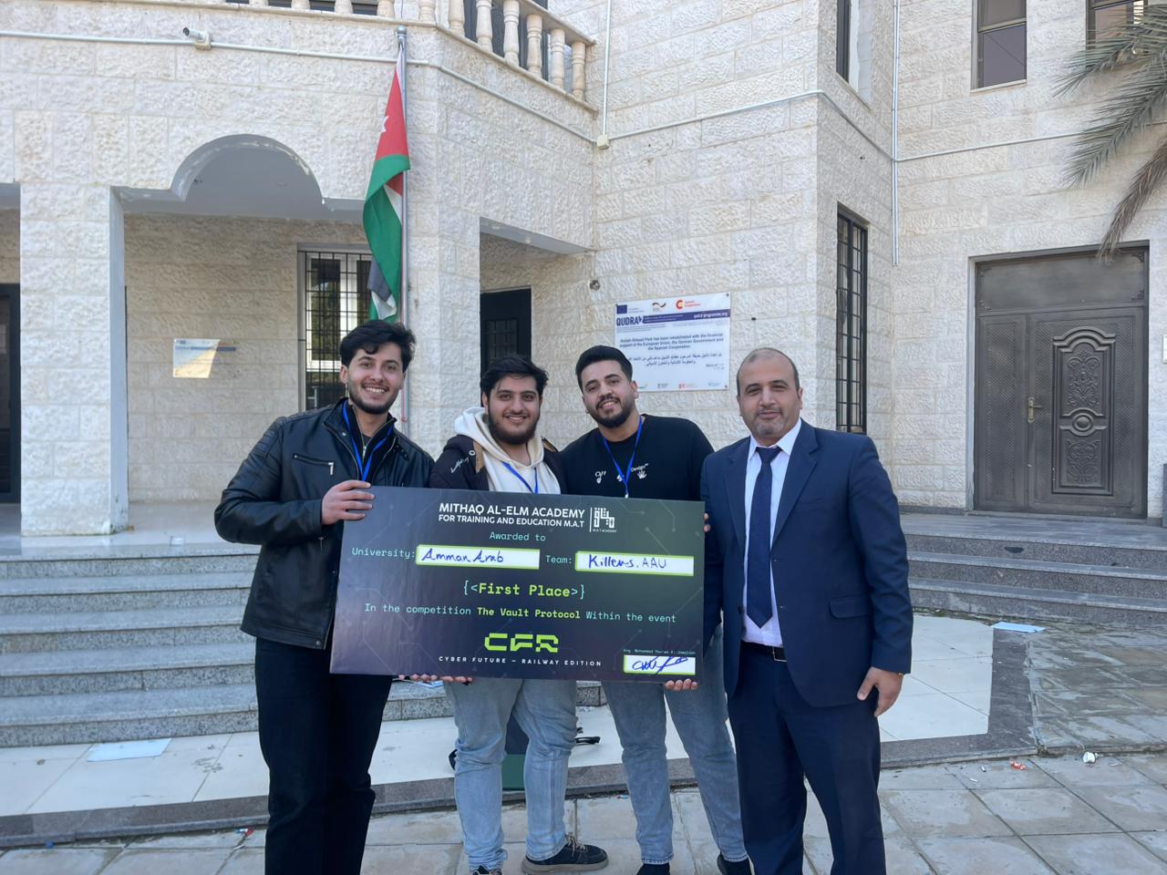 عمون - في إطار مسيرة جامعة عمان العربية المتواصلة نحو الريادة الأكاديمية والابتكار التقني، حقق طلبة كلية تكنولوجيا المعلومات إنجازًا نوعيًا جديدًا يُضاف إلى سجل تميّز الجامعة، بحصولهم على المركز الأول في مسابقة Cyber Future – Railway Edition (CFR)، والمتخصصة في الأمن السيبراني والتقنيات الرقمية واختبار الاختراق، بمشاركة واسعة من الجامعات الأردنية الحكومية والخاصة.