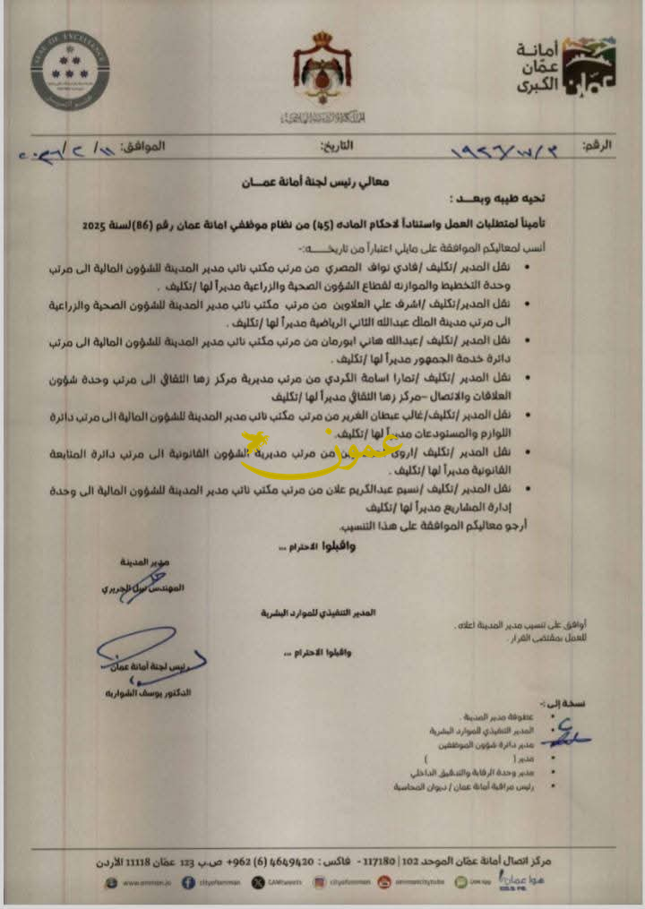 تكليف مدراء دوائر في أمانة عمّان (اسماء)