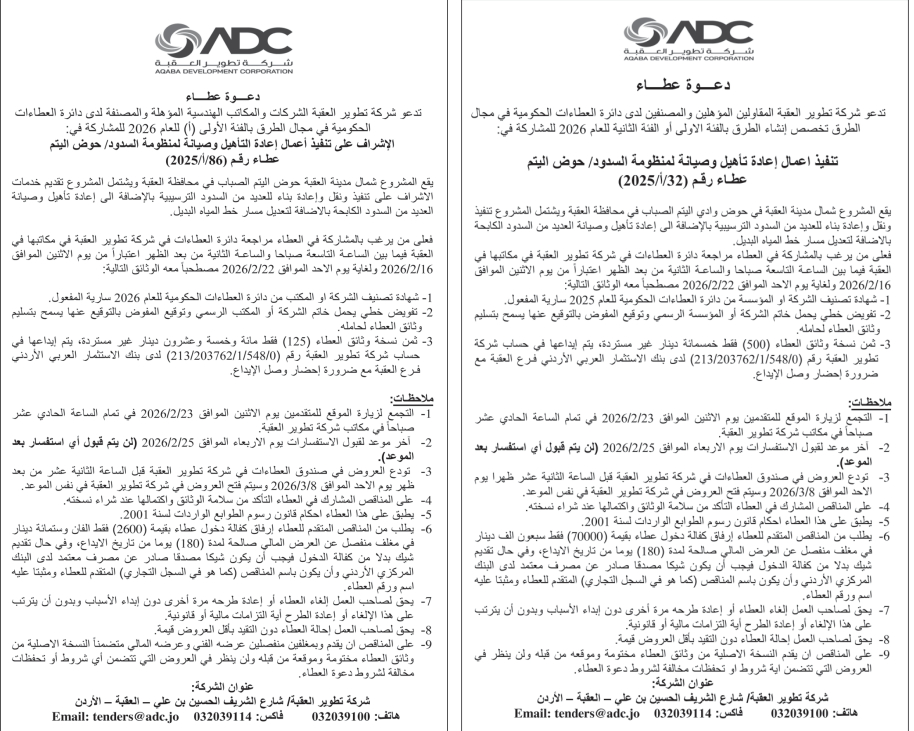 عطاءات صادرة عن شركة تطوير العقبة