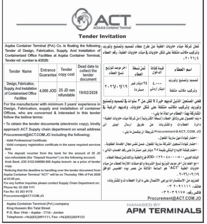 عطاء صادر عن شركة ميناء حاويات العقبة