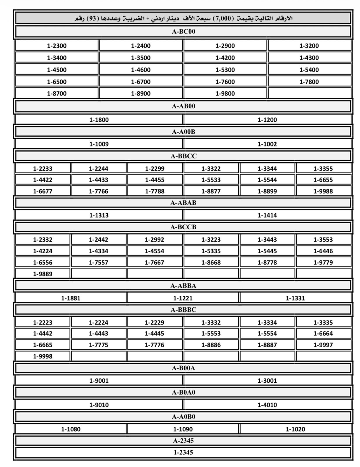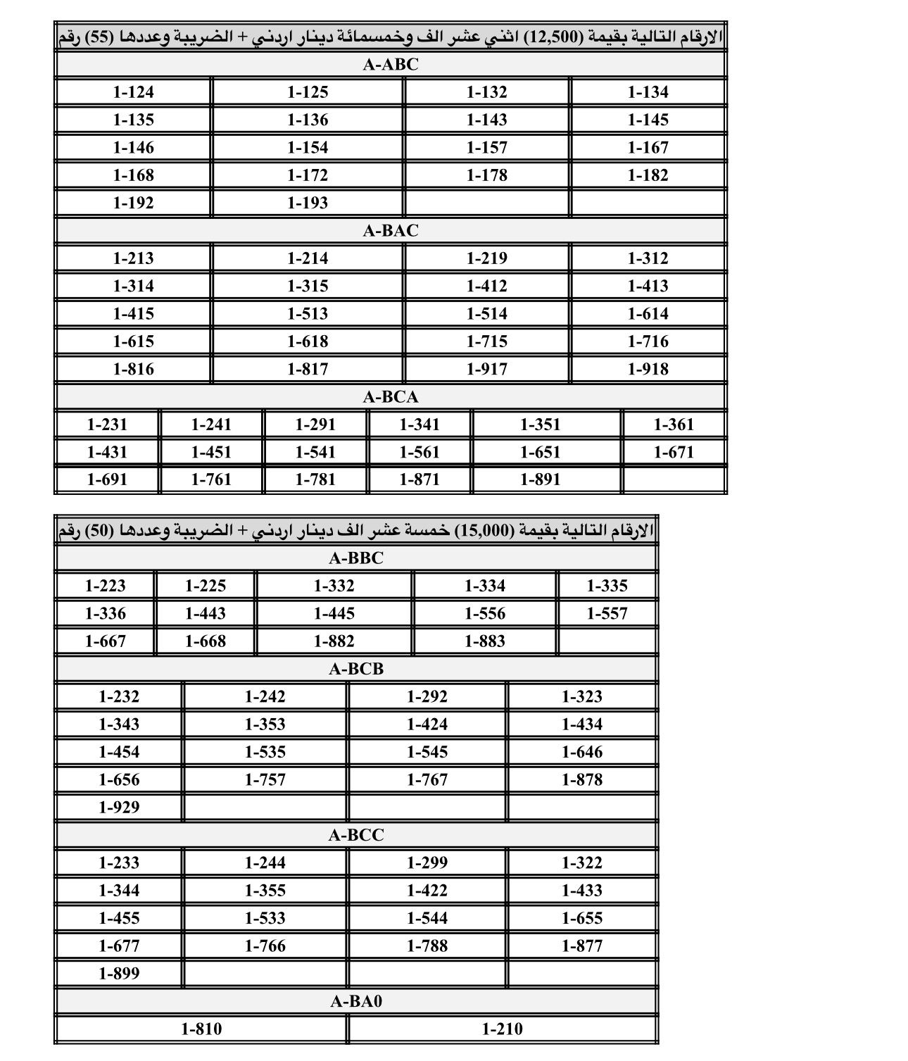 عمون - أعلنت إدارة ترخيص السواقين والمركبات عن طرح أرقام مميزة من الارقام الثلاثاية والرباعية والخماسية للبيع المباشر على بوابتها. |