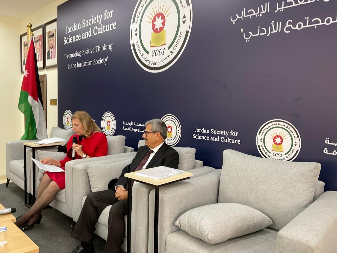 عمون - عقدت الجمعية الأردنية للعلوم والثقافة ظهر السبت الماضي ندوة بعنوان تطورات المشهد الفلسطيني وقرارات الكابينيت الاسرائيلي حاضر فيها الكاتب السياسي حمادة فراعنة المختص في الشأن الفلسطيني والاسرائيلي وقدمه فيها الكاتبة والأديبة فلومين نصار عضو الجمعية .