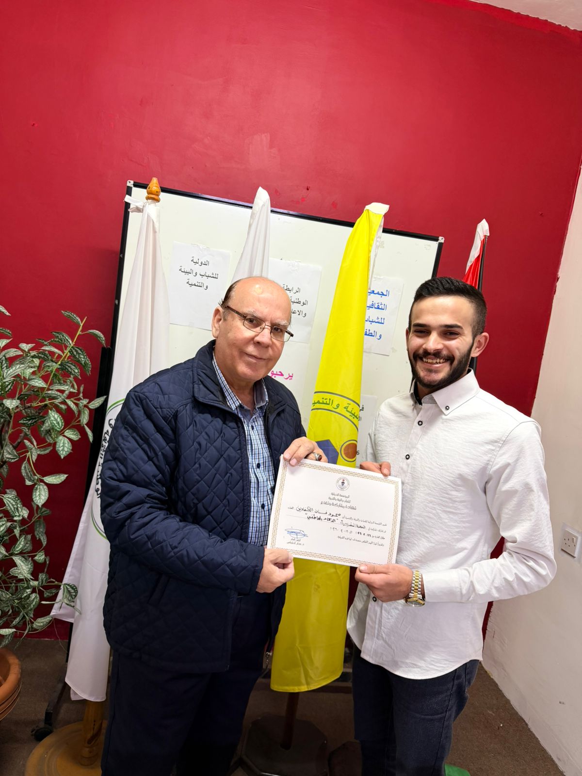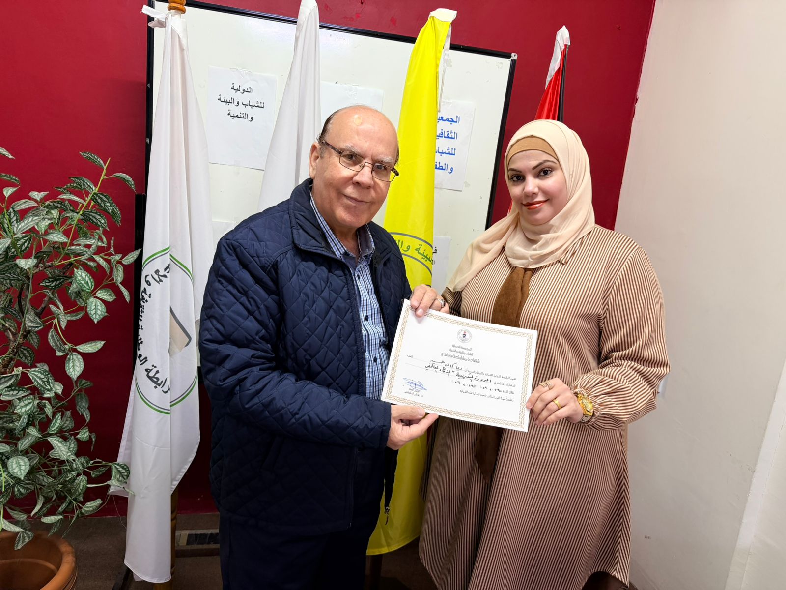 وفي ختام اعمال الدورة التدريبية قام الدكتور عدنان محمود الطوباسي رئيس الجمعية الثقافية للشباب بتسليم المشاركين شهاداتهم التقديرية.